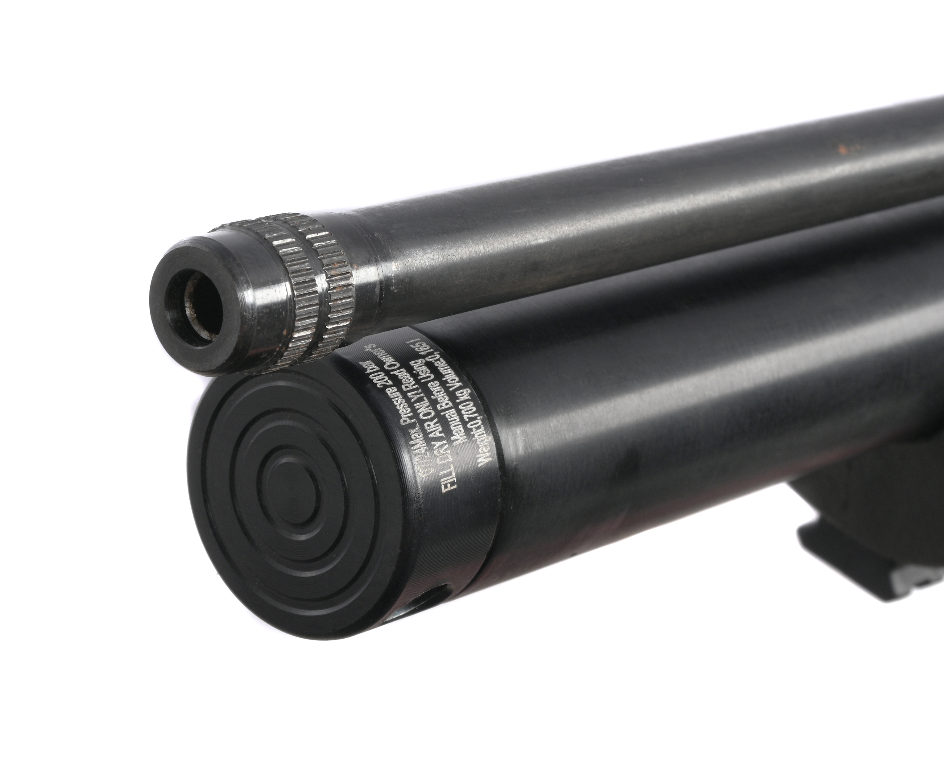 Воздух, который расходуется на разгон пули, заблаговременно закачивается внутрь подствольного резервуара линейного типа. Объем оного составляет 165 кубических сантиметров. Для заправки потребуется соответствующее компрессорное оборудование ВД, подключаемое к разъему через штуцер.