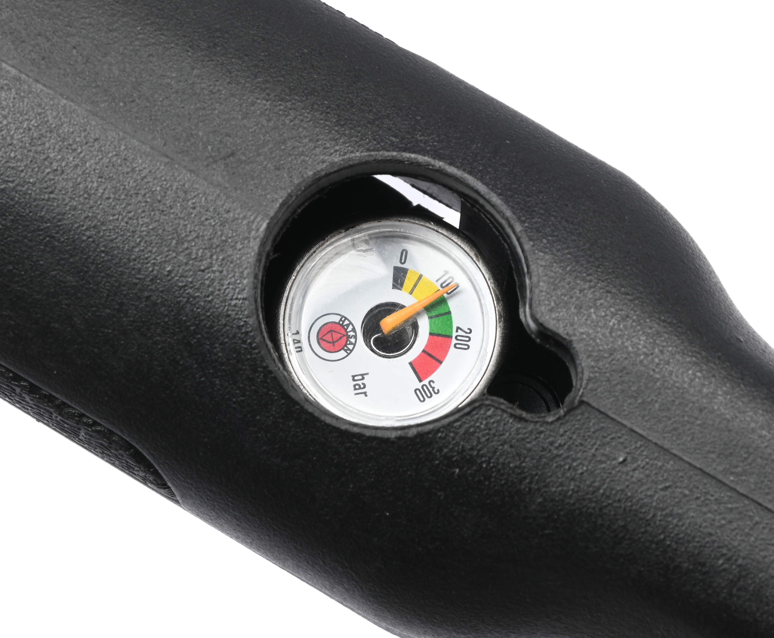 Допустимое давление накачки лежит в пределах 200 Бар. Показатель оперативно контролируется интегрированным в цевье манометром. Пневматика функционирует в прямотоке, а перед каждым нажатием на спуск потребуется взводить затвор, расположенный с правой стороны.
