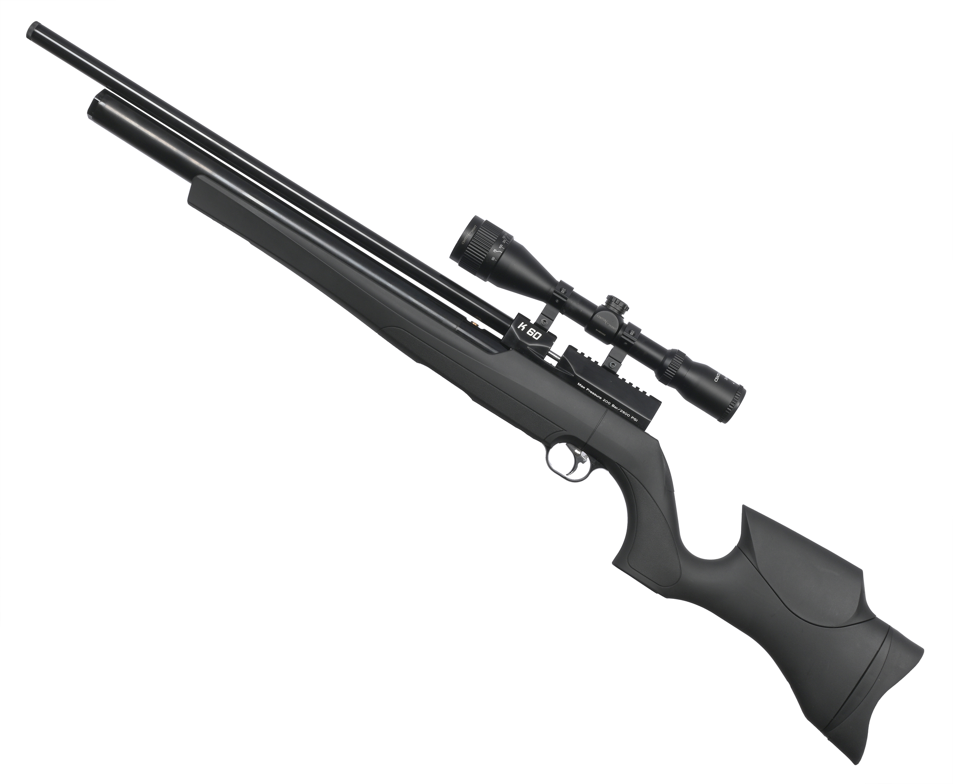 Всем этим критериям соответствует модель K60, выполненная в духе классики. Экземпляр имеет стандартную компоновку карабина, однако изготовитель придал ему современный внешний вид. В конструкции задействуется ложа из ударопрочного и легкого полимера - в базе присутствует нескользящий резиновый тыльник и эргономичная щека, способствующая удобной вкладке.