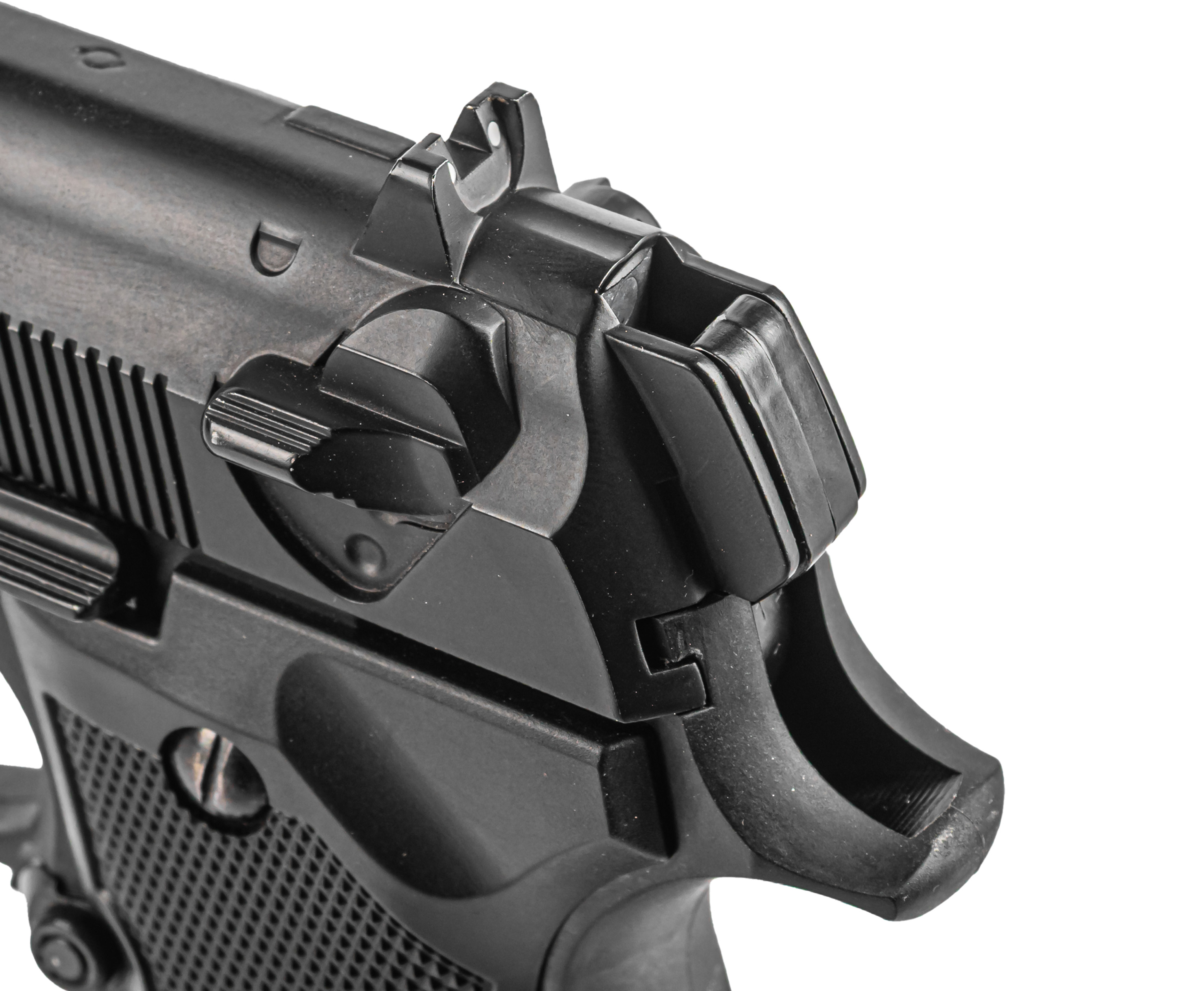 Кроме прочего, исполнение фирмы Борнер достоверно передает функционал всех органов управления, начиная от флажкового предохранителя и заканчивая внешним курком с боковой клавишей сброса затворной задержки. Сам слайд полностью подвижен и за счет наличия механизма Blowback создает эффект отдачи, что положительно сказывается на ощущениях при стрельбе.