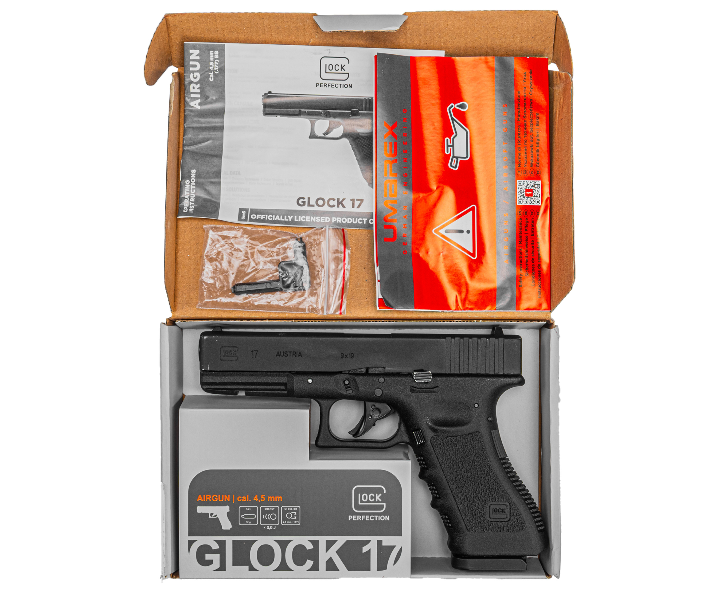 Артикул производителя Уценка Пневматический пистолет Umarex Glock 17 4.5 мм (Blowback) по низкой цене 33000 руб. Модель со штрихкодом производителя Вы можете оплатить наложенным платежем с доставкой или в отделении транспортной компании (ПЭК, СДЭК, Boxberry). Ваш заказ со штрихкодом 2000000181134 забрать на почте с оплатой при получении в любой части Российской Федерации.