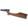 Приклад не только повышает точность наведения за счет стабилизации положения оружия, но и выполняет функцию кобуры. Затыльник аксессуара крепится на петлях с защелкой и откидывается, открывая доступ к внутренней полости. Поместив оружие, футляр закрывается и обеспечивает сохранность пистолета при транспортировке.