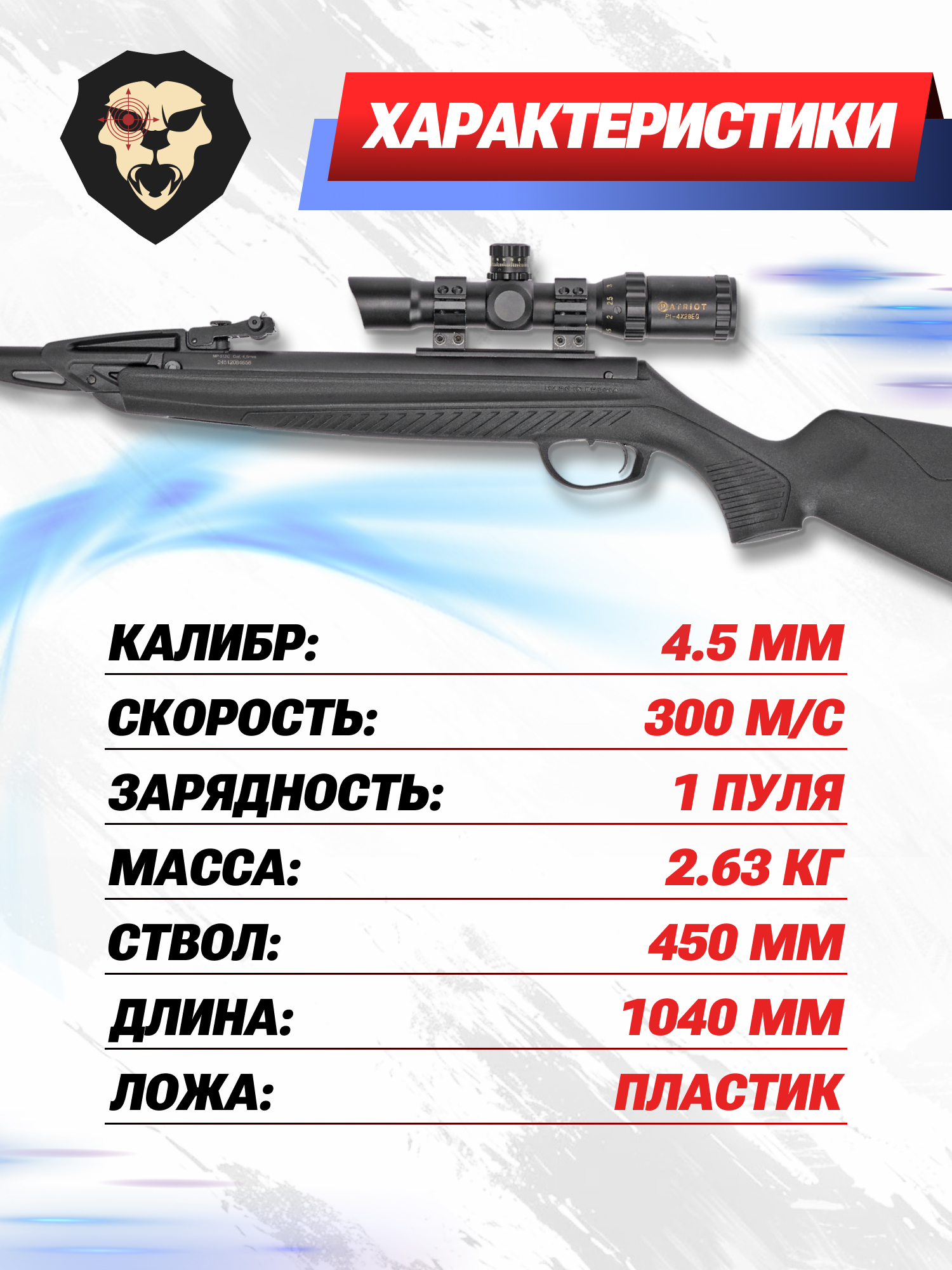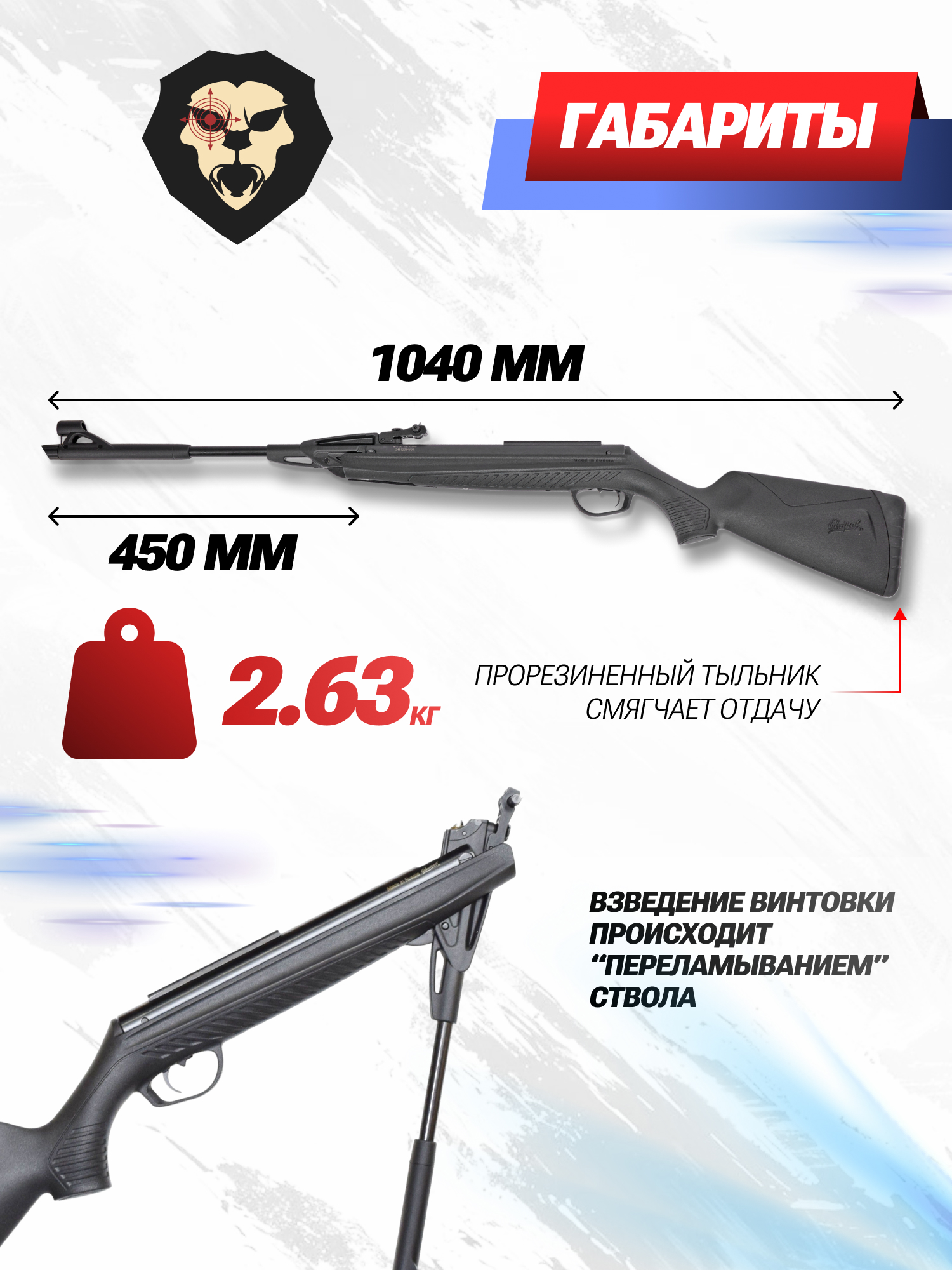 | Комплектация | Винтовка, прицел, кольца, мишени, пули, газовая пружина, упаковка, краткая документация, копия сертификата (по запросу покупателя) |
