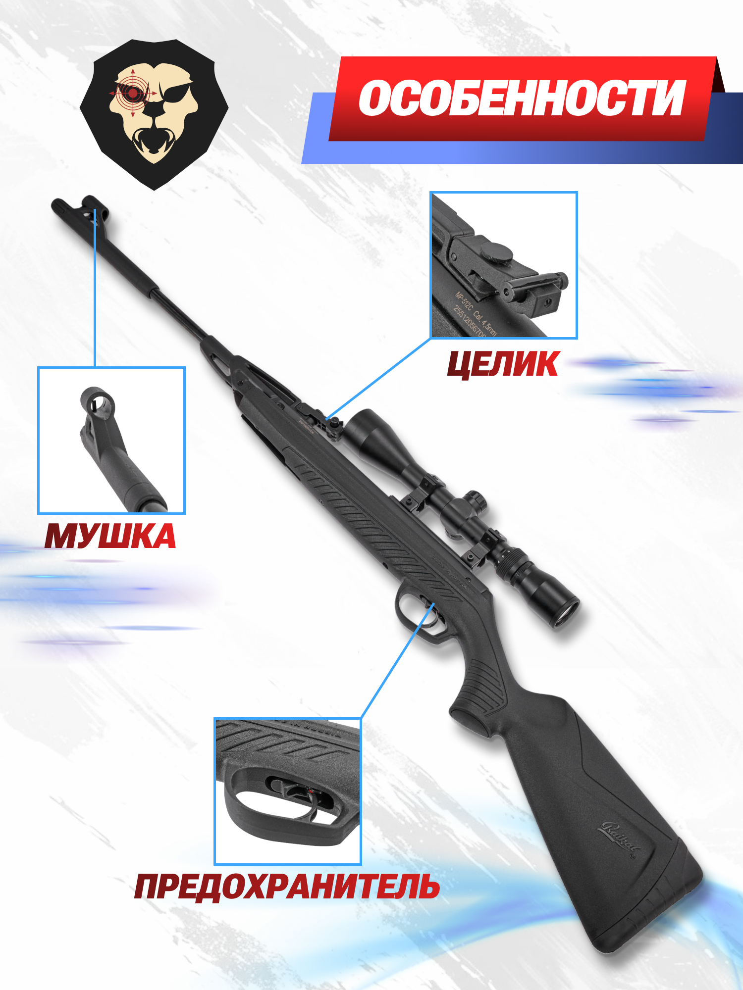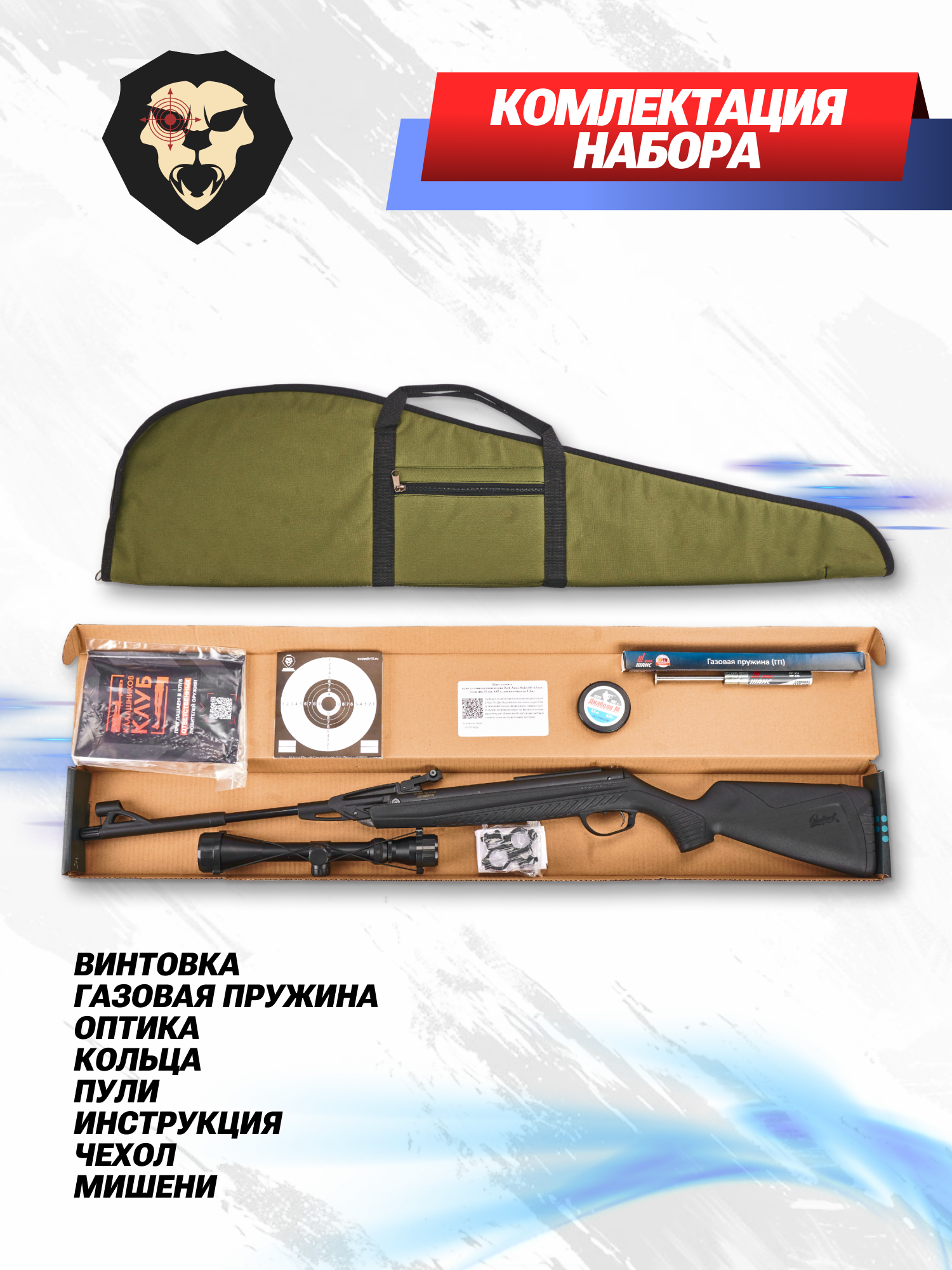 | Комплектация | Винтовка, прицел, кольца, чехол, мишени, пули, газовая пружина, упаковка, краткая документация, копия сертификата (по запросу покупателя) |
