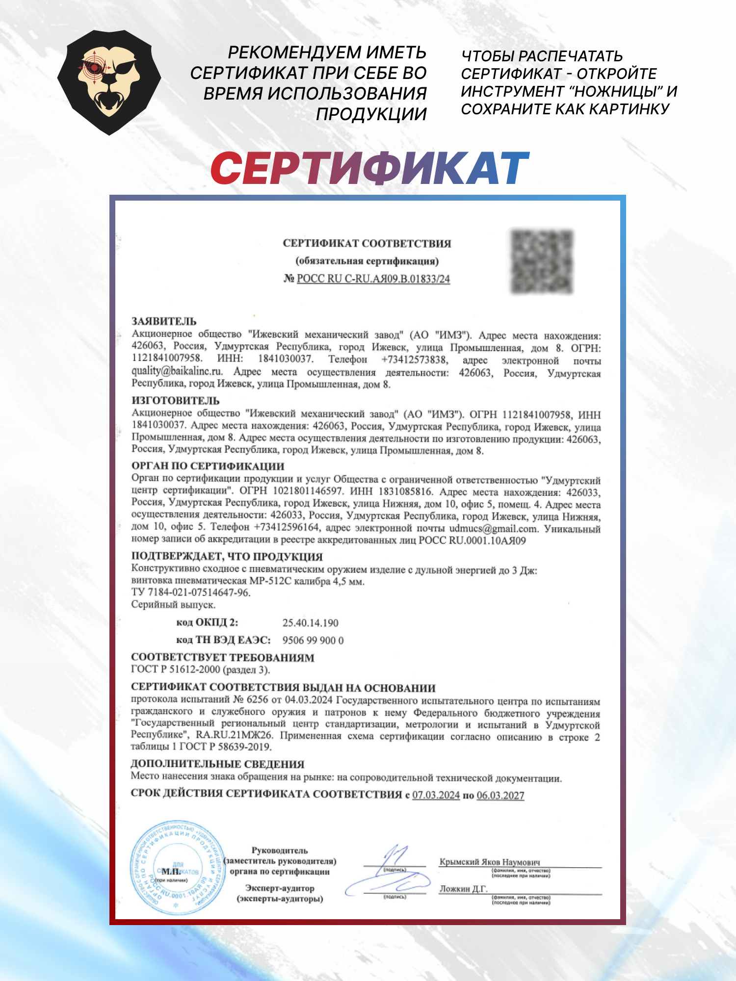 Информация о товаре "Винтовка пневматическая Baikal МР-512С 06 4.5 мм Hunter №2 подарочный набор (прицел, кольца, чехол, мишени, пули, газовая пружина)" носит ознакомительный характер, и не является публичной офертой, определяемой положениями Статьи 437 Гражданского кодекса Российской Федерации, характеристики, внешний вид, цвет и комплектация могут быть изменены производителем без уведомления.