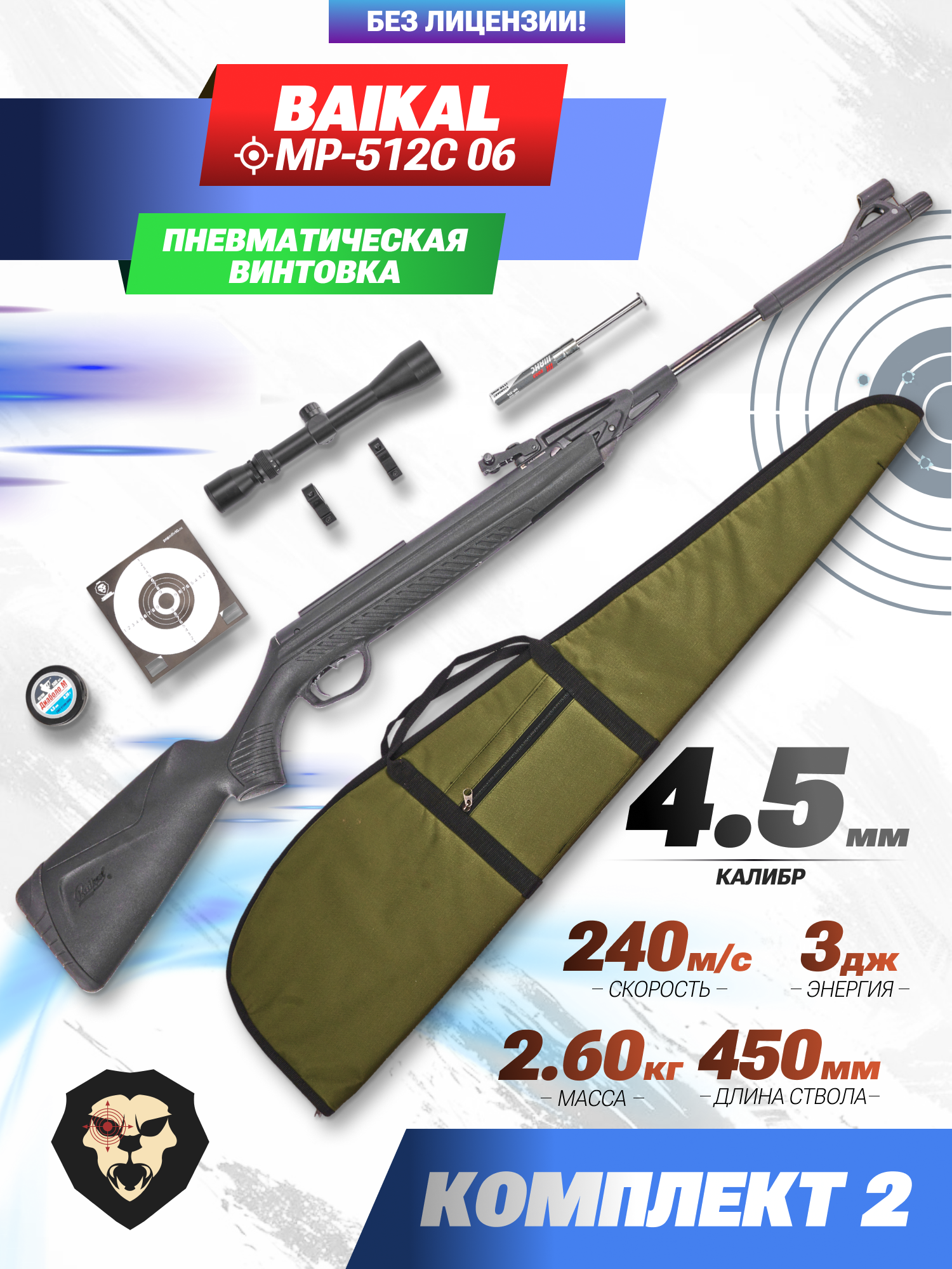 Винтовка пневматическая Baikal МР-512С 06 4.5 мм Hunter №2 подарочный набор (прицел, кольца, чехол, мишени, пули, газовая пружина) купить в интернет-магазине Popadiv10.