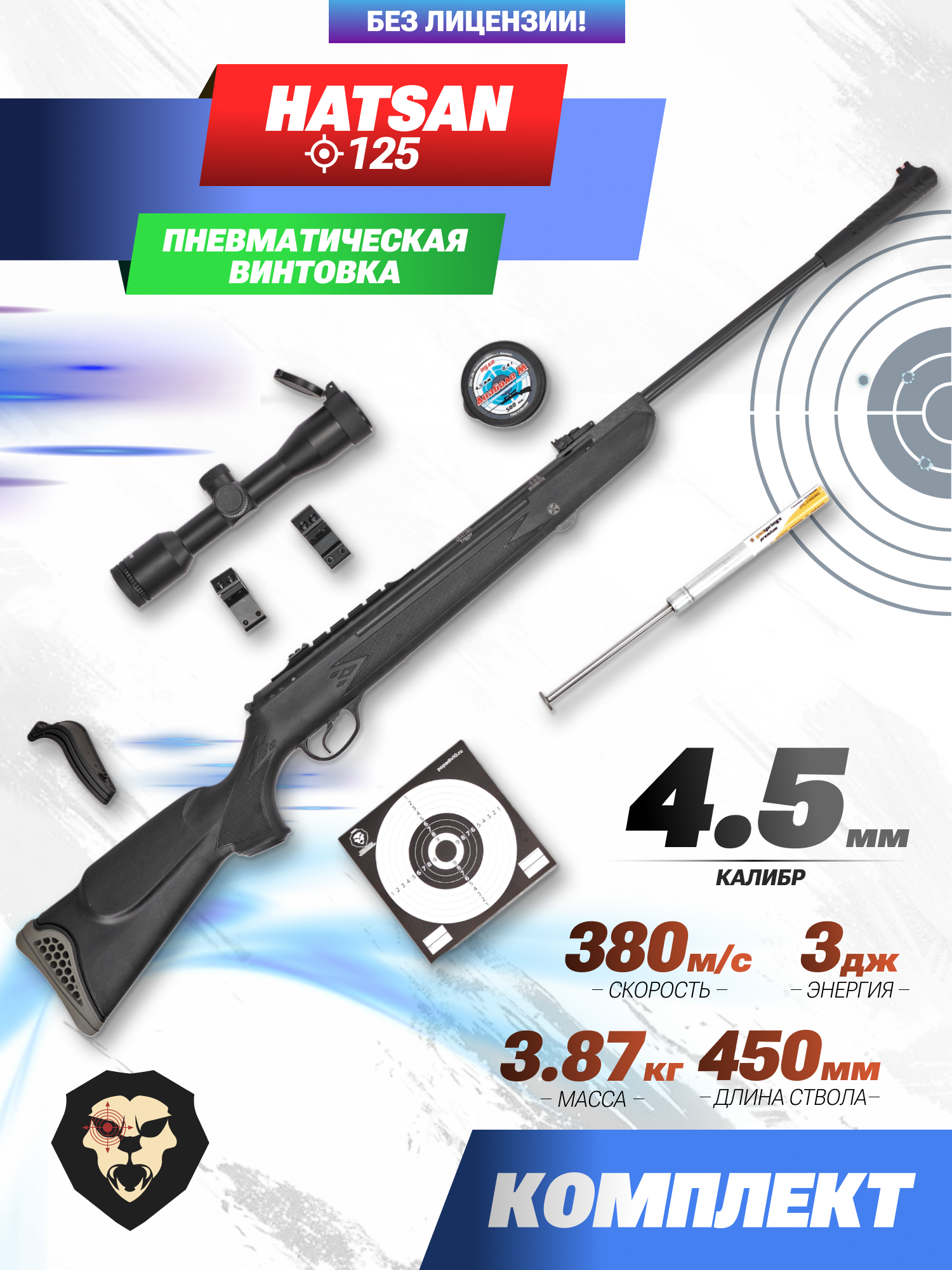 Винтовка Hatsan 125 4.5 мм комплект Hunter подарочный (прицел, кольца, газовая пружина, пули, мишени) купить в интернет-магазине Popadiv10.