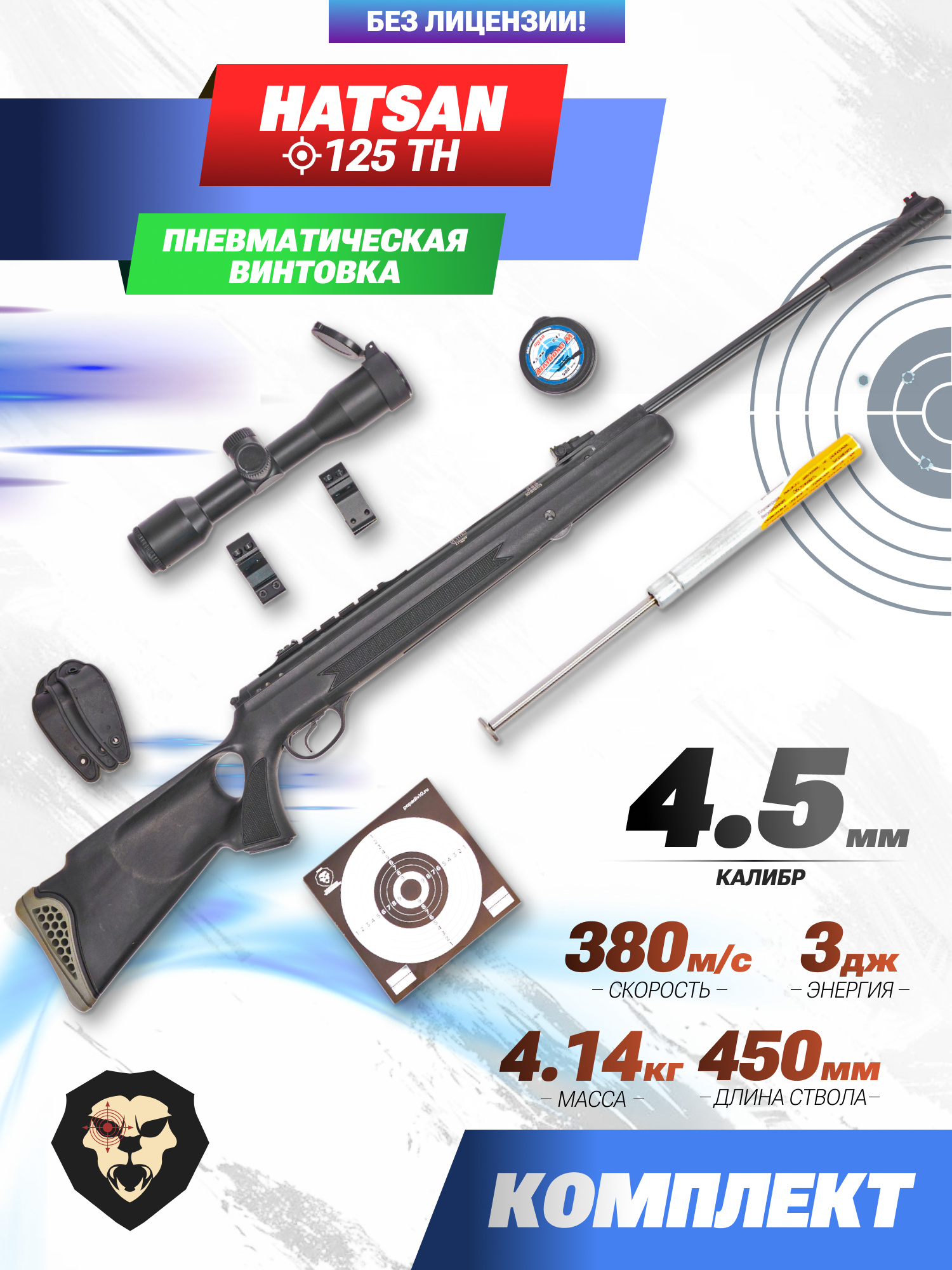 Информация о товаре "Винтовка Hatsan 125 TH 4.5 мм комплект Hunter подарочный (прицел, кольца, мишени, пули, пружина)" носит ознакомительный характер, и не является публичной офертой, определяемой положениями Статьи 437 Гражданского кодекса Российской Федерации, характеристики, внешний вид, цвет и комплектация могут быть изменены производителем без уведомления.
