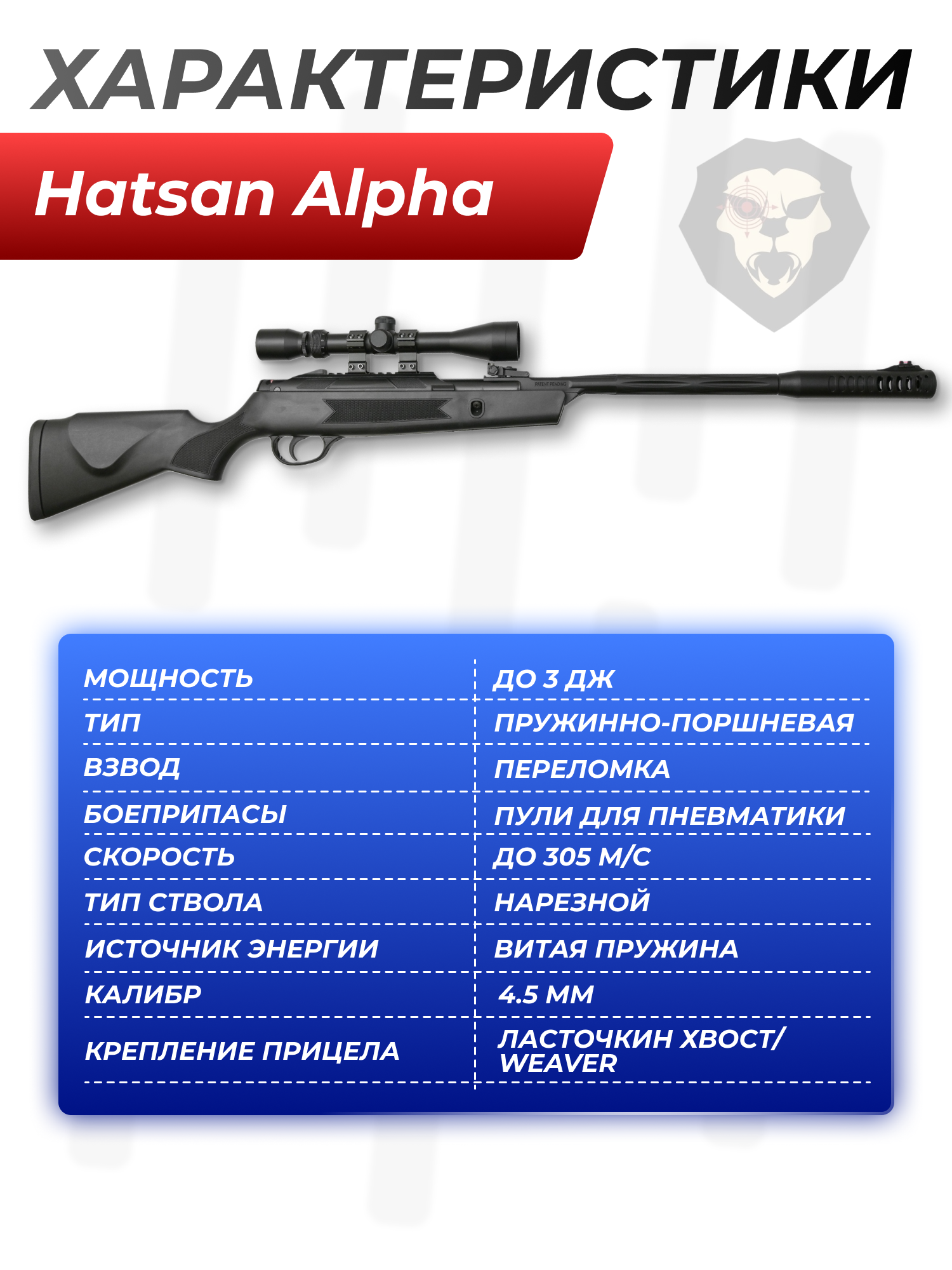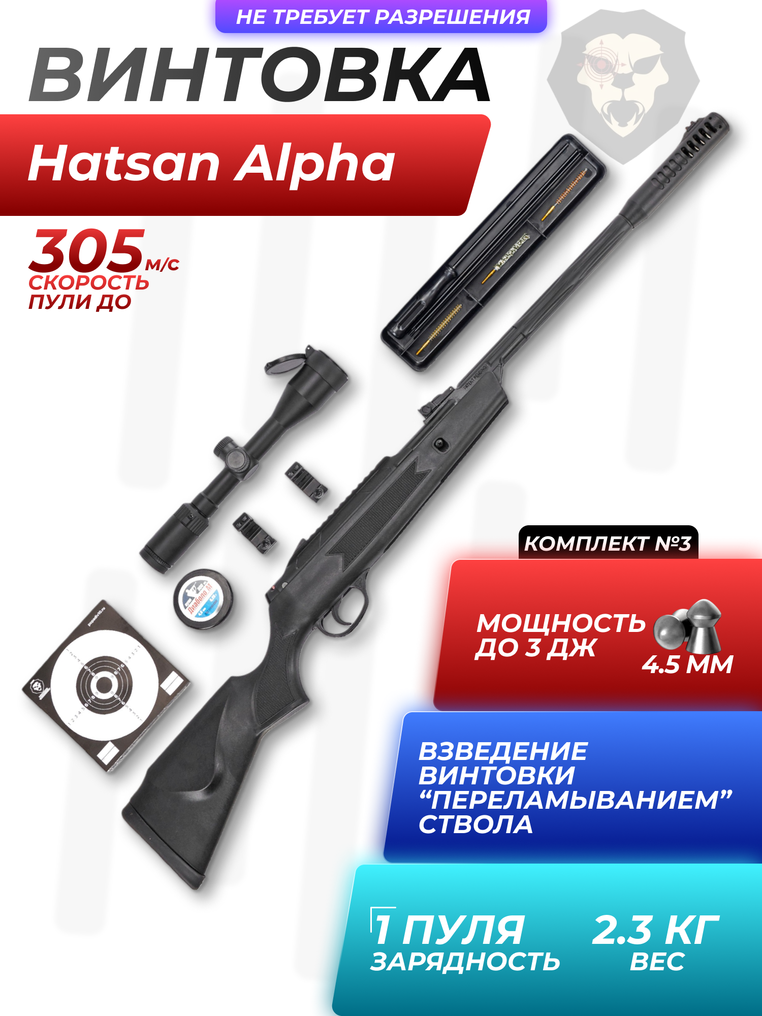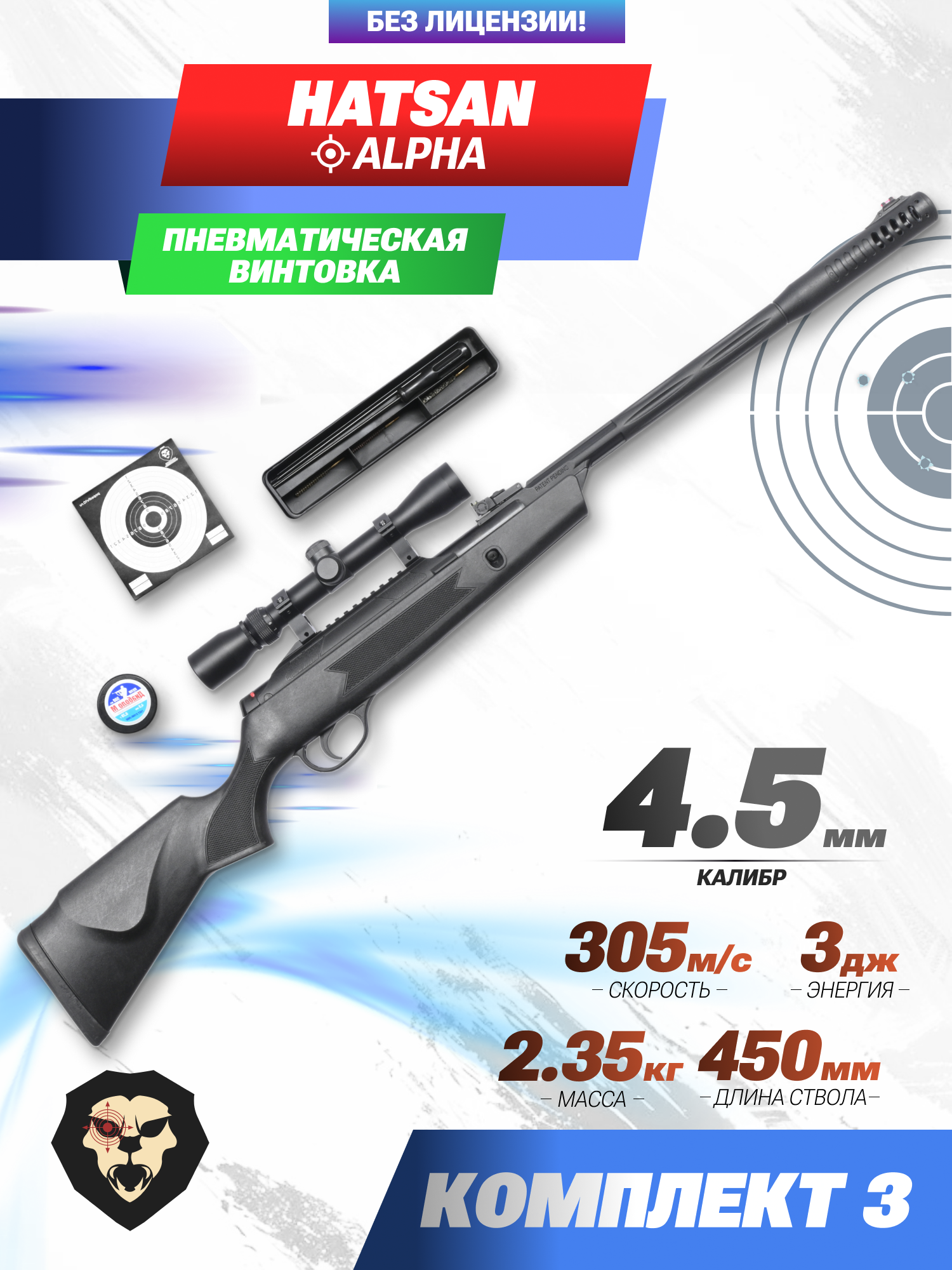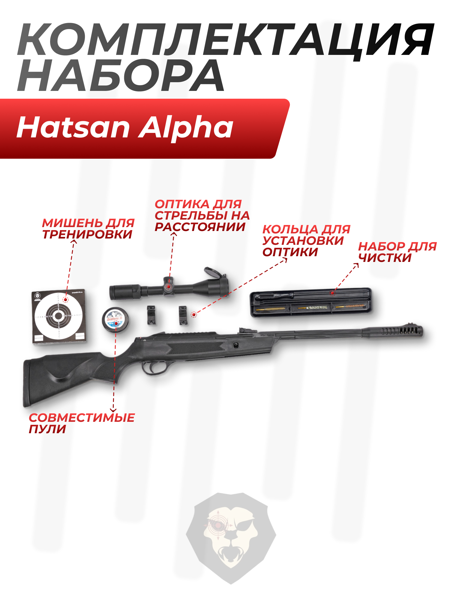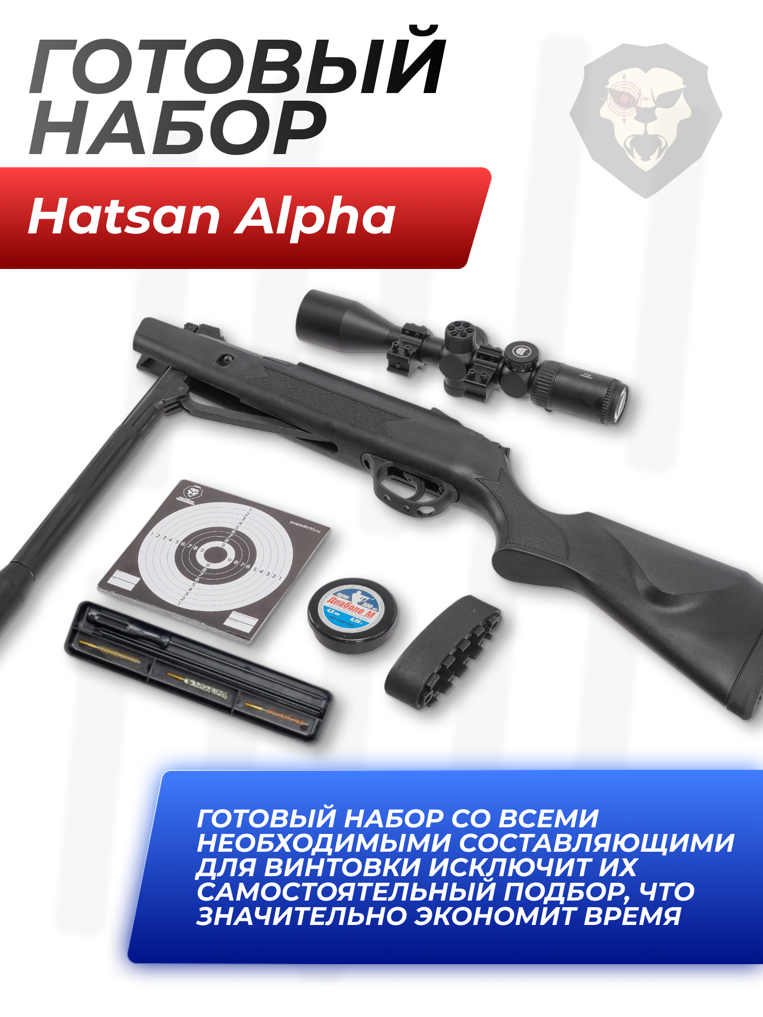 Пневматическая винтовка Hatsan Alpha 4.5 мм комплект Hunter №3 подарочный (прицел, кольца, набор для чистки, мишени, пули) купить в интернет-магазине Popadiv10.