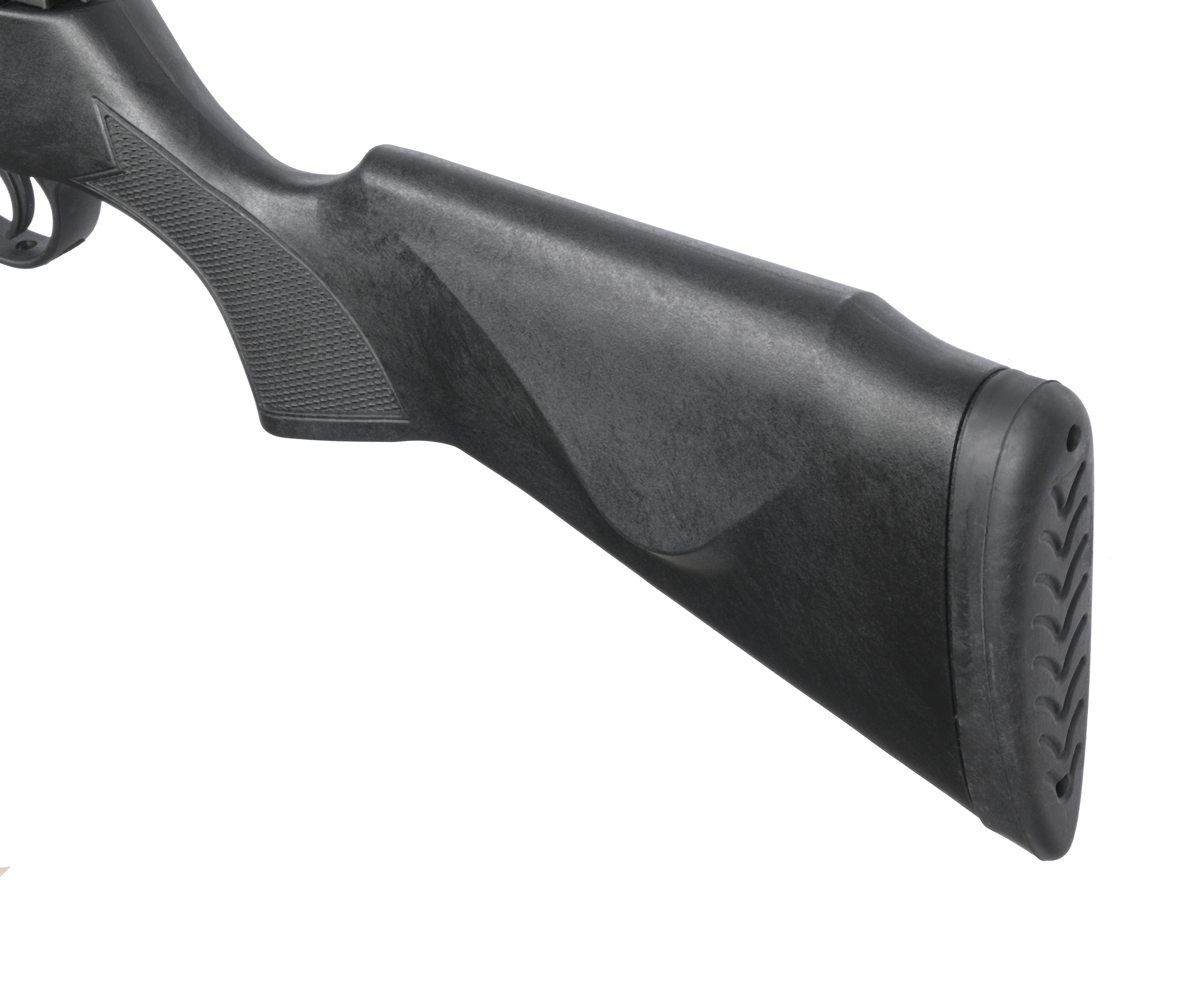 Винтовка поставляется с ложей из прочного современного полимера, таким образом, экземпляр получил легкий вес 2.45 кг. В то же время оружие остается компактным - его длина не превышает 1050 миллиметров. Для комфортного обращения предусмотрен симметричный подщечник приклада, а также резиновый амортизирующий тыльник.