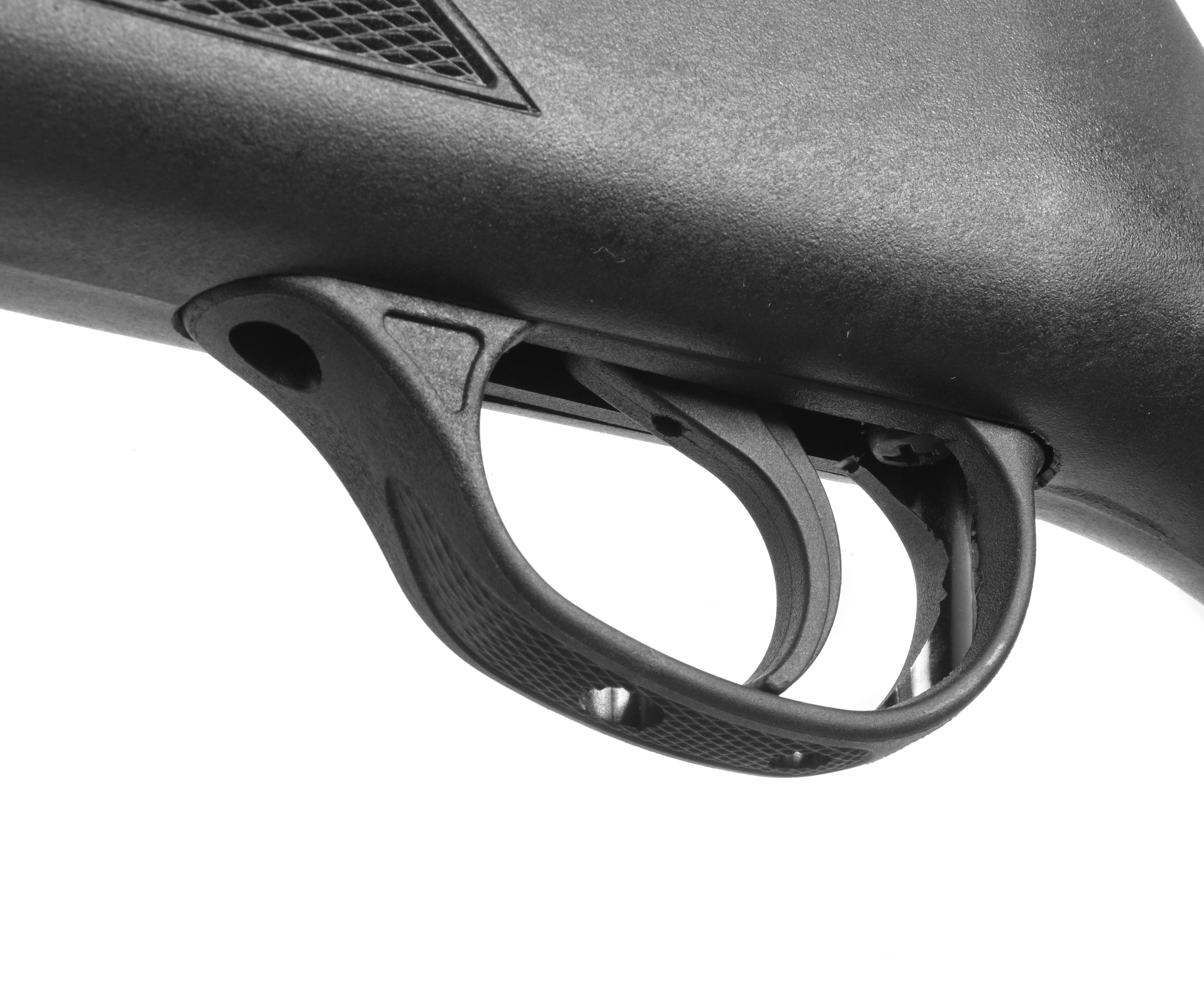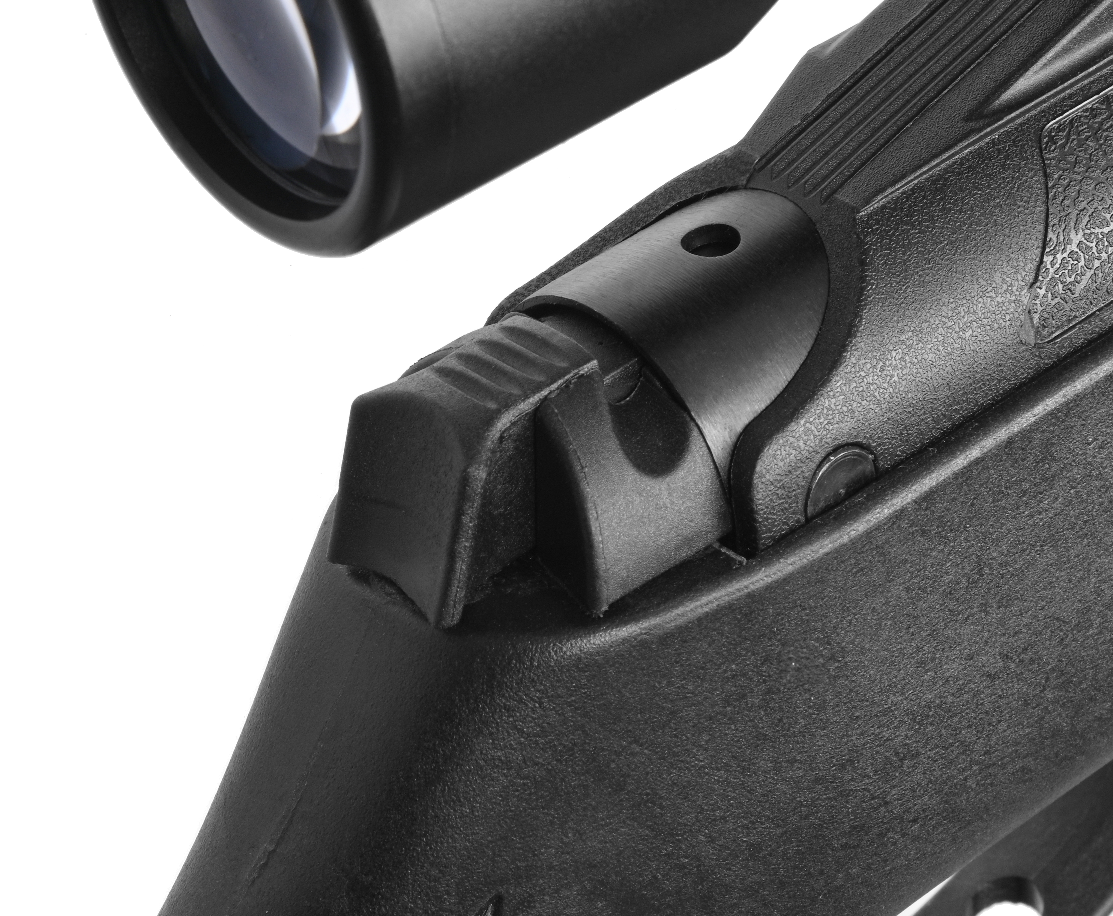После самостоятельного досылания боеприпаса бланк нужно вернуть в исходное состояние, в результате чего пневматическая винтовка Hatsan Alpha ставится на предохранитель для предотвращения случайного выстрела. Чтобы разблокировать спуск, потребуется утопить кнопку с торца коробки над рукоятью - при нажатии на триггер сжатая при взведении витая пружина распрямляется с усилием толкает поршень компрессора. Под действием нагнетаемого в канал воздуха пуля разгоняется до 305 метров в секунду, однако такой показатель актуален для зарубежных версий, тогда как в РФ изделия поступают с мощностью до 3 Дж - то есть лицензия не потребуется.
