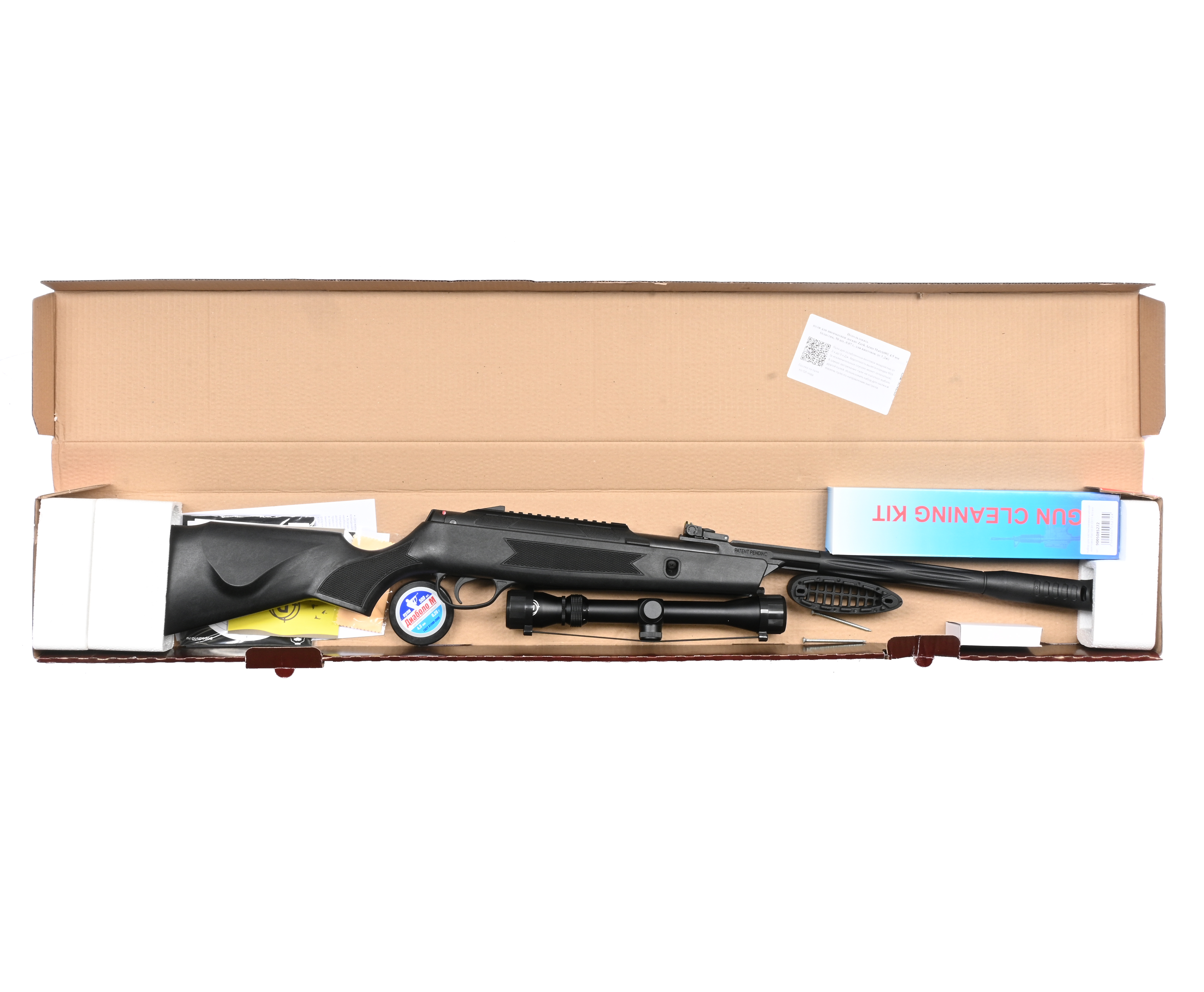 Винтовка поставляется в комплектации Hunter, включающей базовый минимум расходников - упаковку с воланчиковыми пулями и бумажные мишени с секторной разметкой. Благодаря этому будущий владелец сможет опробовать экземпляр на практике сразу после приобретения. По умолчанию наведение происходит при помощи стандартных приспособлений механического типа - мушки и регулируемого целика со светоотражающими вставками.