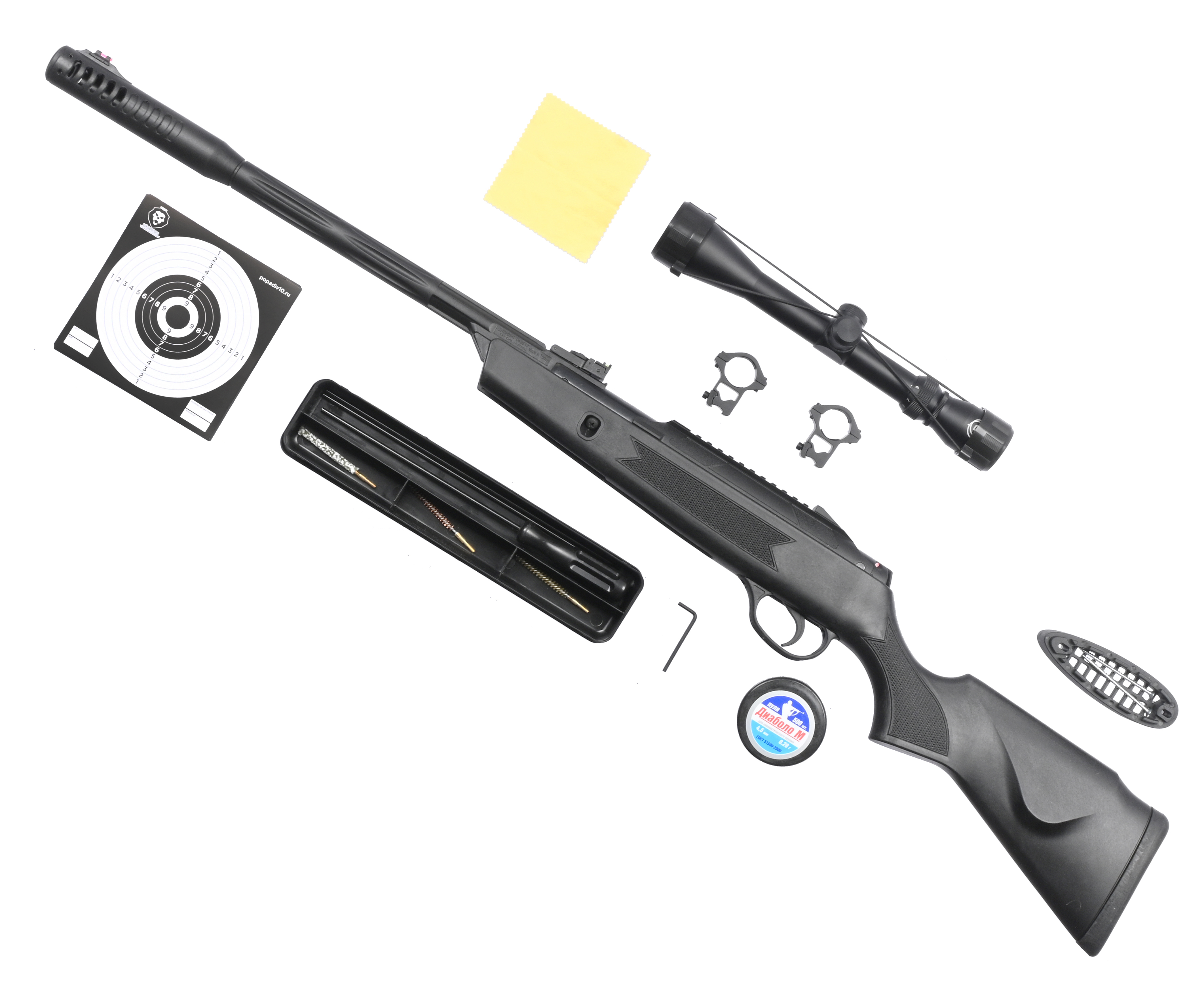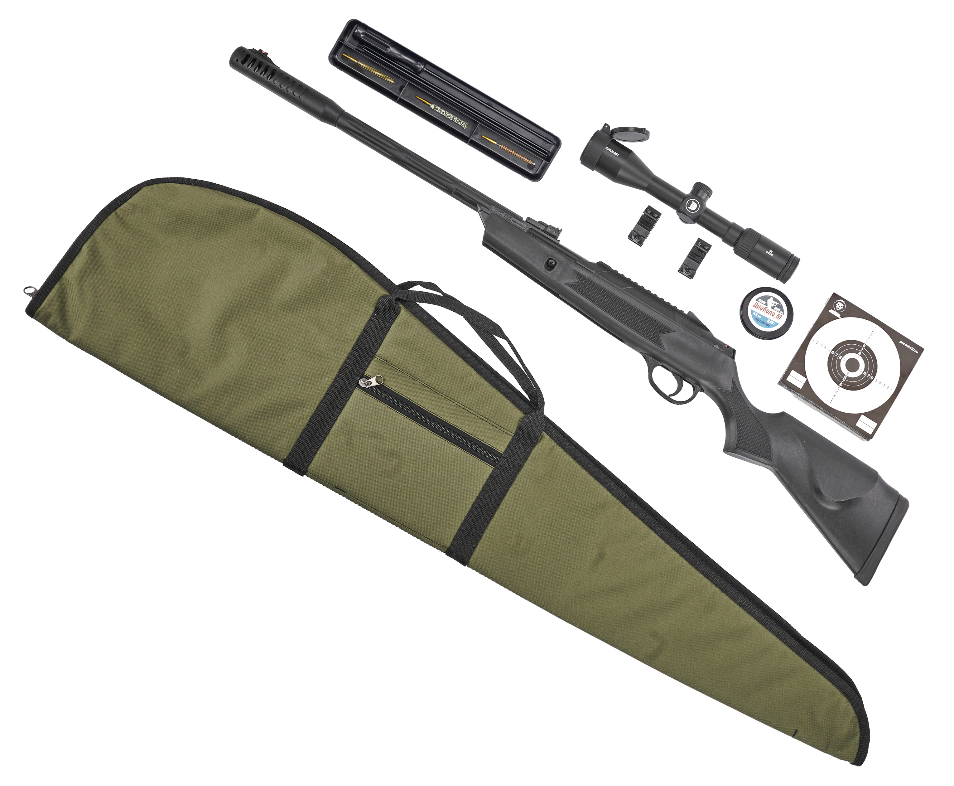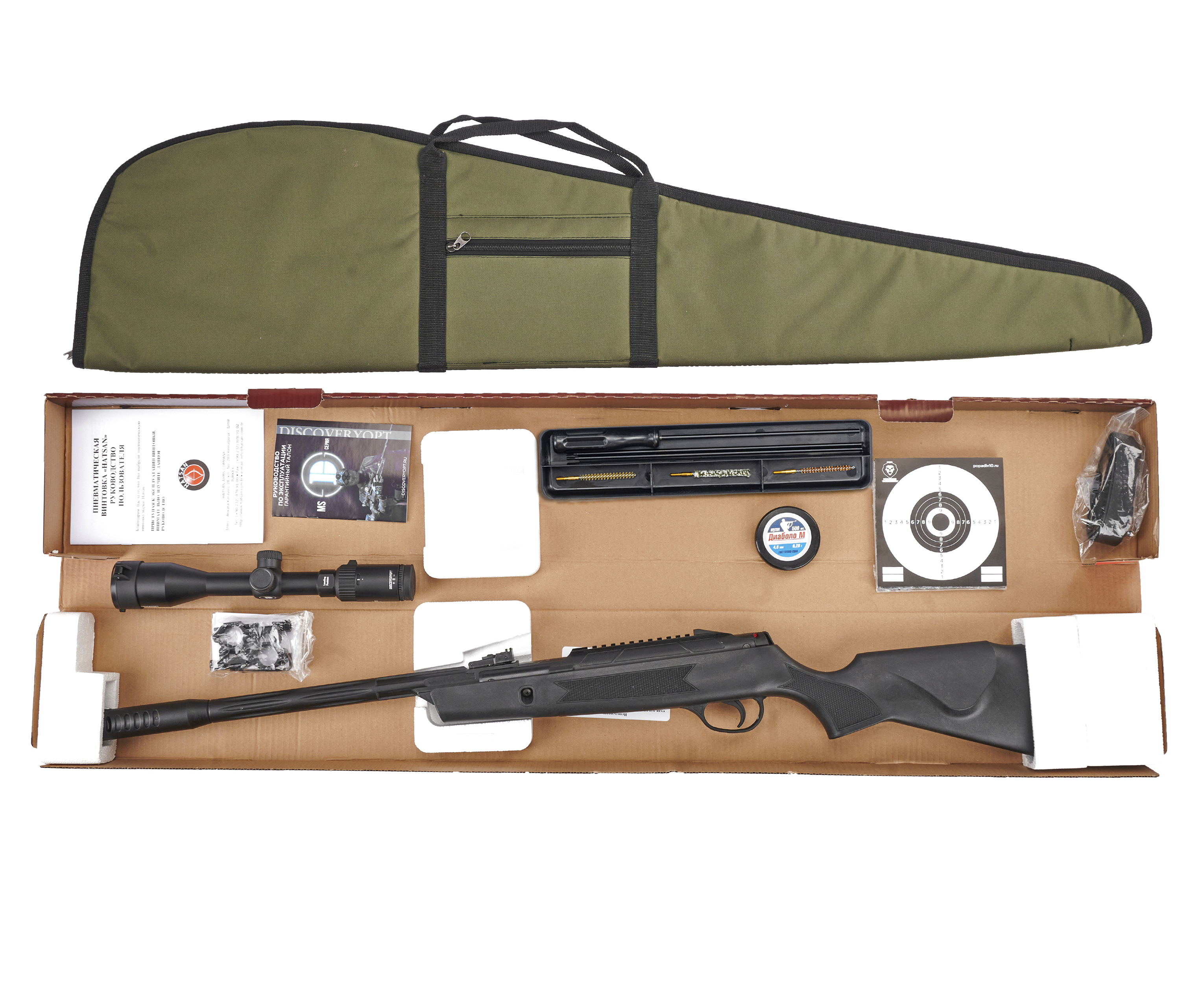 Пневматическая винтовка Hatsan Alpha 4.5 мм подарочный набор Hunter №4 (прицел, кольца, чехол, набор для чистки, мишени, пули) купить в интернет-магазине Popadiv10.