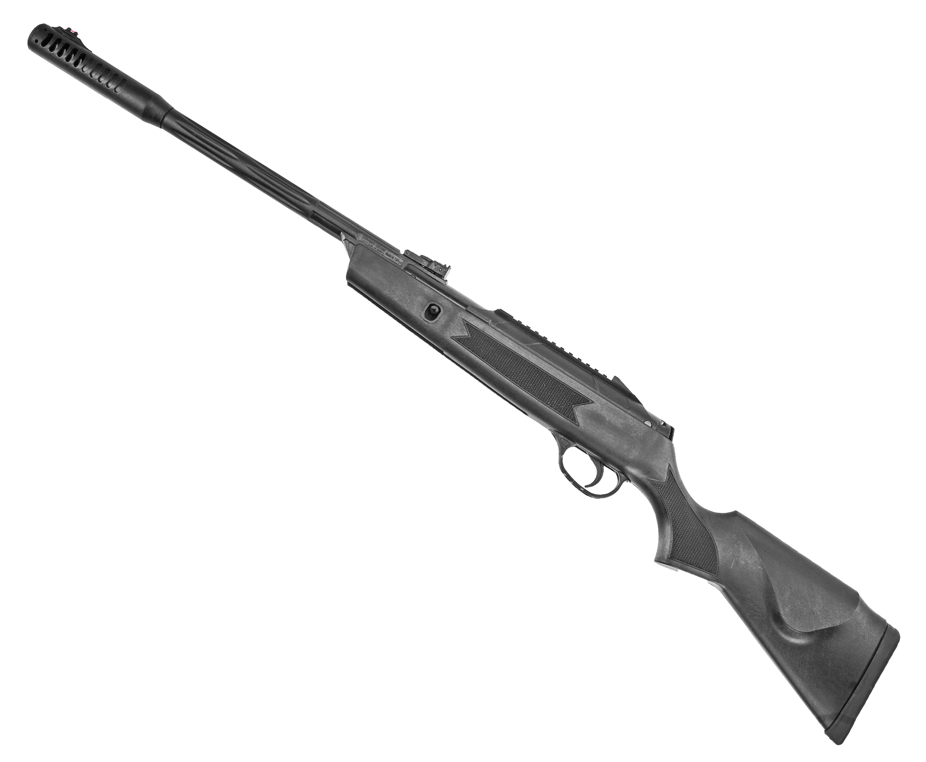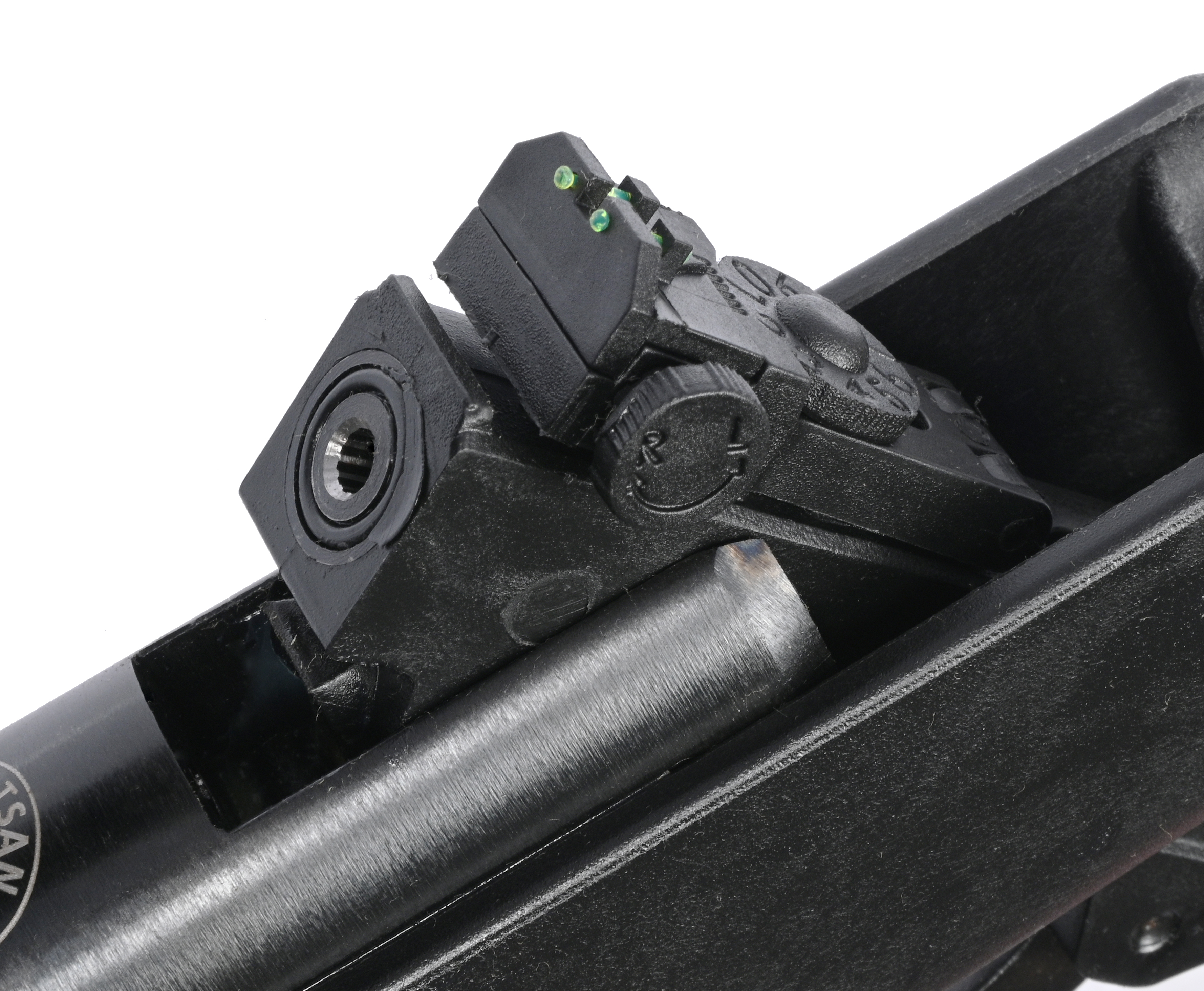 Эксплуатация описываемой винтовки Hatsan допускается и без оптики, так как ее снабдили мушкой и регулируемым целиком. Указанные прицельные приспособления предусматривают светонакопительные вставки - их наличие гарантирует эффективное использование модели в условиях слабой освещенности на рассвете или в сумерках. Сам экземпляр вышел компактным с малой массой - вес изделия составляет 2.35 килограмма, а длина не превышает 108 сантиметров, из которых 450 миллиметров занимает ствол.