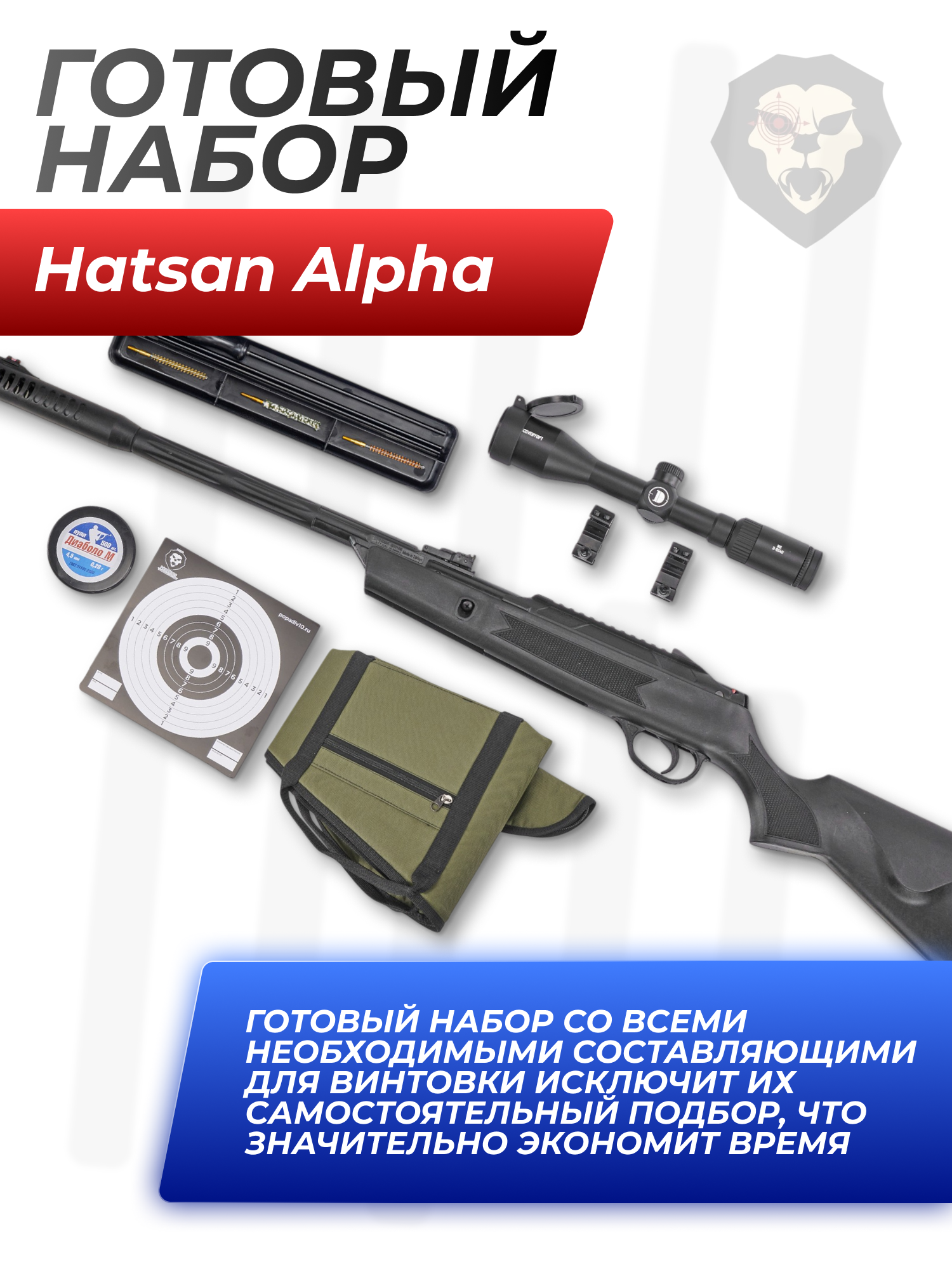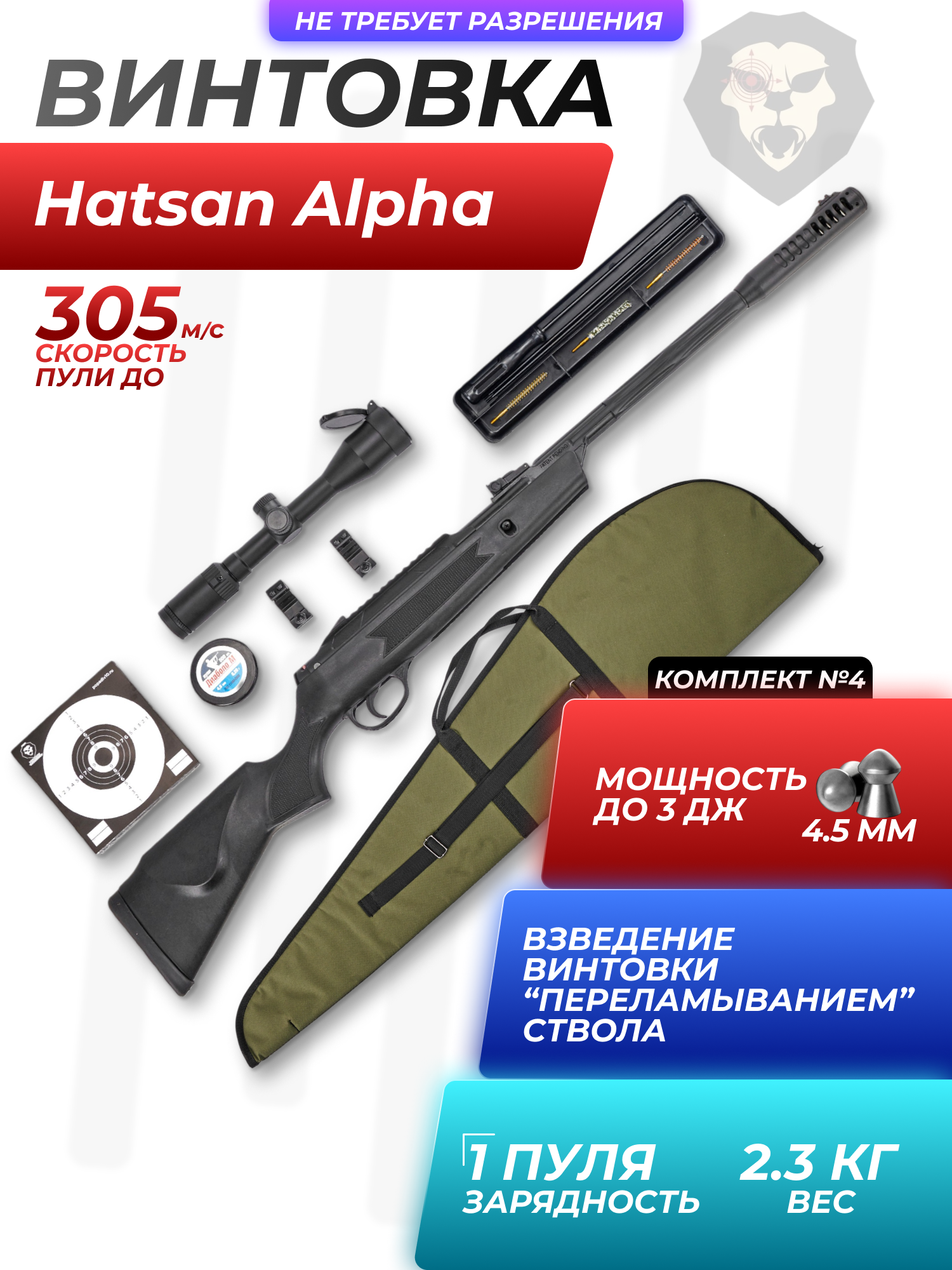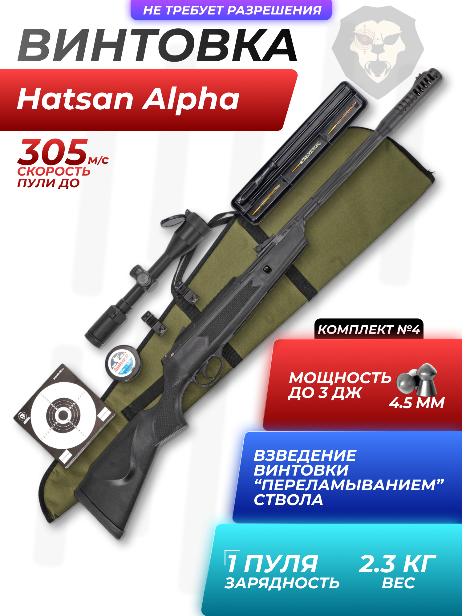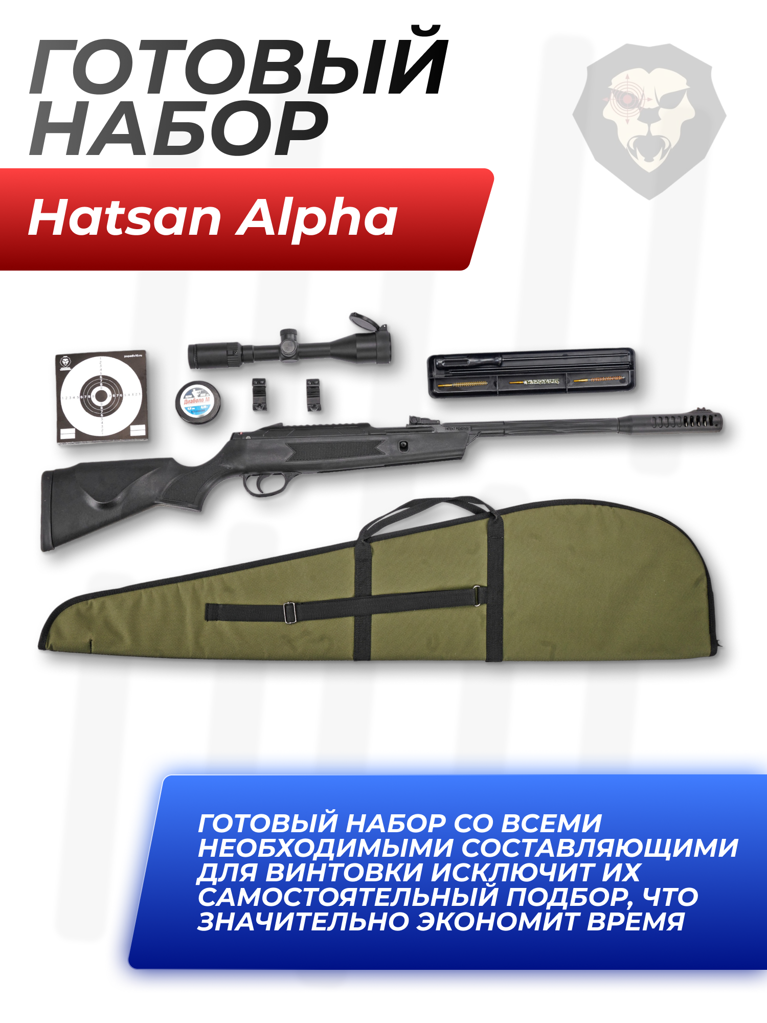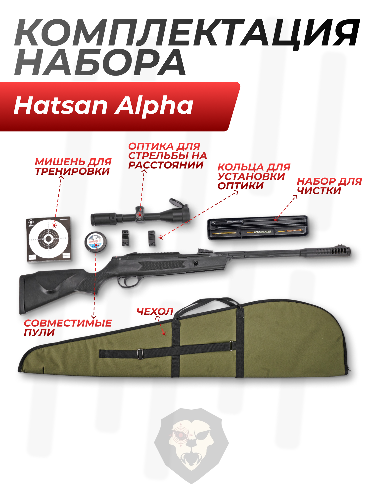 Информация о товаре "Пневматическая винтовка Hatsan Alpha 4.5 мм подарочный набор Hunter №4 (прицел, кольца, чехол, набор для чистки, мишени, пули)" носит ознакомительный характер, и не является публичной офертой, определяемой положениями Статьи 437 Гражданского кодекса Российской Федерации, характеристики, внешний вид, цвет и комплектация могут быть изменены производителем без уведомления.