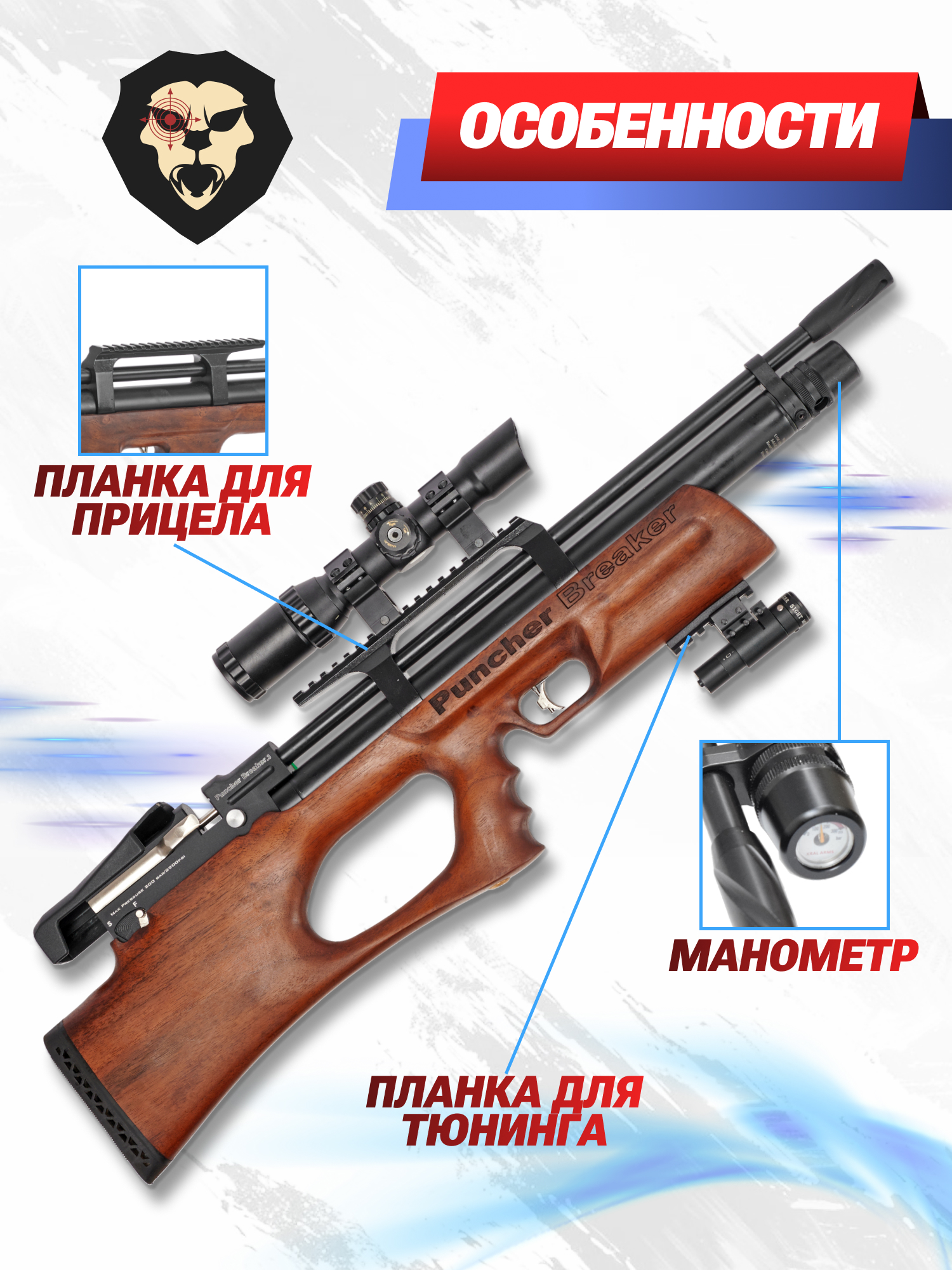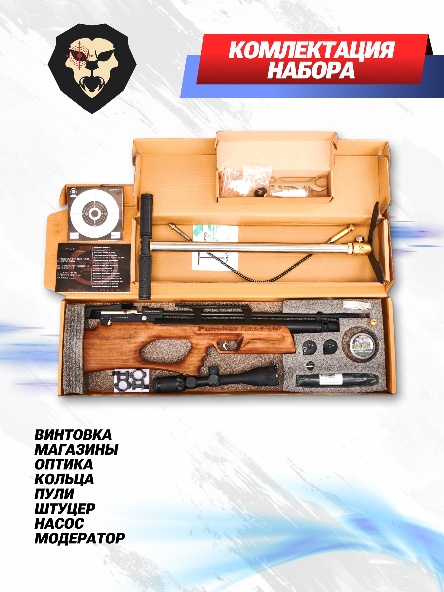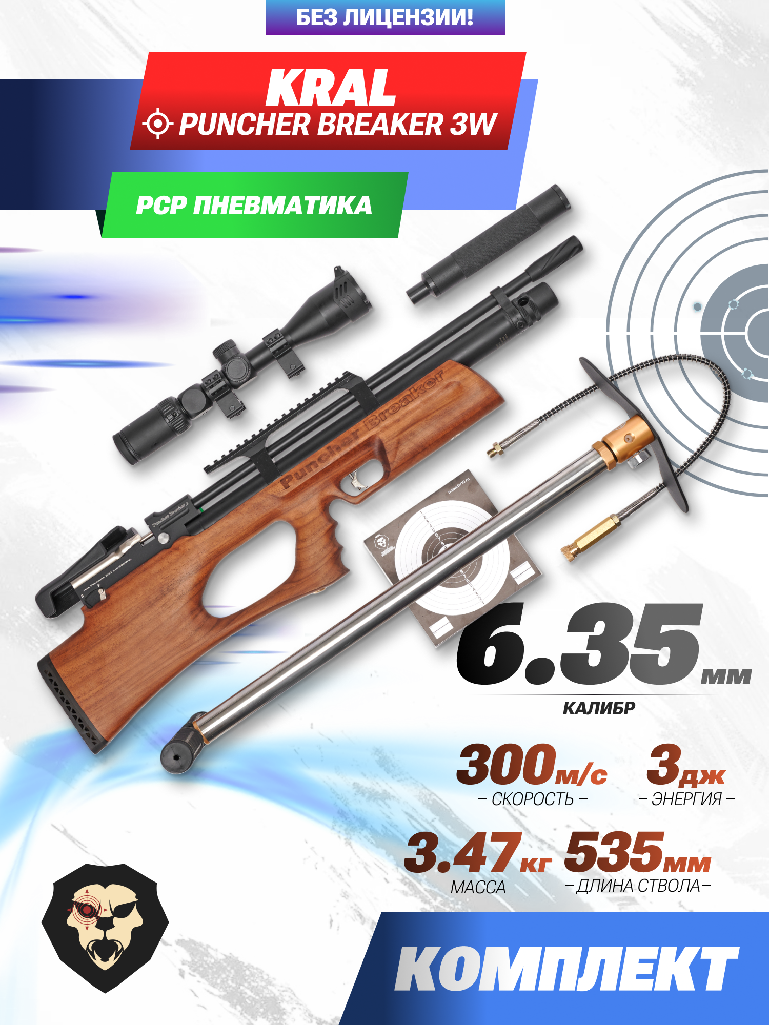 Винтовка Kral Puncher Breaker 3W 6.35 мм комплект Hunter подарочный (орех, прицел, кольца, пули, мишени, модератор, насос, переходник) купить в интернет-магазине Popadiv10.