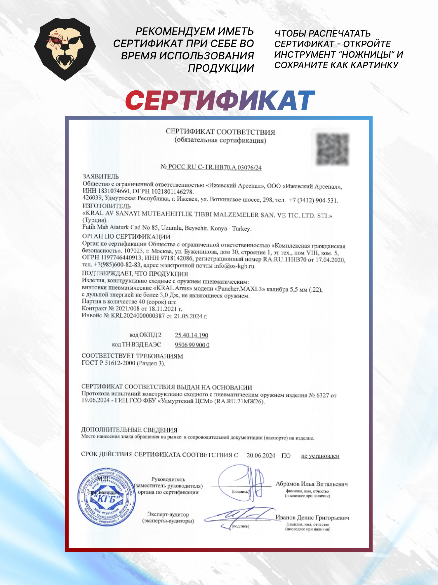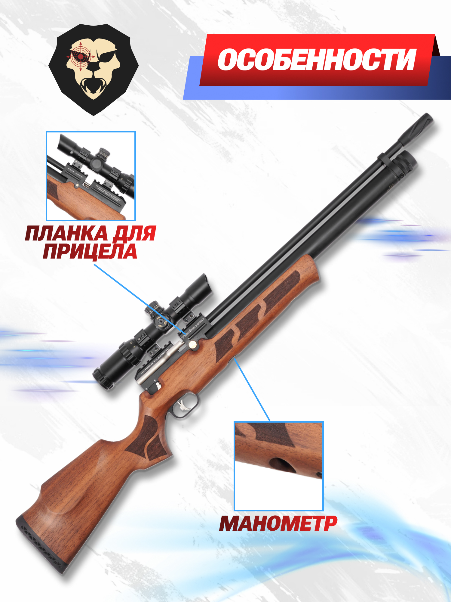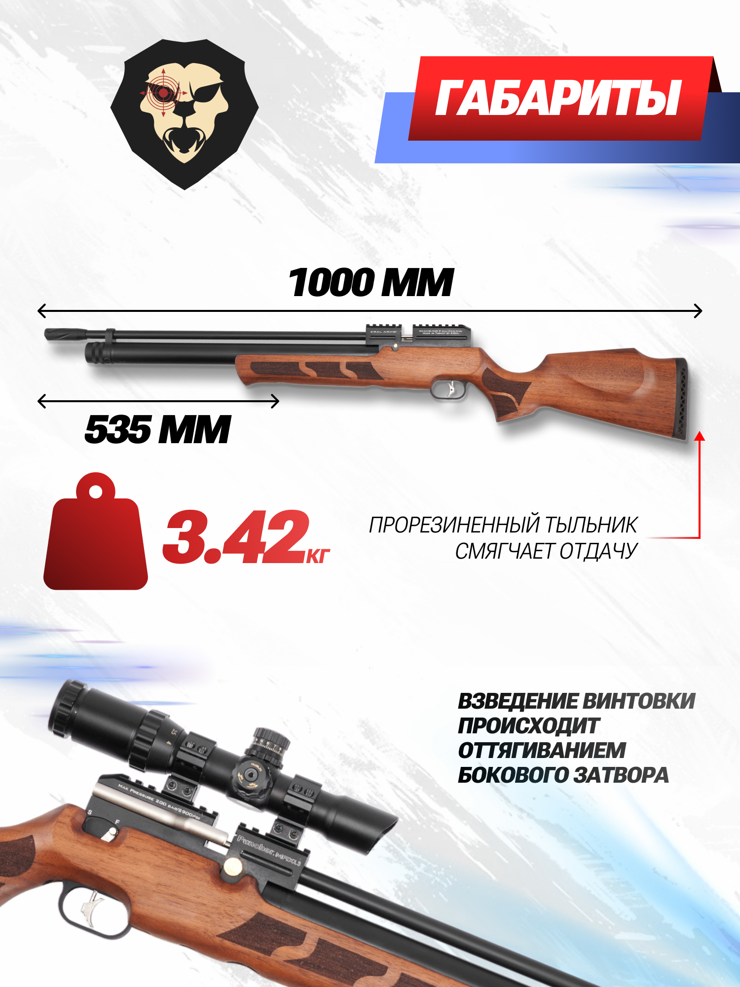 | Комплектация | Винтовка, магазин - 2 шт, оптический прицел, кольца, насос с принадлежностями, переходник, пули, мишени, модератор, заправочный штуцер, упаковка, краткая документация, копия сертификата (по запросу покупателя) |