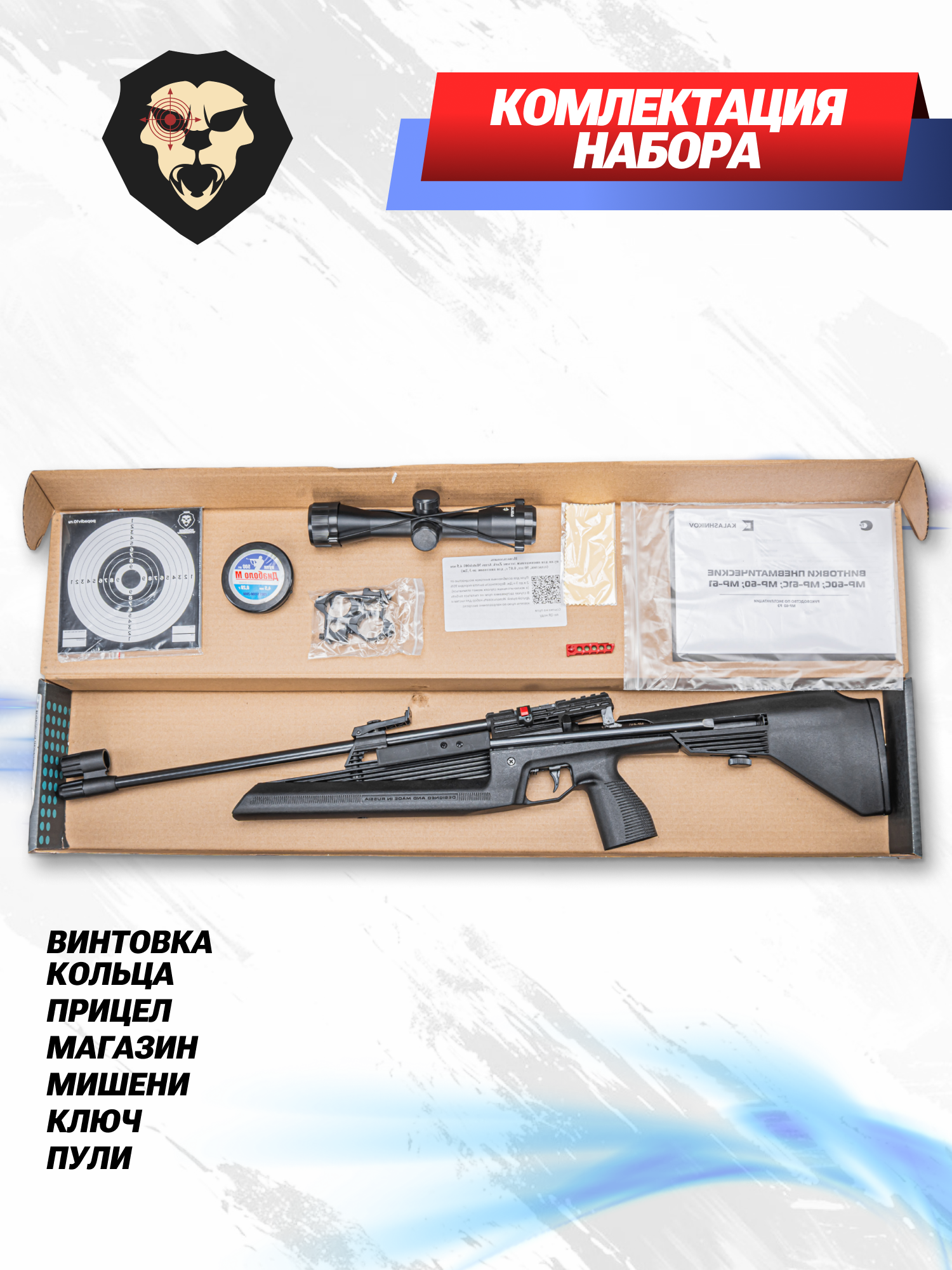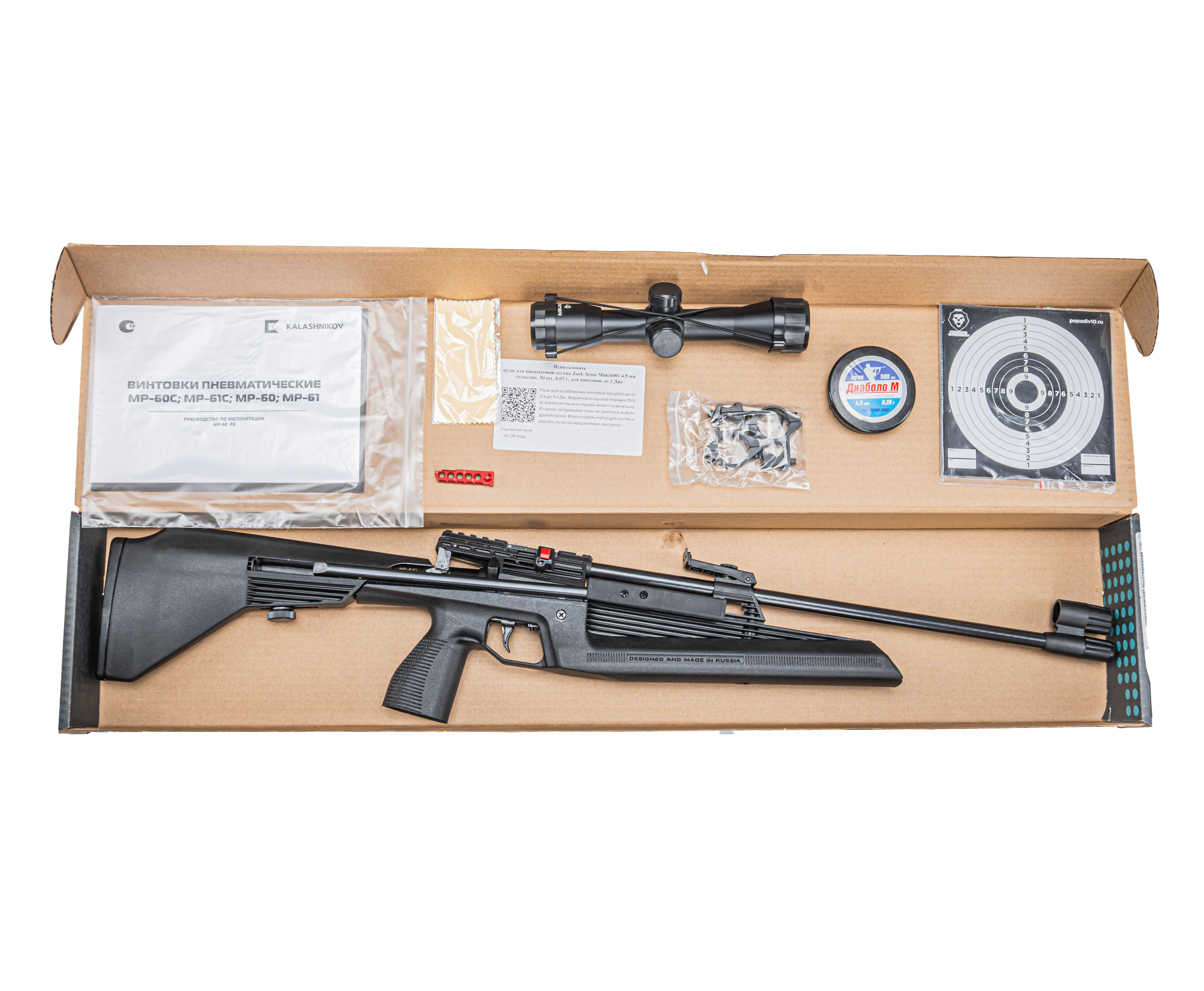 Винтовка пневматическая Baikal МР-61С комплект Hunter №1 подарочный (прицел, кольца, мишени, пули) текущий товар