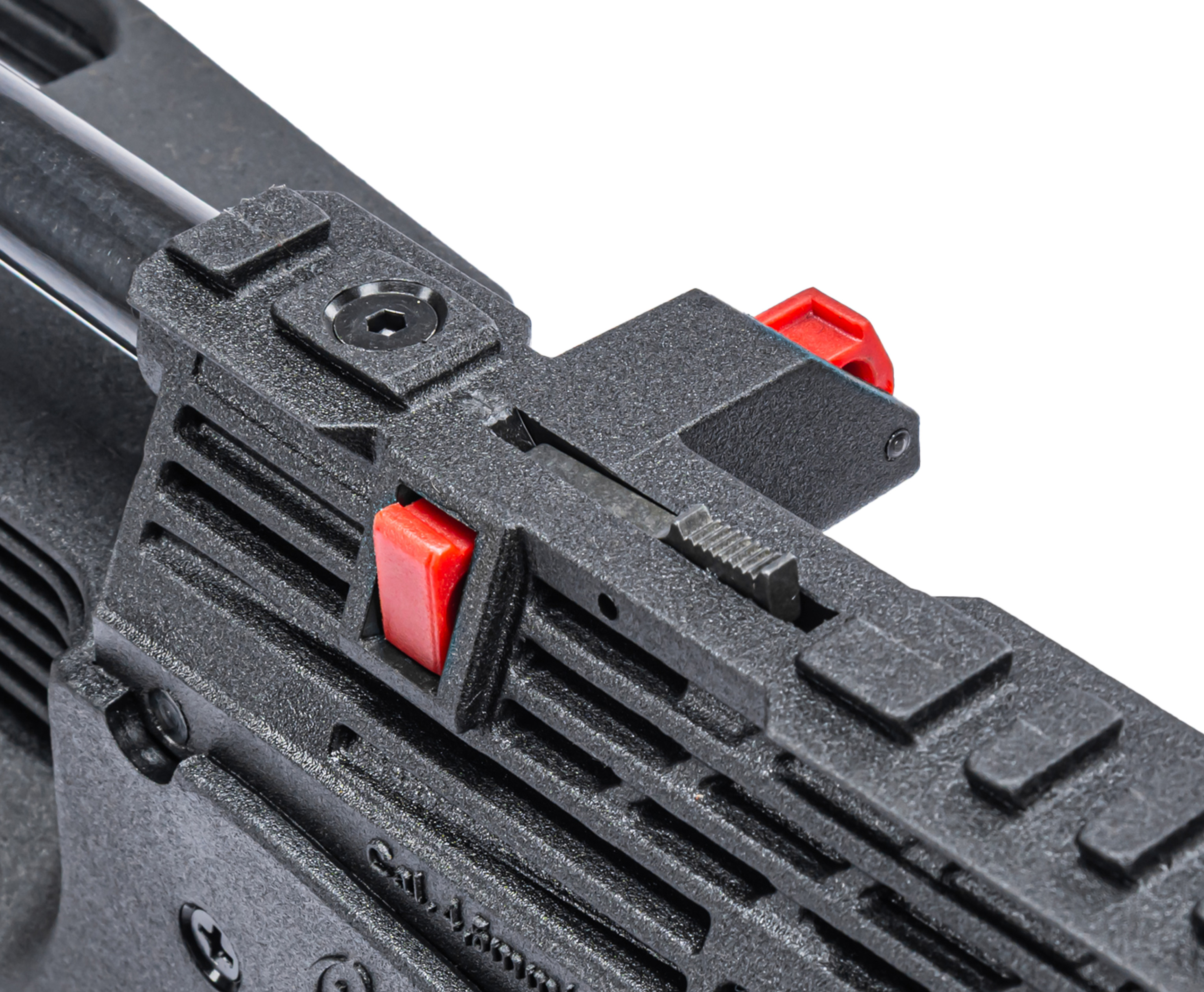 Что касается прицеливания, то тут присутствуют два варианта. Первый - классическая предустановленная механика. Второй - монтаж оптики, диоптра или коллиматора на «Ласточкин хвост», выполненный в ствольной коробке.