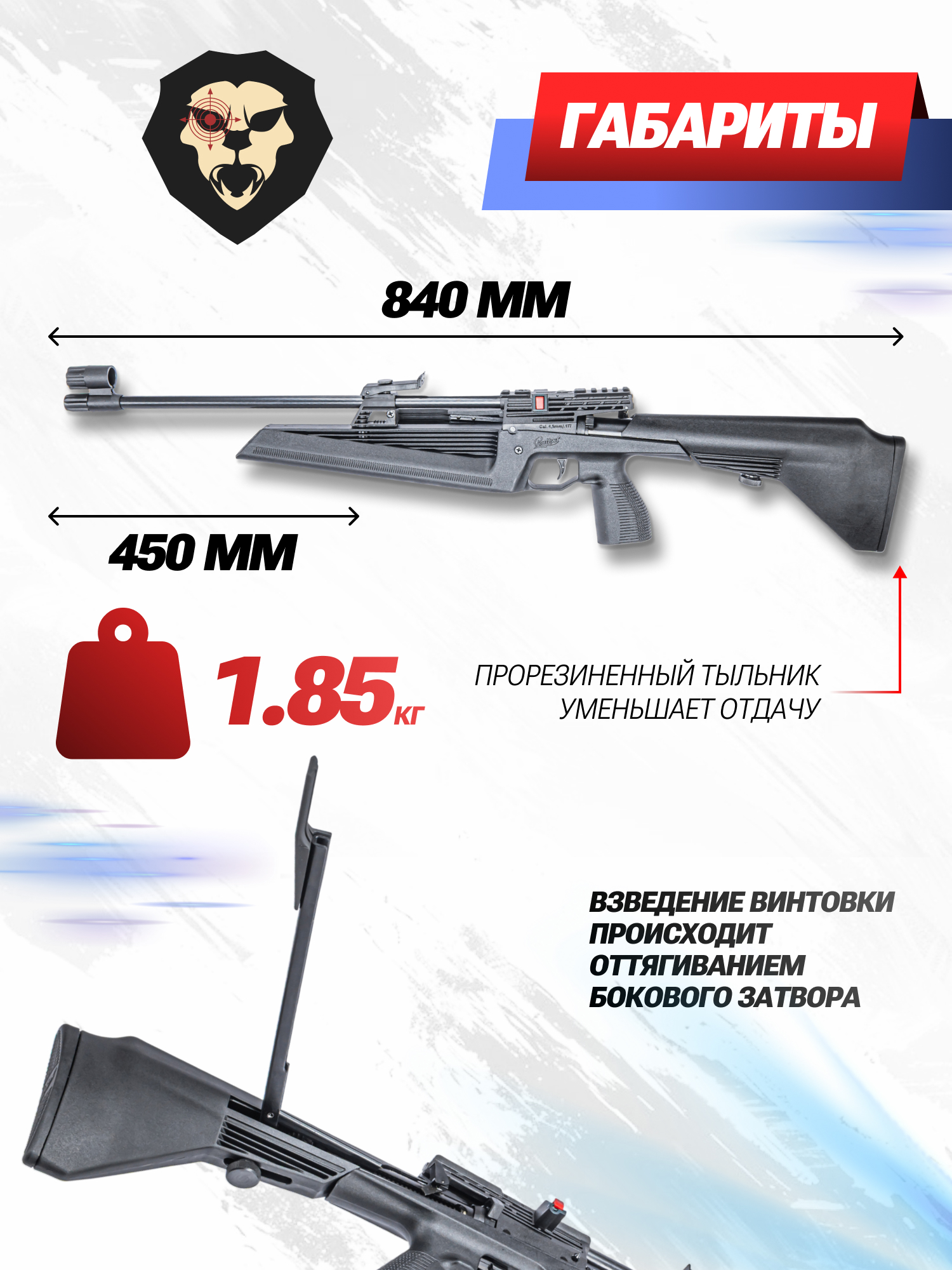 Внимание! Данная модель поставляется в разрешенной мощности для свободного приобретения на территории Российской Федерации. При этом в модели имеется возможность увеличения мощности путем замены части деталей или настройки конструкции, однако не стоит забывать о Федеральном законе «Об оружии» № 150 - ФЗ. В случае необходимости, опираясь на данный закон и руководствуясь им, возможно, потребуется получить разрешение от ЛЛР ГУ МВД России после вмешательства в конструкцию.