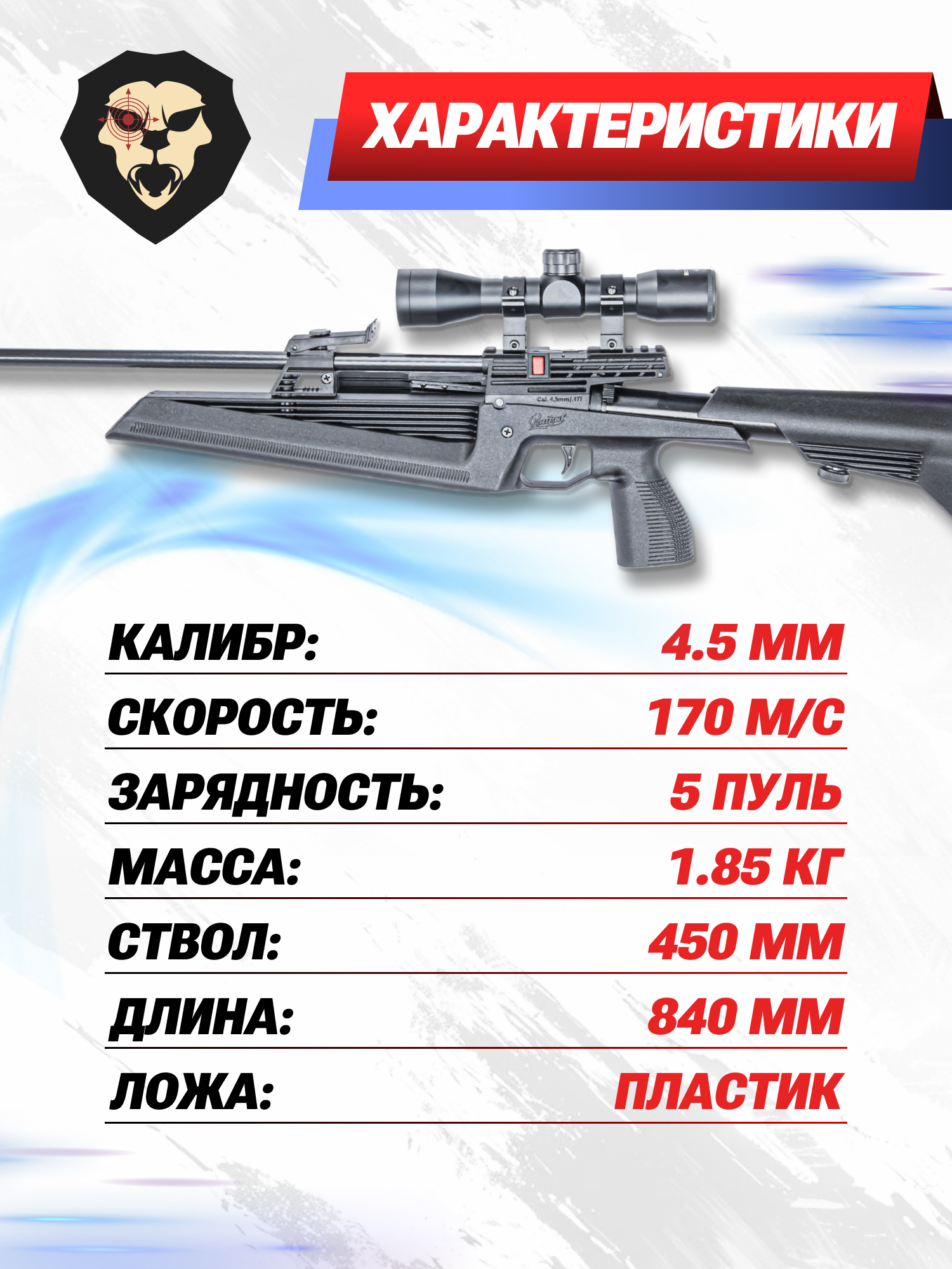 Что касается потенциала, то его достаточно для целей, ставящихся в спортивных дисциплинах - пуля из этой винтовки сможет разогнаться до 170 метров в секунду. При этом изделие не подходит под определение оружия, требующего лицензию - благодаря мощности не выше 3-х Дж изделие относят к категории конструктивно схожих с таковым. Соответственно они доступны и для занятий, проводящихся среди юношей.