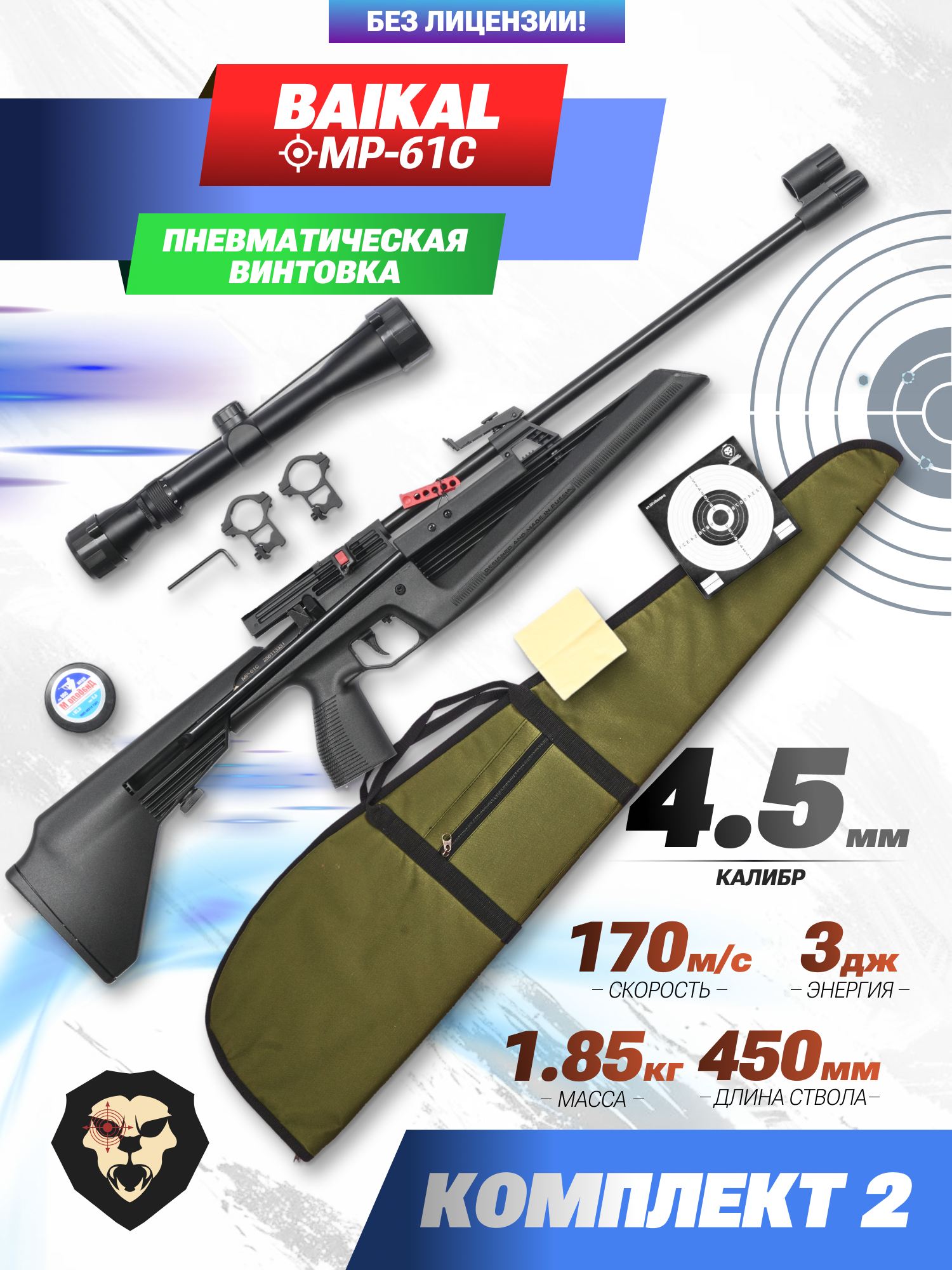 Винтовка пневматическая Baikal МР-61С комплект Hunter №2 подарочный (прицел, кольца, мишени, пули, чехол) купить в интернет-магазине Popadiv10.