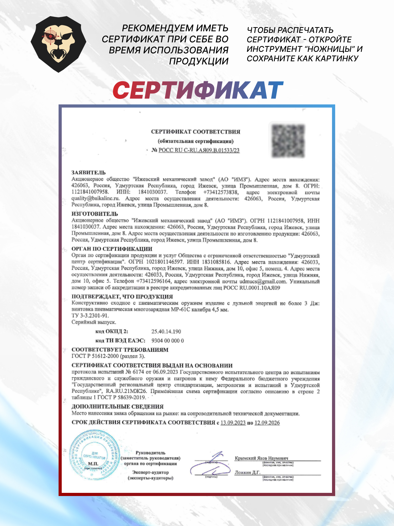 Информация о товаре "Винтовка пневматическая Baikal МР-61С комплект Hunter №2 подарочный (прицел, кольца, мишени, пули, чехол)" носит ознакомительный характер, и не является публичной офертой, определяемой положениями Статьи 437 Гражданского кодекса Российской Федерации, характеристики, внешний вид, цвет и комплектация могут быть изменены производителем без уведомления.