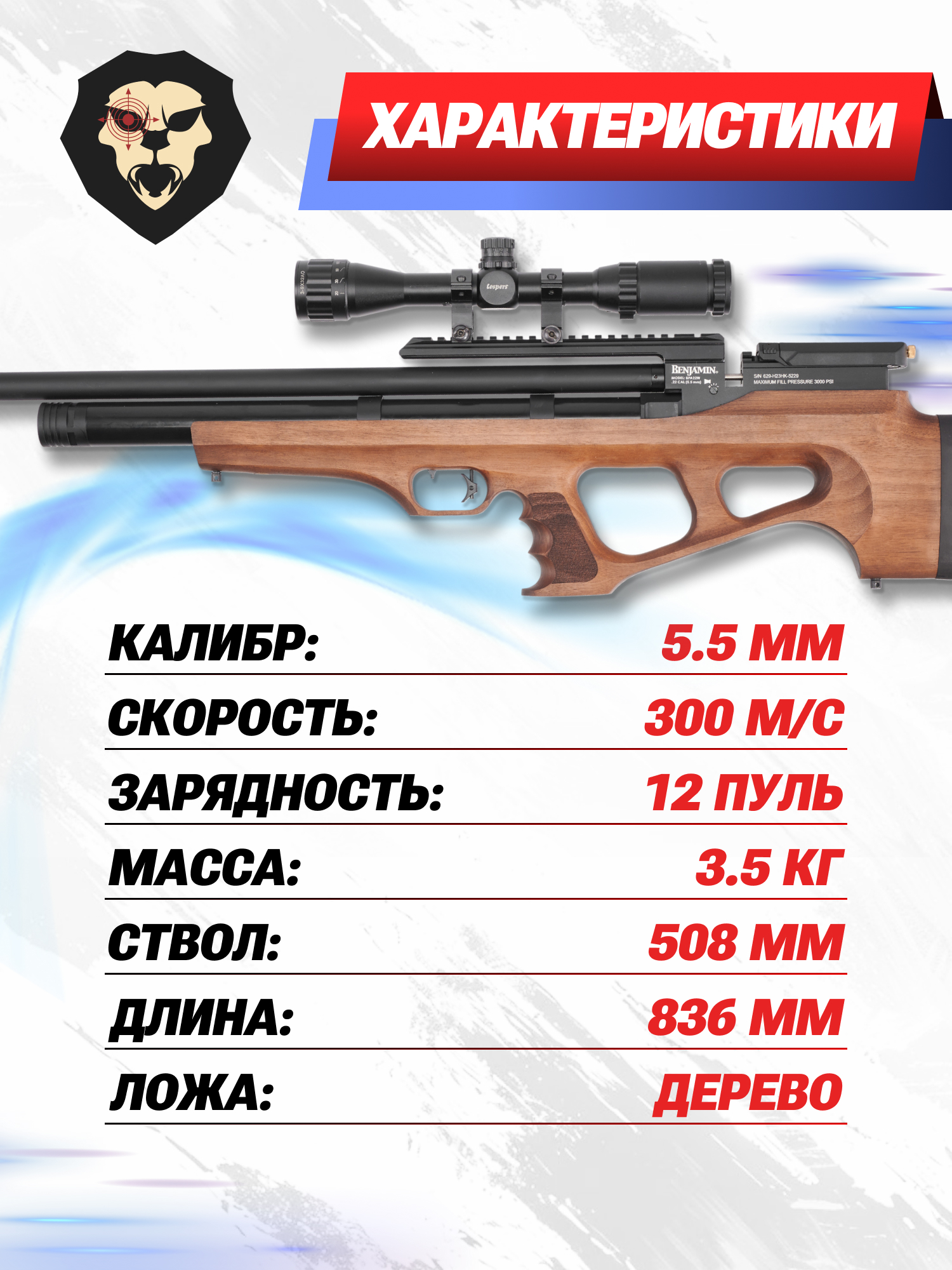 Информация о товаре "Винтовка пневматическая Crosman Benjamin Akela 5.5 мм (Орех)" носит ознакомительный характер, и не является публичной офертой, определяемой положениями Статьи 437 Гражданского кодекса Российской Федерации, характеристики, внешний вид, цвет и комплектация могут быть изменены производителем без уведомления.