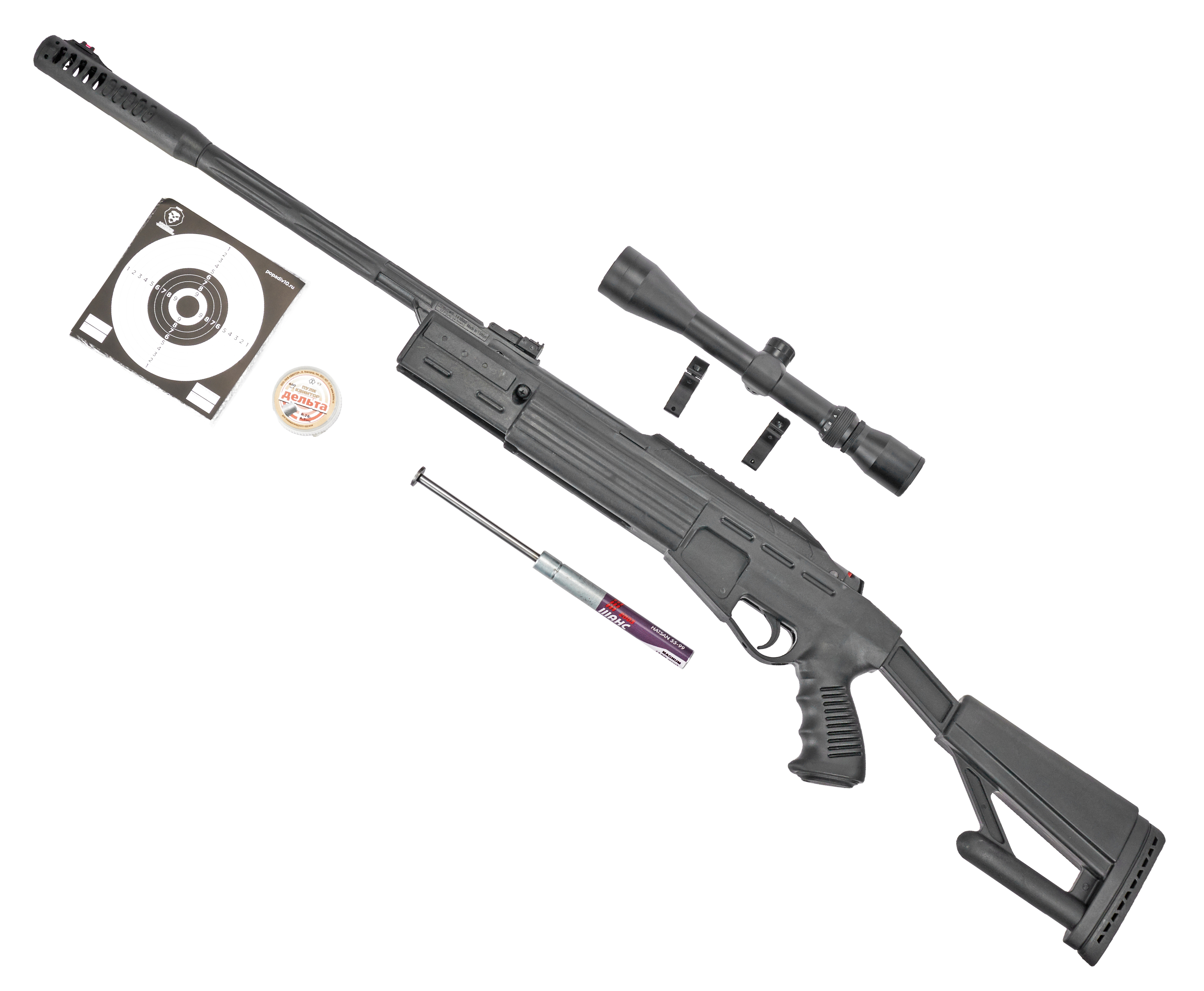 Рассматриваемый набор основан на пневматике переломного типа, произведенной турецкой фирмой Hatsan. Винтовка Airtact выполнена в калибре 4.5 мм и обладает оптимальным соотношением характеристик для различных сценариев использования. В свою очередь формат поставки дает в полной мере раскрыть ее потенциал и незамедлительно приступить к практике без денежных трат на расходники.