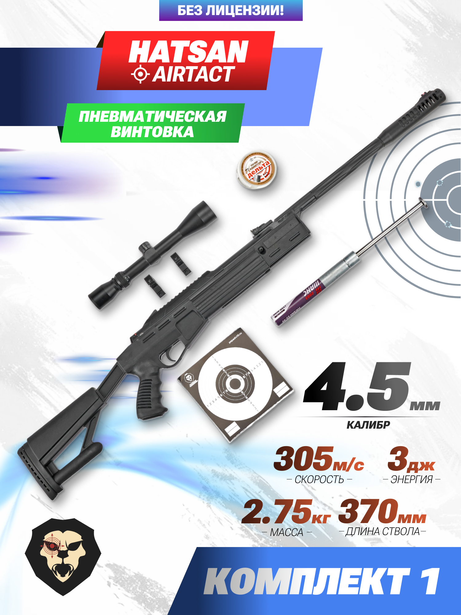 Винтовка пневматическая Hatsan Airtact 4.5 мм комплект Hunter №1 (прицел, кольца, газовая пружина, мишени, пули, 3 Дж) купить в интернет-магазине Popadiv10.