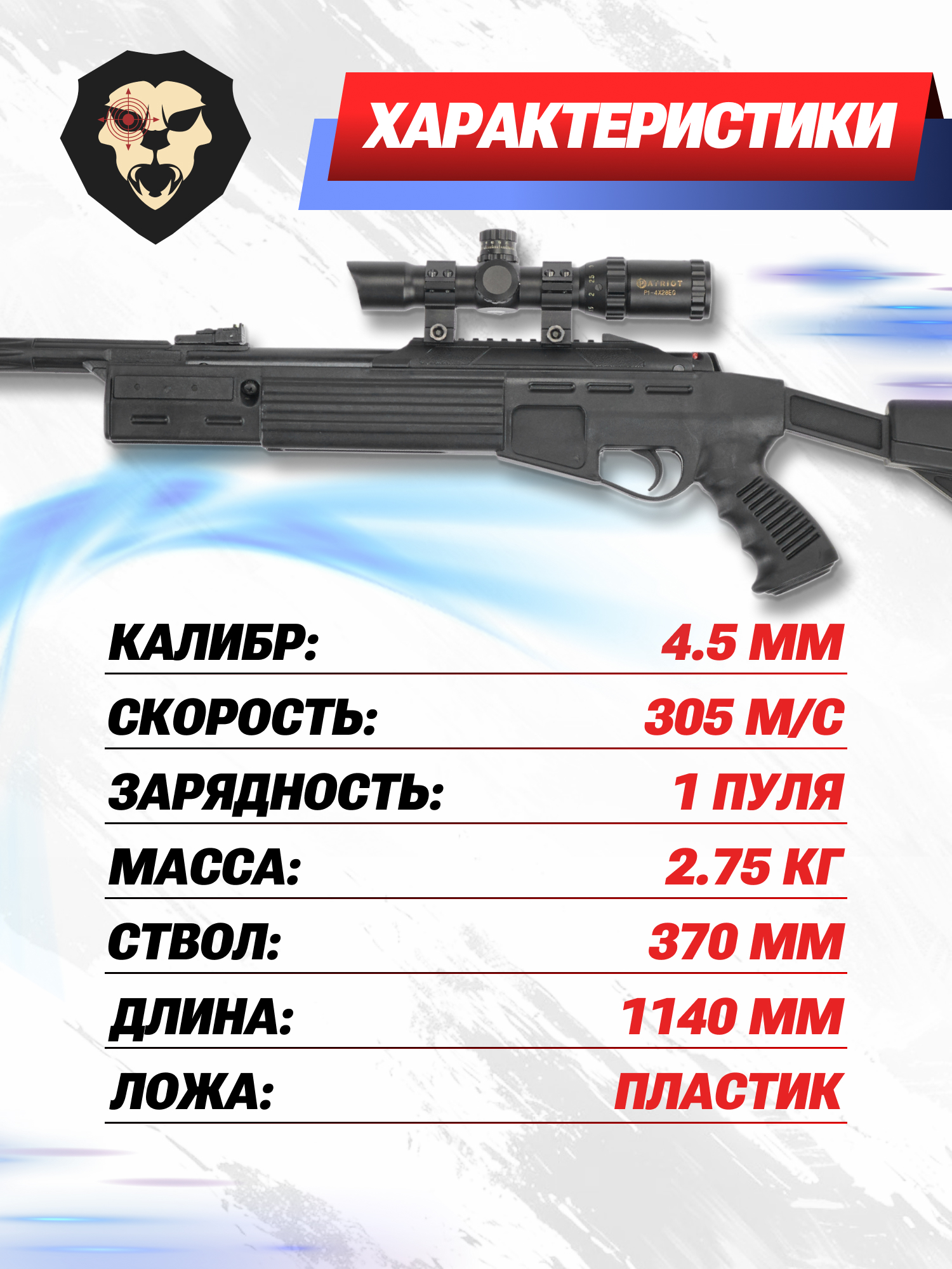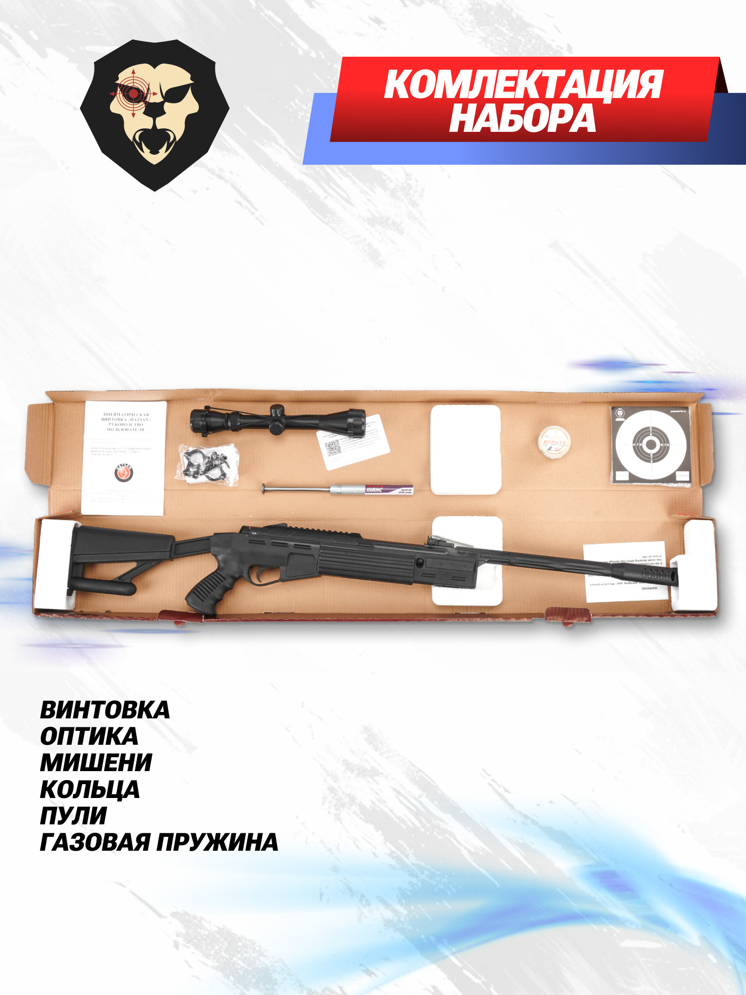 | Комплектация | Винтовка, оптический прицел, кольца, газовая пружина, мишени, пули, упаковка, краткая документация, копия сертификата (по запросу покупателя) |