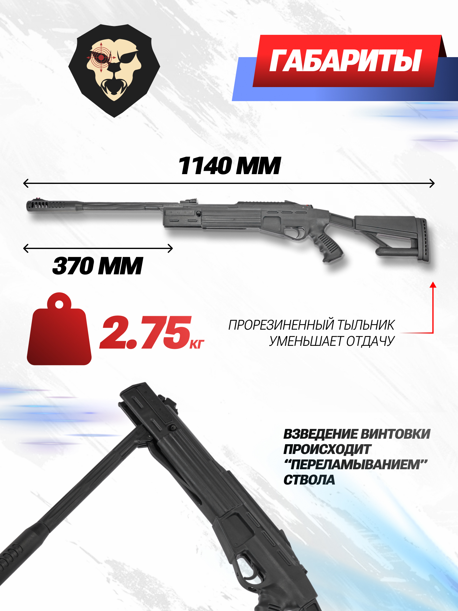 Внимание! Данная модель поставляется в разрешенной мощности для свободного приобретения на территории Российской Федерации. При этом в модели имеется возможность увеличения мощности путем замены части деталей или настройки конструкции, однако не стоит забывать о Федеральном законе «Об оружии» № 150 - ФЗ. В случае необходимости, опираясь на данный закон и руководствуясь им, возможно, потребуется получить разрешение от ЛЛР ГУ МВД России после вмешательства в конструкцию.