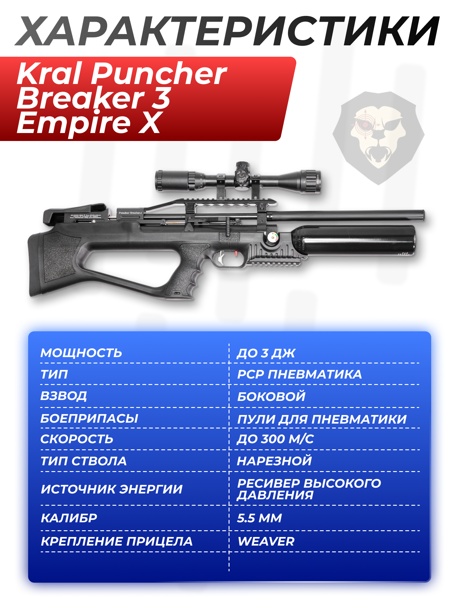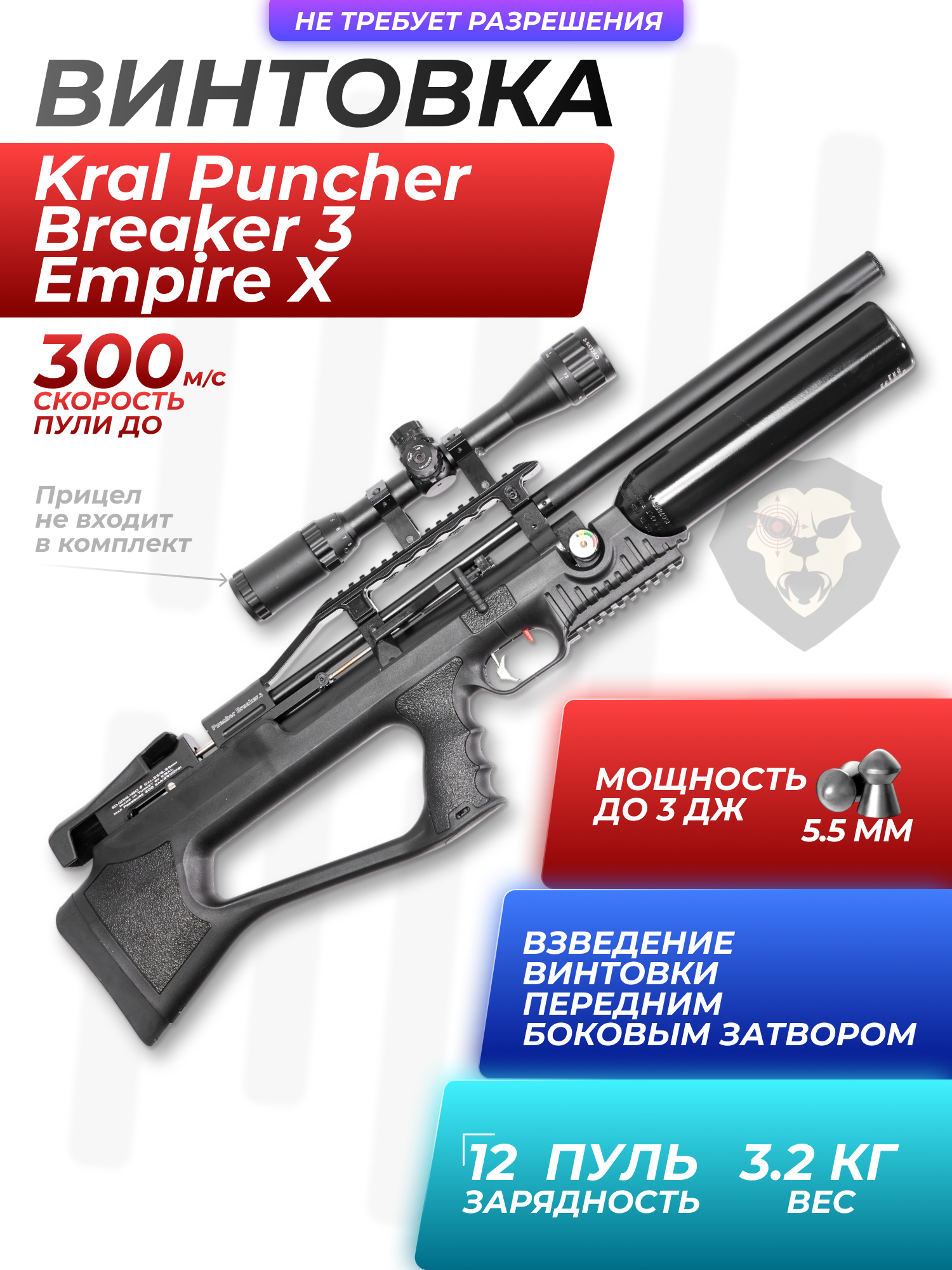 Пневматическая винтовка Kral Puncher Breaker 3 Empire X 5.5 мм (пластик, колба) купить в интернет-магазине Popadiv10.