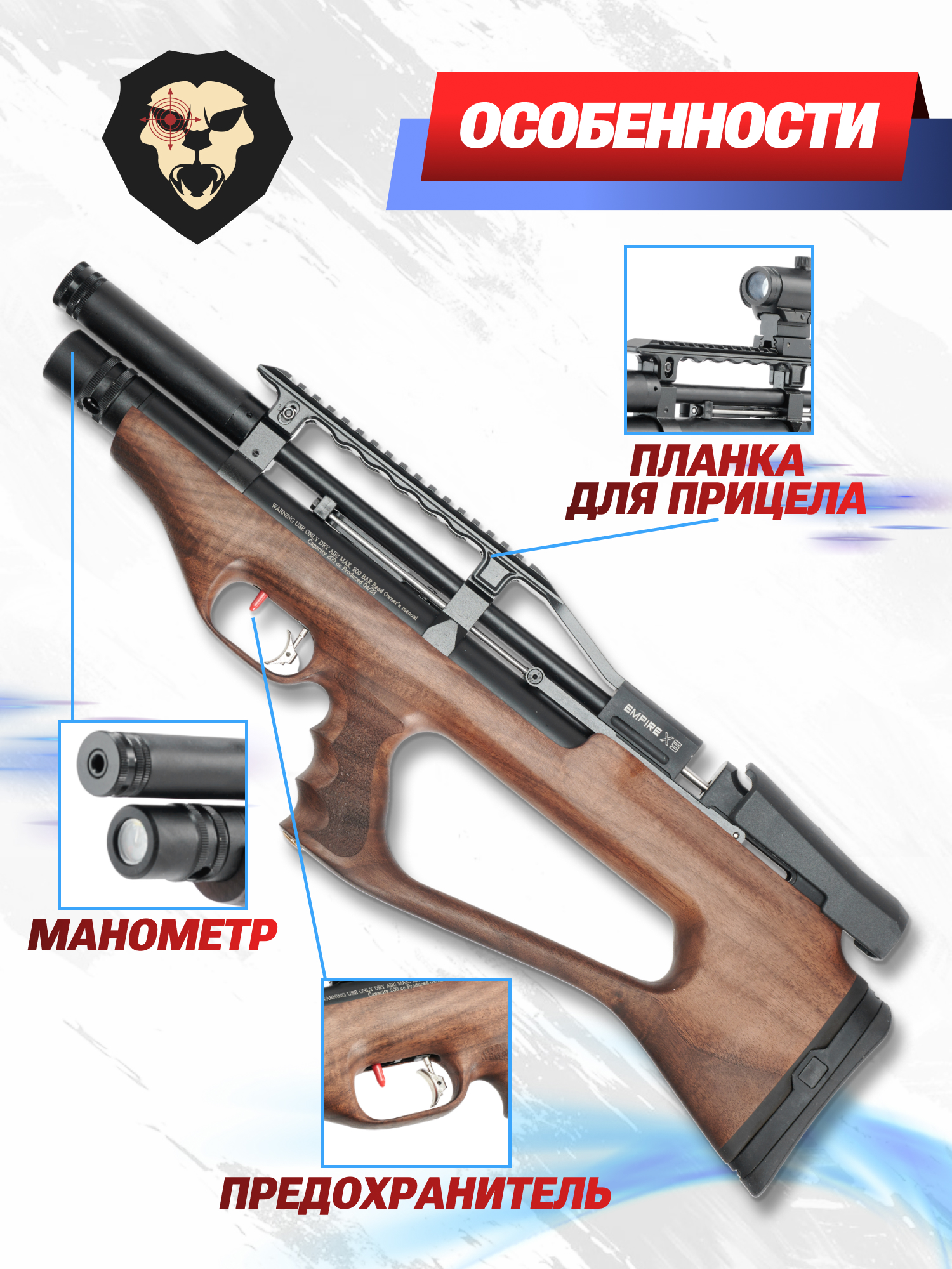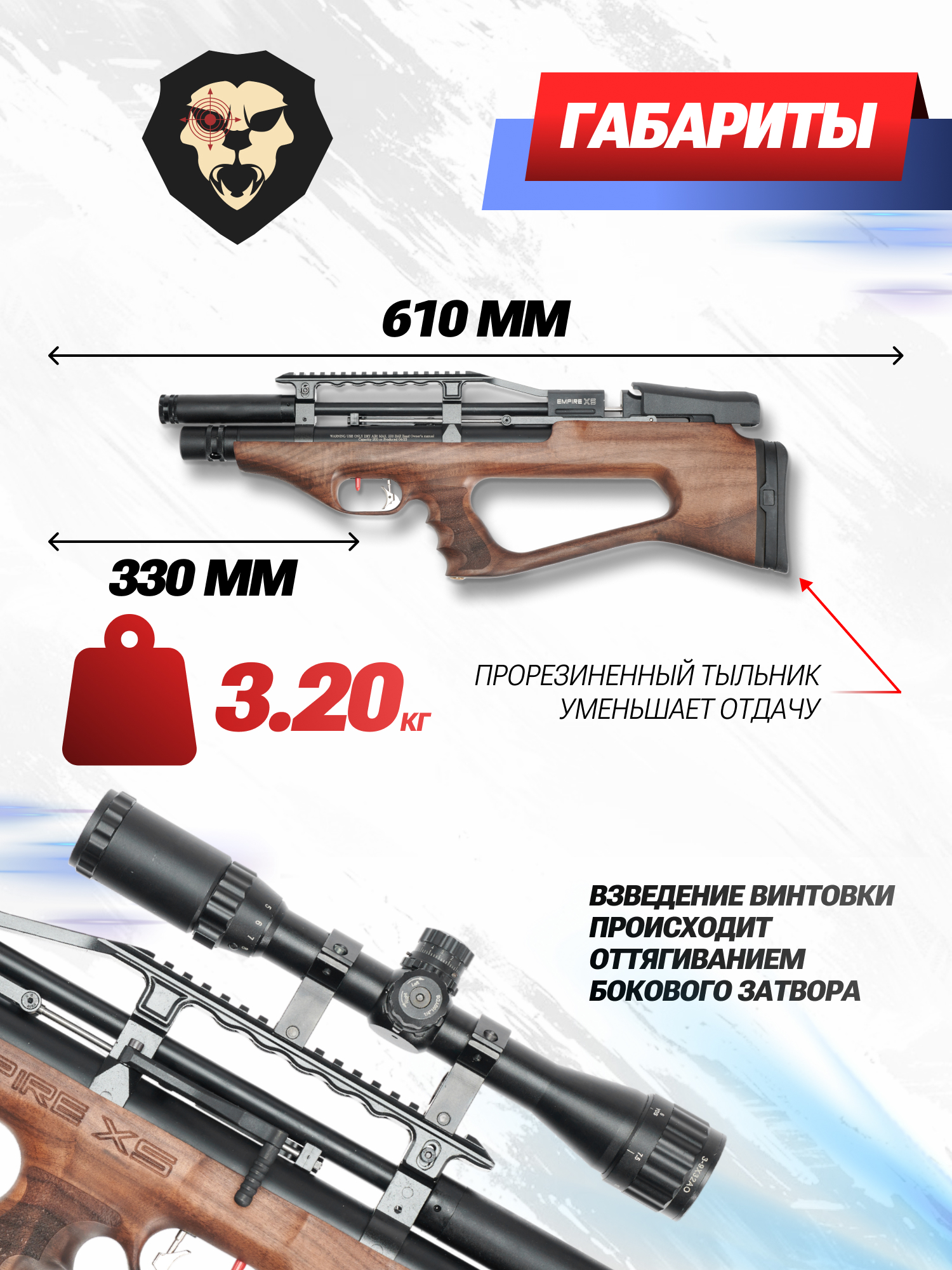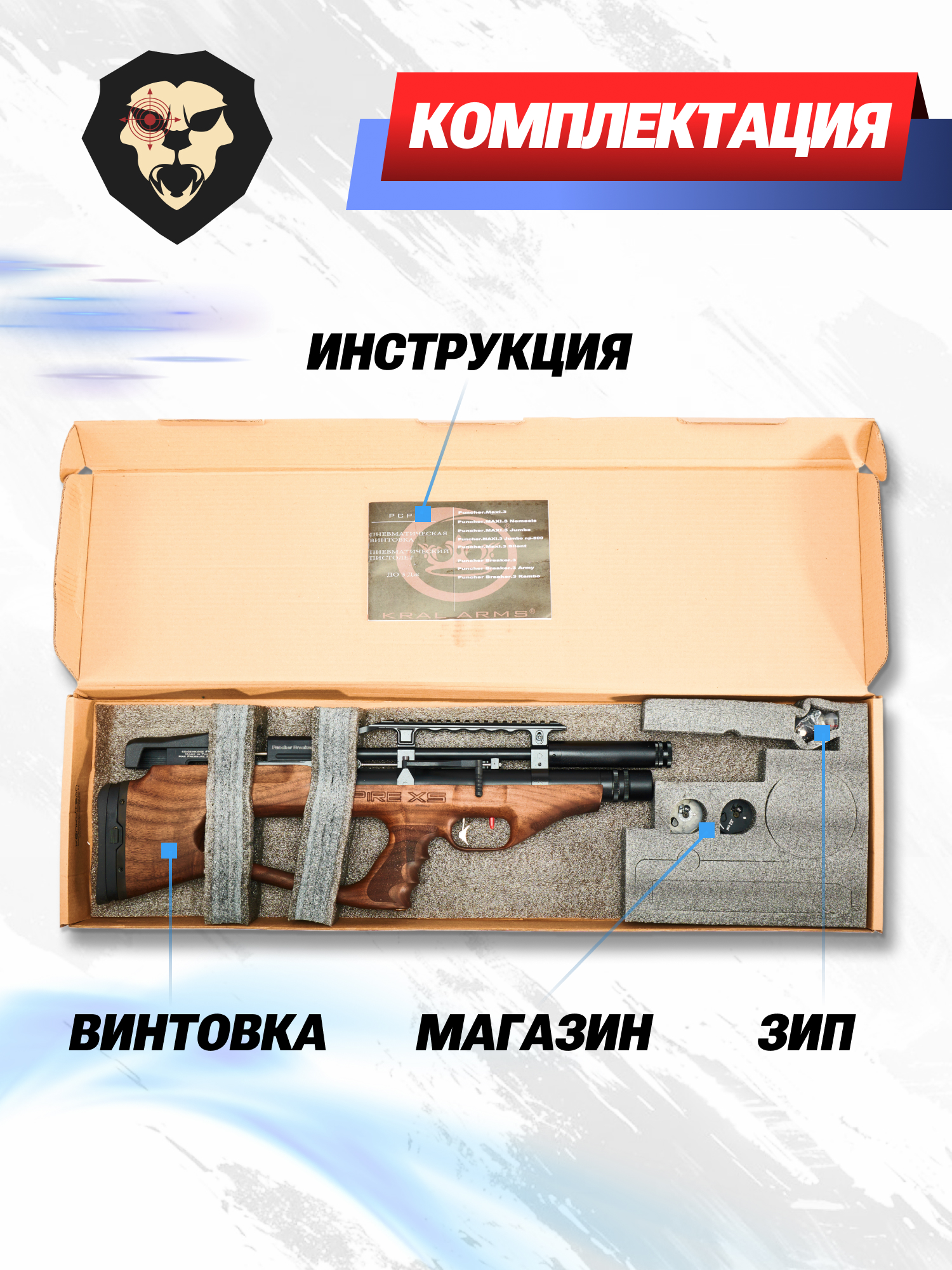 | Комплектация | Винтовка, упаковка, заправочный штуцер, магазин, краткая документация, копия сертификата (по запросу покупателя) |