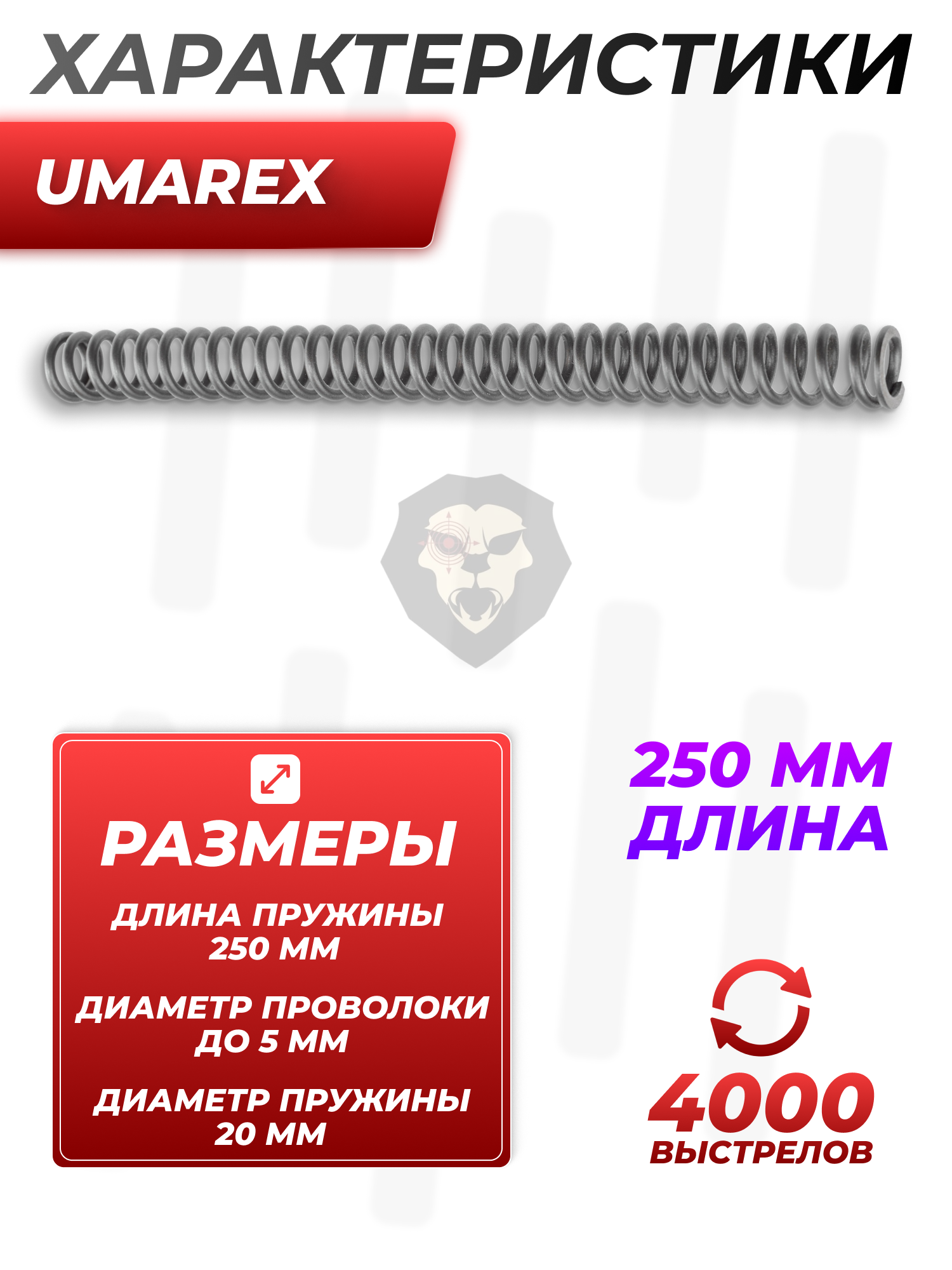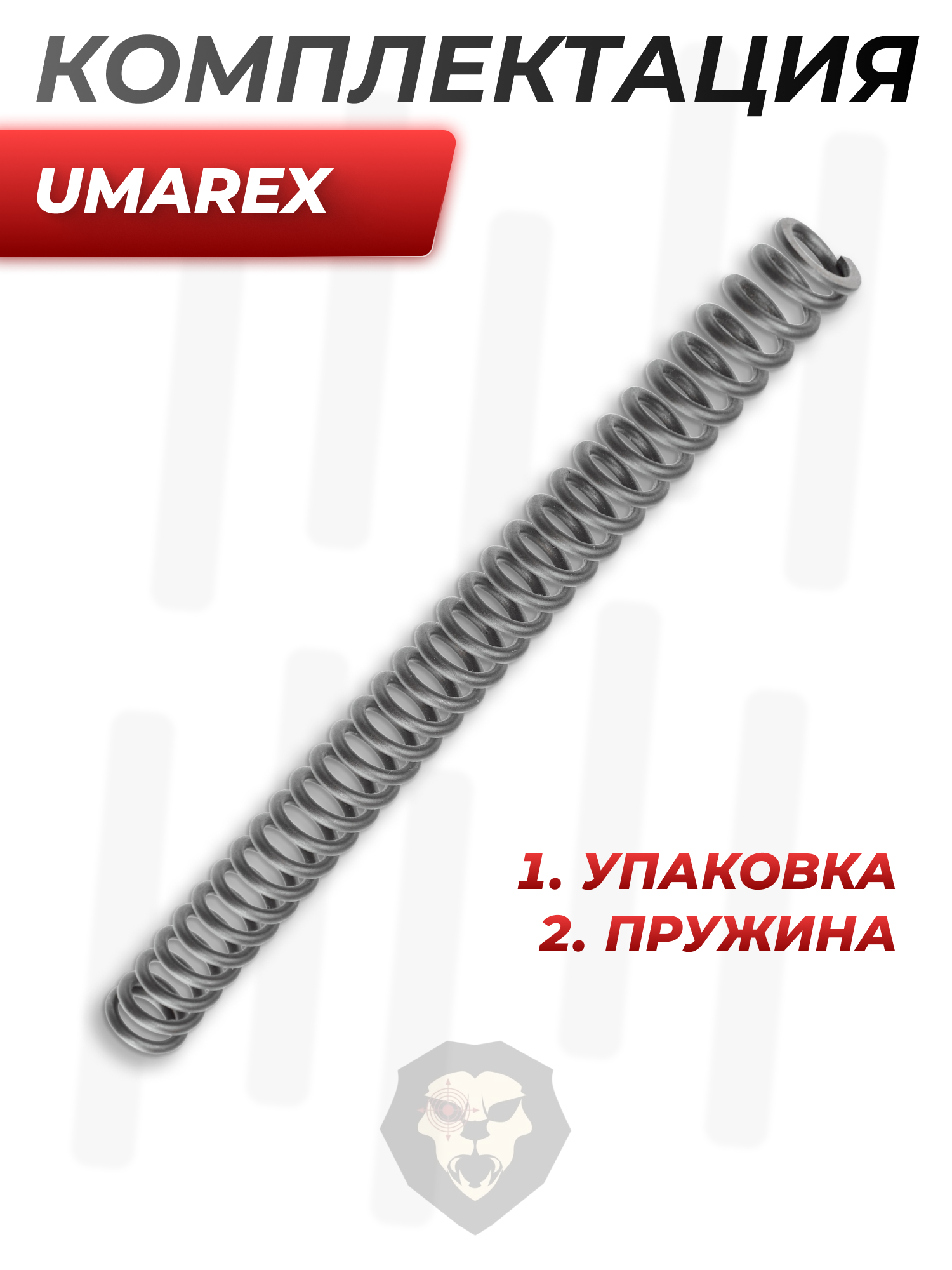 Для изготовления элемента от Umarex применяют специальную пружинную сталь - металл сохраняет жесткость при постоянном стягивании и растяжении. Соответственно изделие дольше удерживает изначальные параметры. Изделие встает в стандартные места установки без доработок - подрезать пружину, устанавливать сторонние шайбы не требуется.