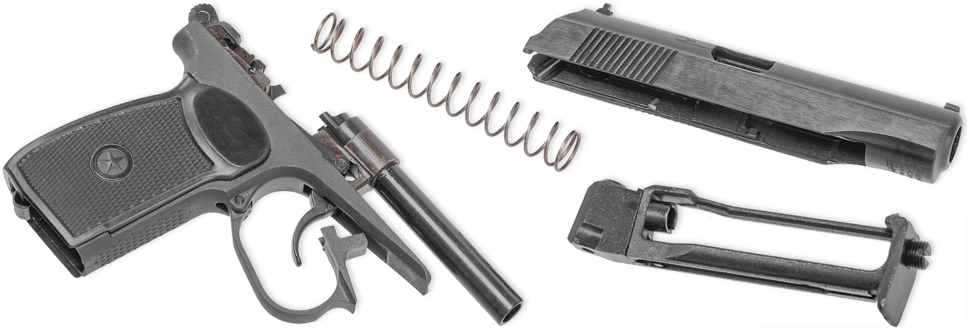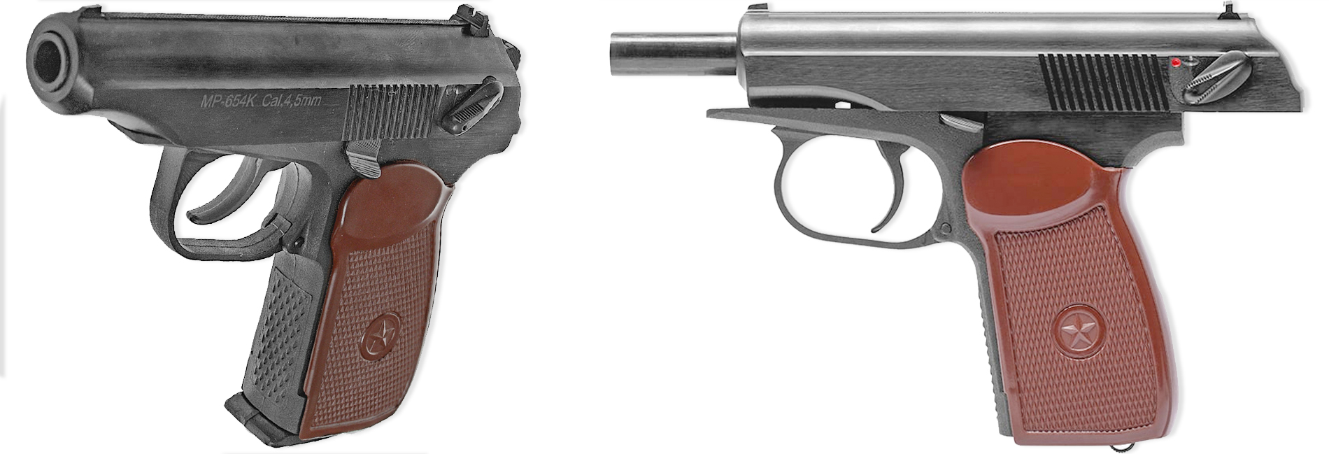 Отсюда можно выделить главные плюсы МР-654К - аутентичность и невероятная прочность, которая делает пистолет чуть-ли не вечным. Рамку, затвор и остальные детали выполняют из оружейной стали. Соответственно сломать его крайне затруднительно.