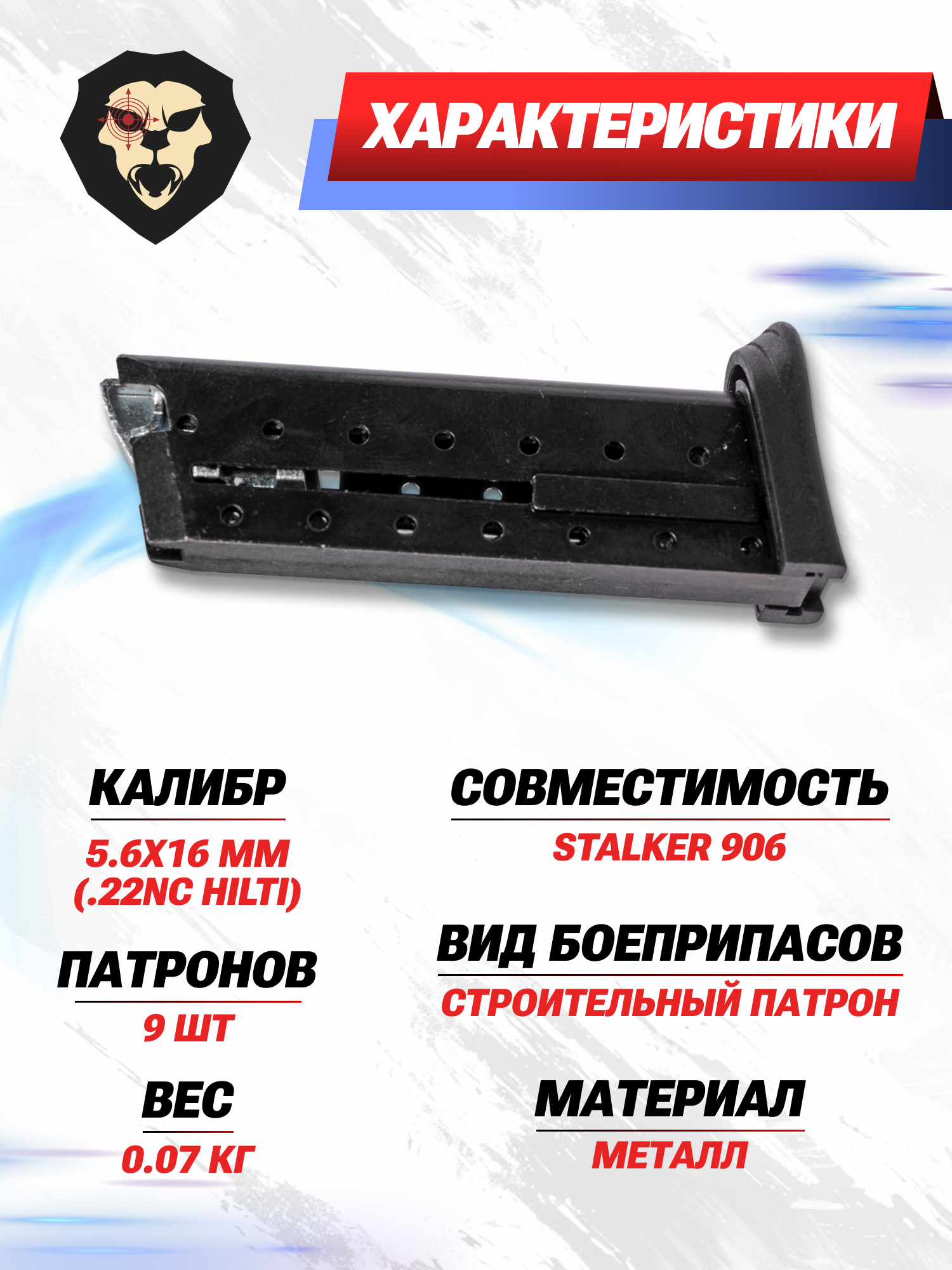 Магазин для сигнального пистолета Zoraki 5.6x16 (9 мест, Hilti, для Stalker 906) купить в интернет-магазине Popadiv10.