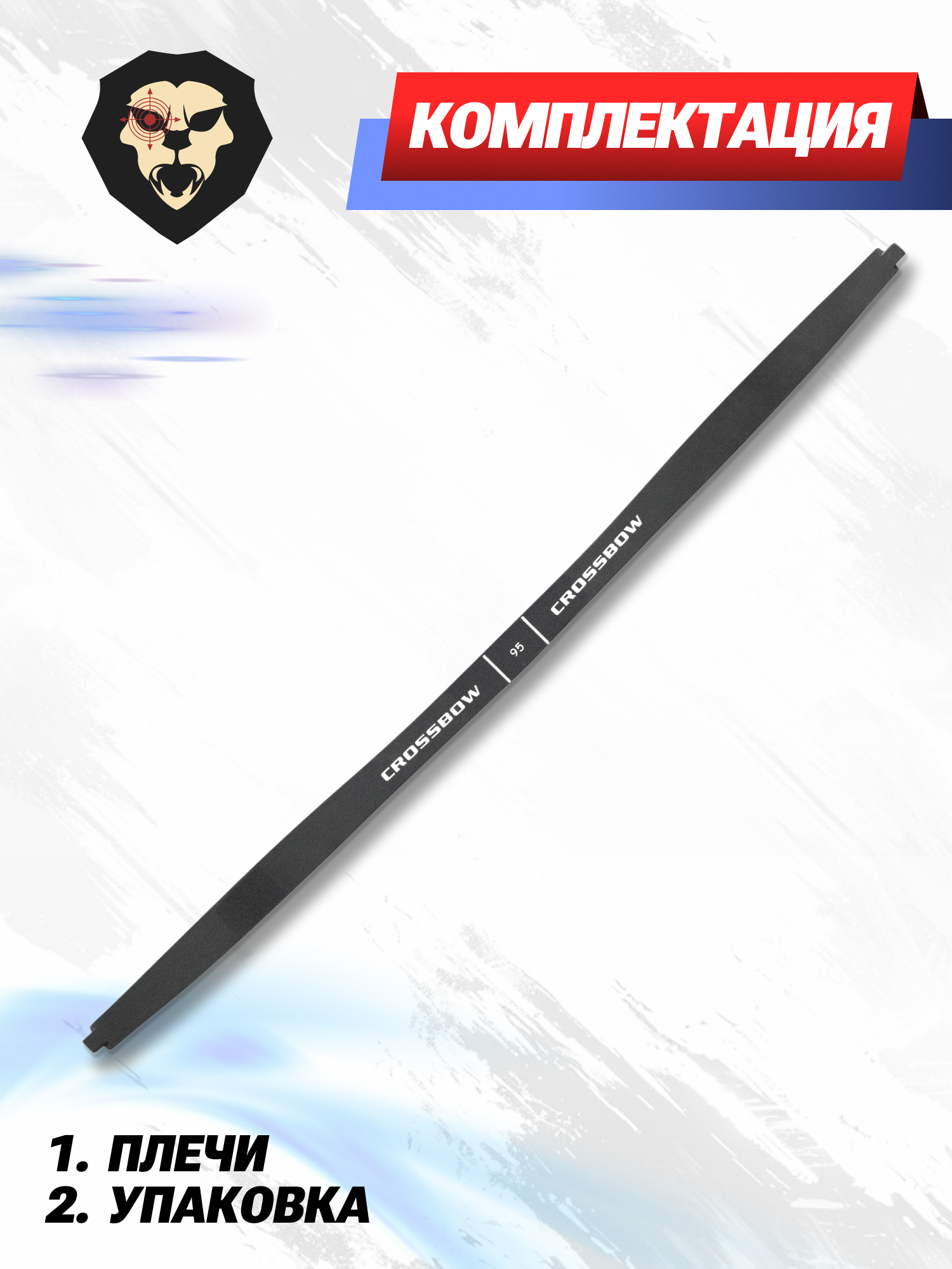 Расстояние между осями составляет 660 миллиметров, как и у штатных плеч, а материалом изготовления выступает фибергласс. Обозреваемое исполнение окрашивается в черный цвет - также выпускается вариант в камуфляже. Монтаж не займет много времени и потребует минимум инструментов - достаточно разместить дуги в направляющей ствольной части таким образом, чтобы две вертикальные линии оказались по краям корпуса арбалета, после чего затянуть крепление.