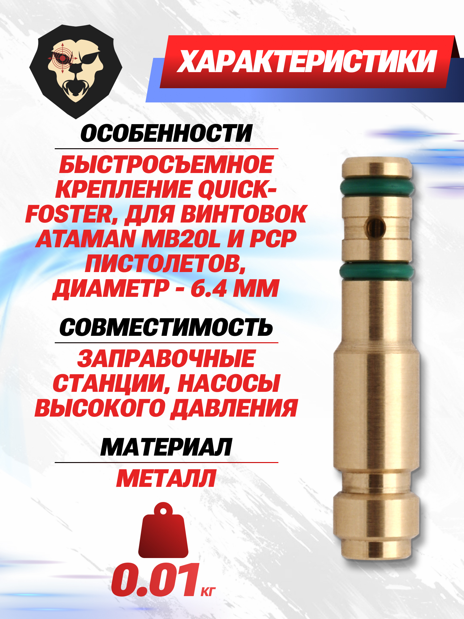 Заправочный штуцер Ataman для пистолетов и винтовок MB20L (Zark SM-1488-A, PCP, Quick, 6.4 мм) купить в интернет-магазине Popadiv10.