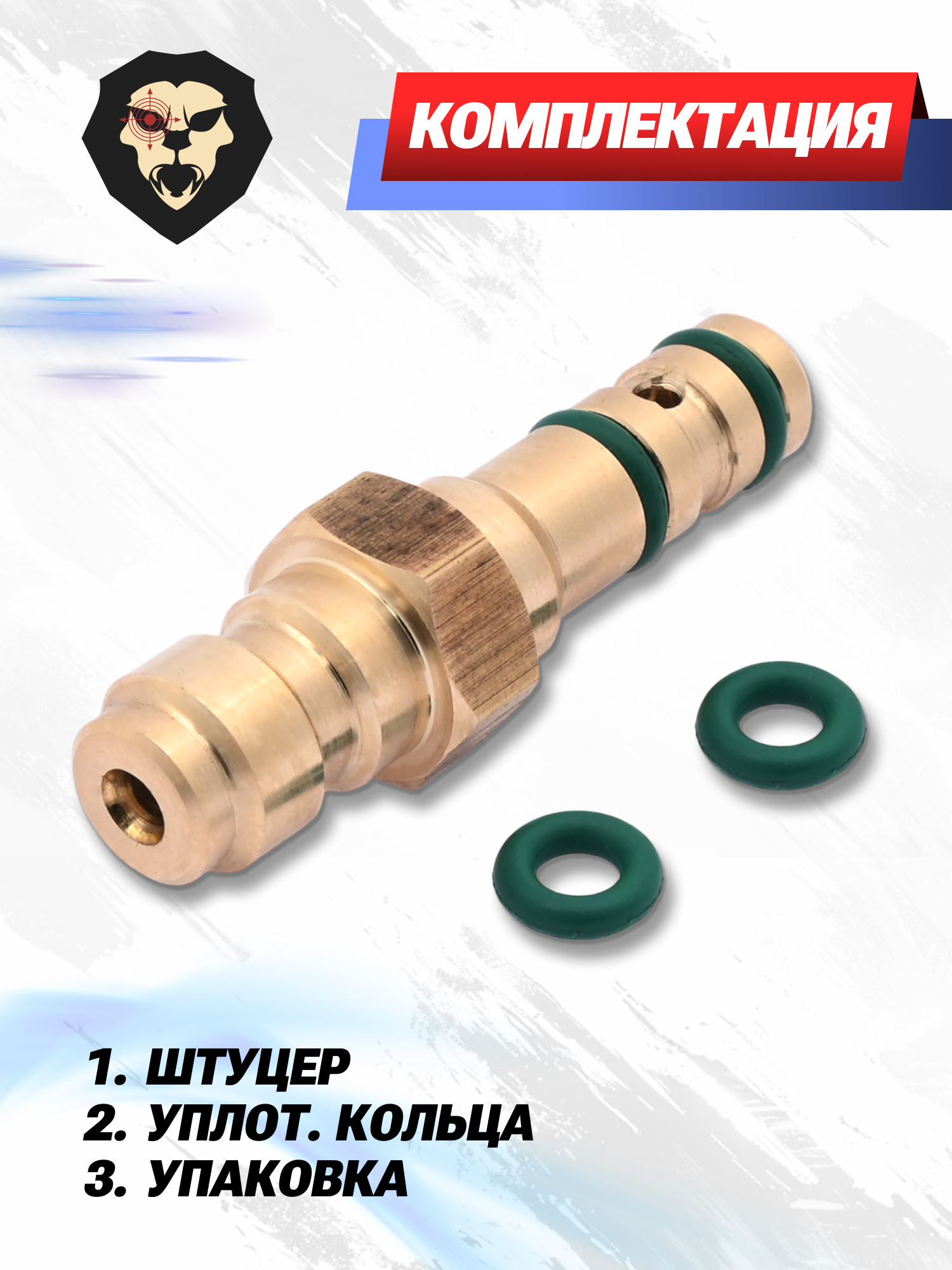 После подготовки штуцер помещается в разъем резервуара пневматики. Плотную фиксацию создают уплотнительные кольца - резиновые оринги также предотвращают утечку воздуха, находящегося под давлением в момент накачки. Адаптер изготавливается из металла, который выделяется повышенной стойкостью к коррозии.