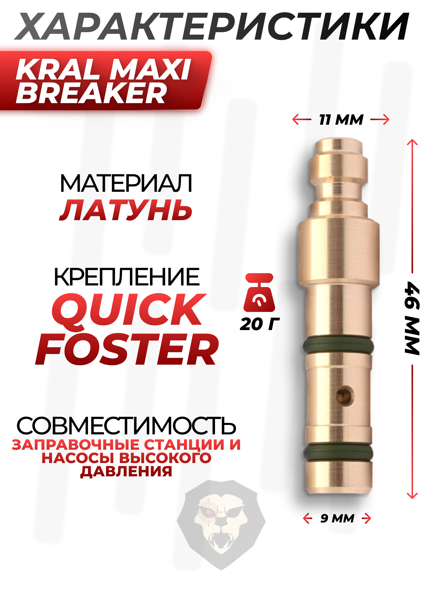 Информация о товаре "Заправочный штуцер Kral Maxi Breaker 9.0 мм PCP (Квик, Zark SM-1515-A, латунь)" носит ознакомительный характер, и не является публичной офертой, определяемой положениями Статьи 437 Гражданского кодекса Российской Федерации, характеристики, внешний вид, цвет и комплектация могут быть изменены производителем без уведомления.