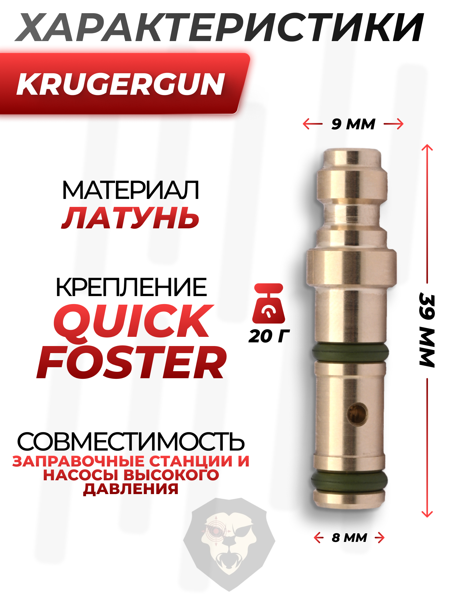 Заправочный штуцер Krugergun 8.0 мм (для PCP винтовок, Zark SM-1511-A, Квик) купить в интернет-магазине Popadiv10.