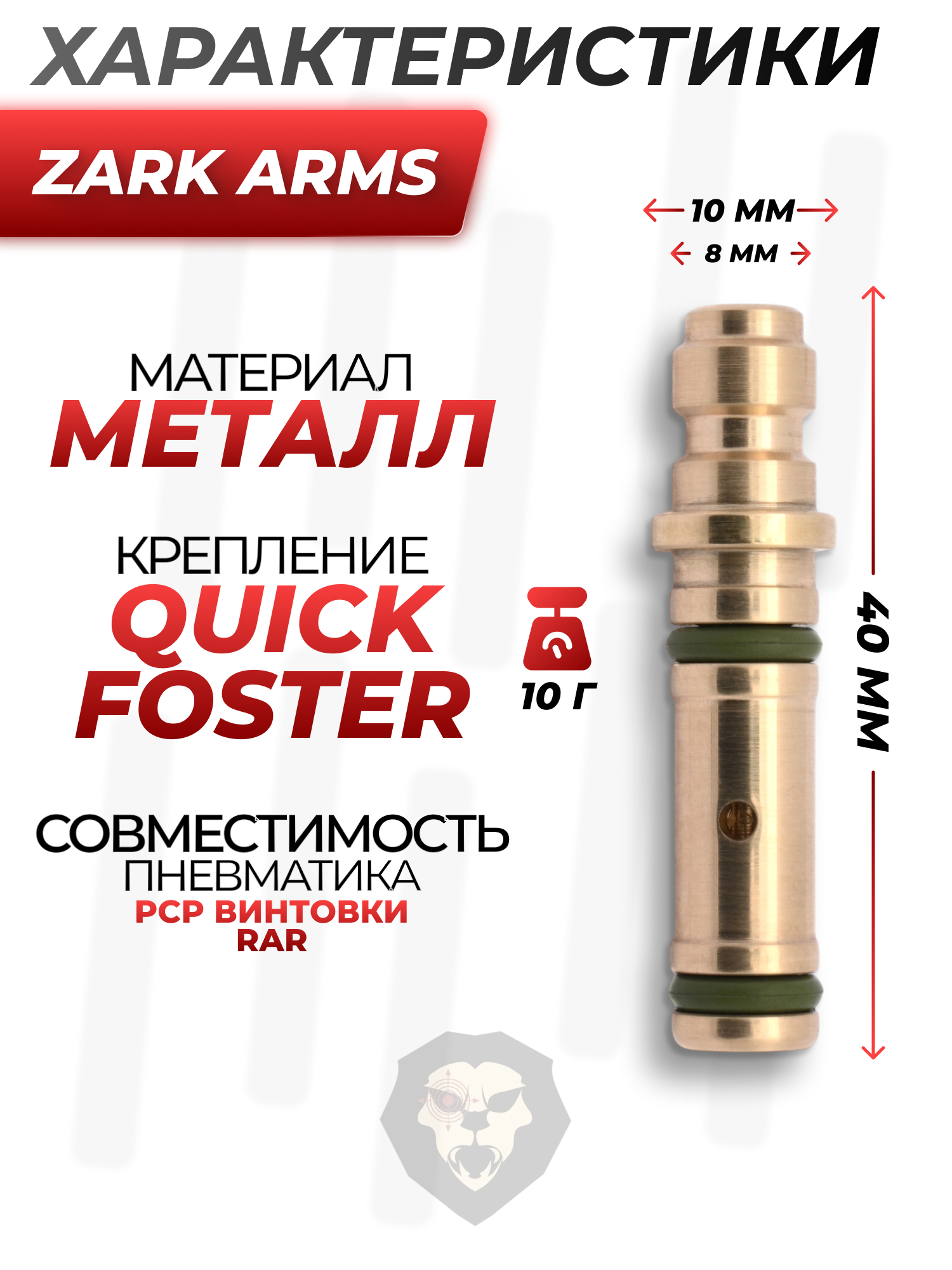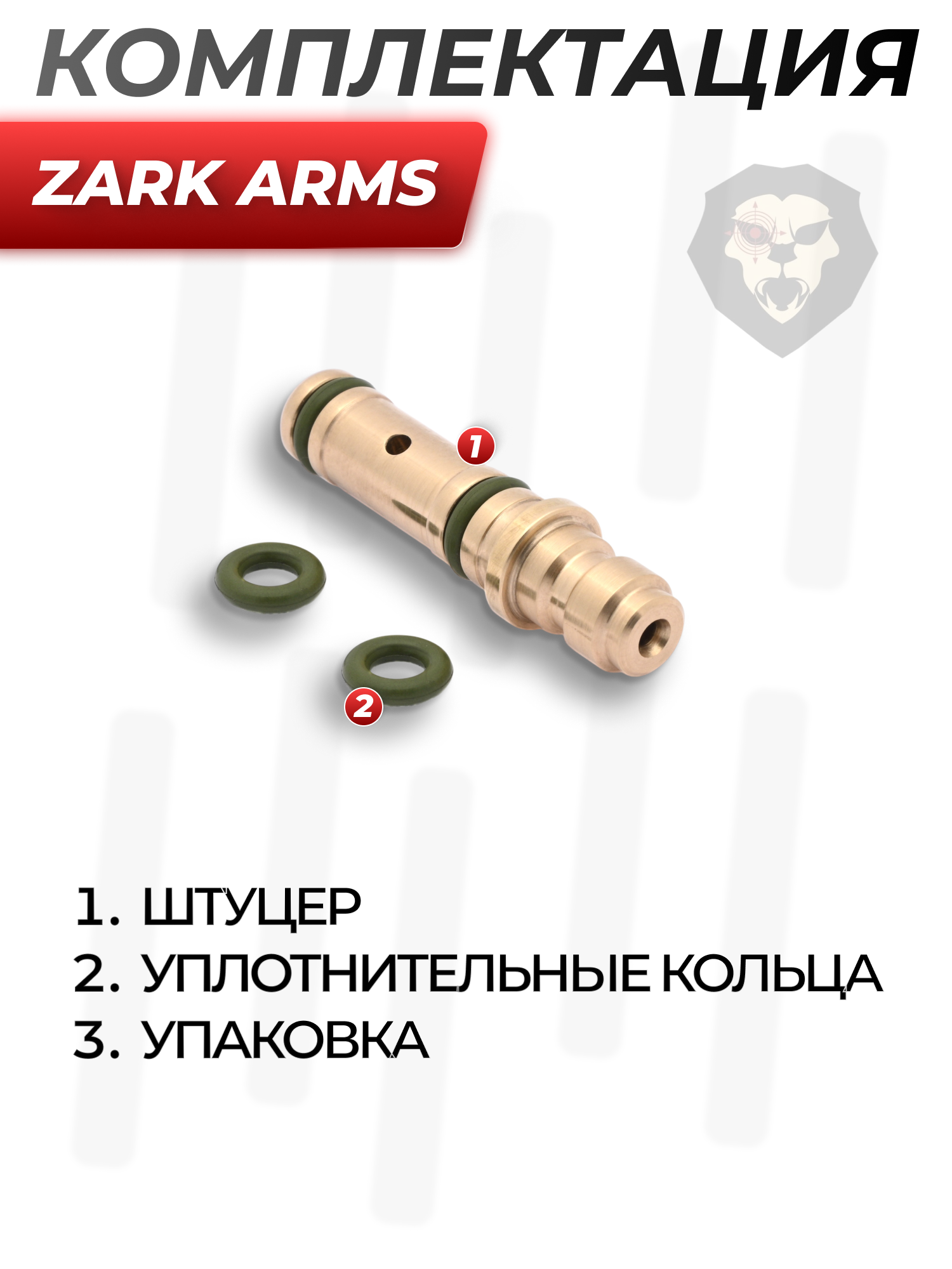 Штуцер Зарк Армс для винтовок РАР является быстросъемным решением. В его конструкции отсутствует резьба, вместо которой предусмотрена система стандарта Quick-Foster. За счет последней ускоряются манипуляции по присоединению насадки к шлангам насосов ВД и заправочных станций.