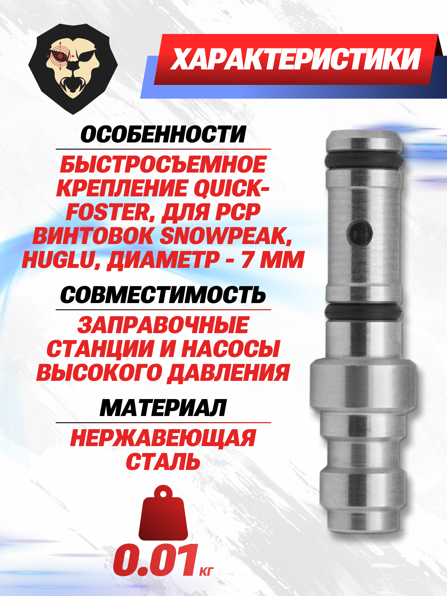 | Особенности | Быстросъемное крепление Quick-foster, для PCP винтовок Snowpeak, Huglu, диаметр - 7 мм |