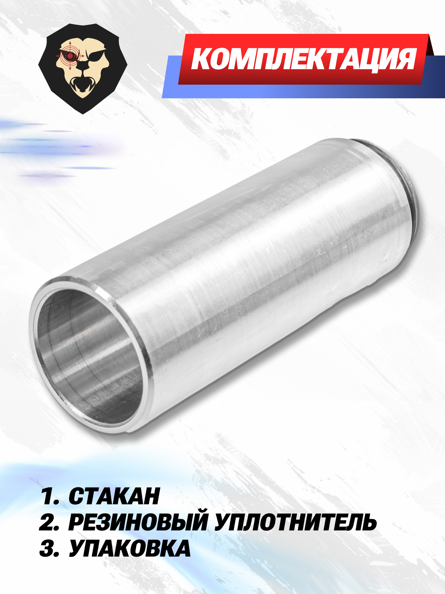 Элемент требуется не только для создания условий для корректной посадки вкладного редуктора в ресивер, но и служит для увеличения объема оного. В рассматриваемом случае этот показатель повышается на 50 кубических сантиметров. Размещение стакана происходит со стороны резьбовой пробки баллона.