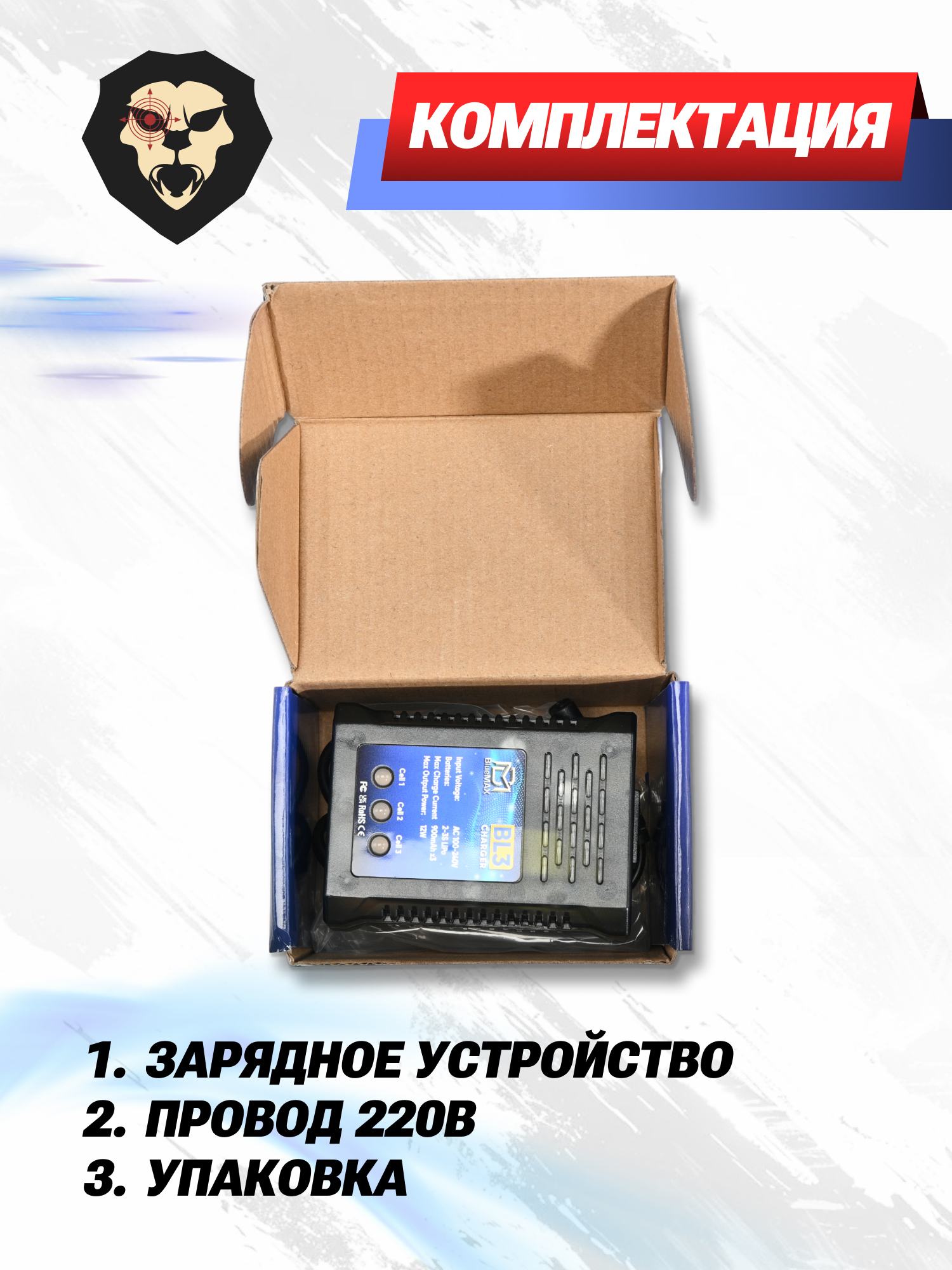 | Комплектация | Зарядное устройство, кабель питания 220В, инструкция, упаковка |