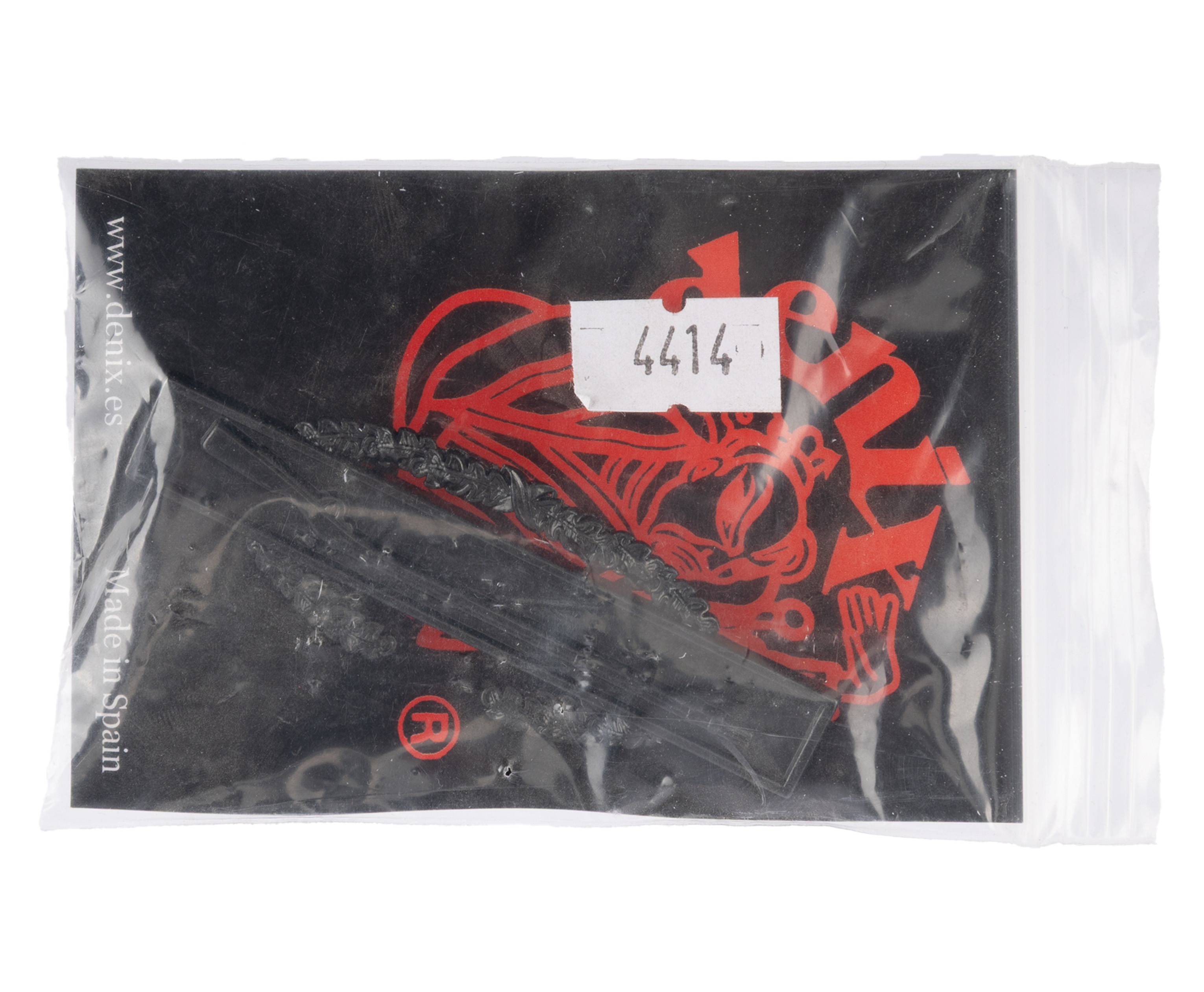 Знак CIB Denix изображает пластину со стилизованным венком и мушкетом на центральном щите. Размер изделия составляет 77x27 миллиметров, а весит атрибутика не больше 20 граммов. Значок предназначается для ношения на грудной части шинели или рубахи, для чего в конструкции присутствует булавка с фиксирующим замком.