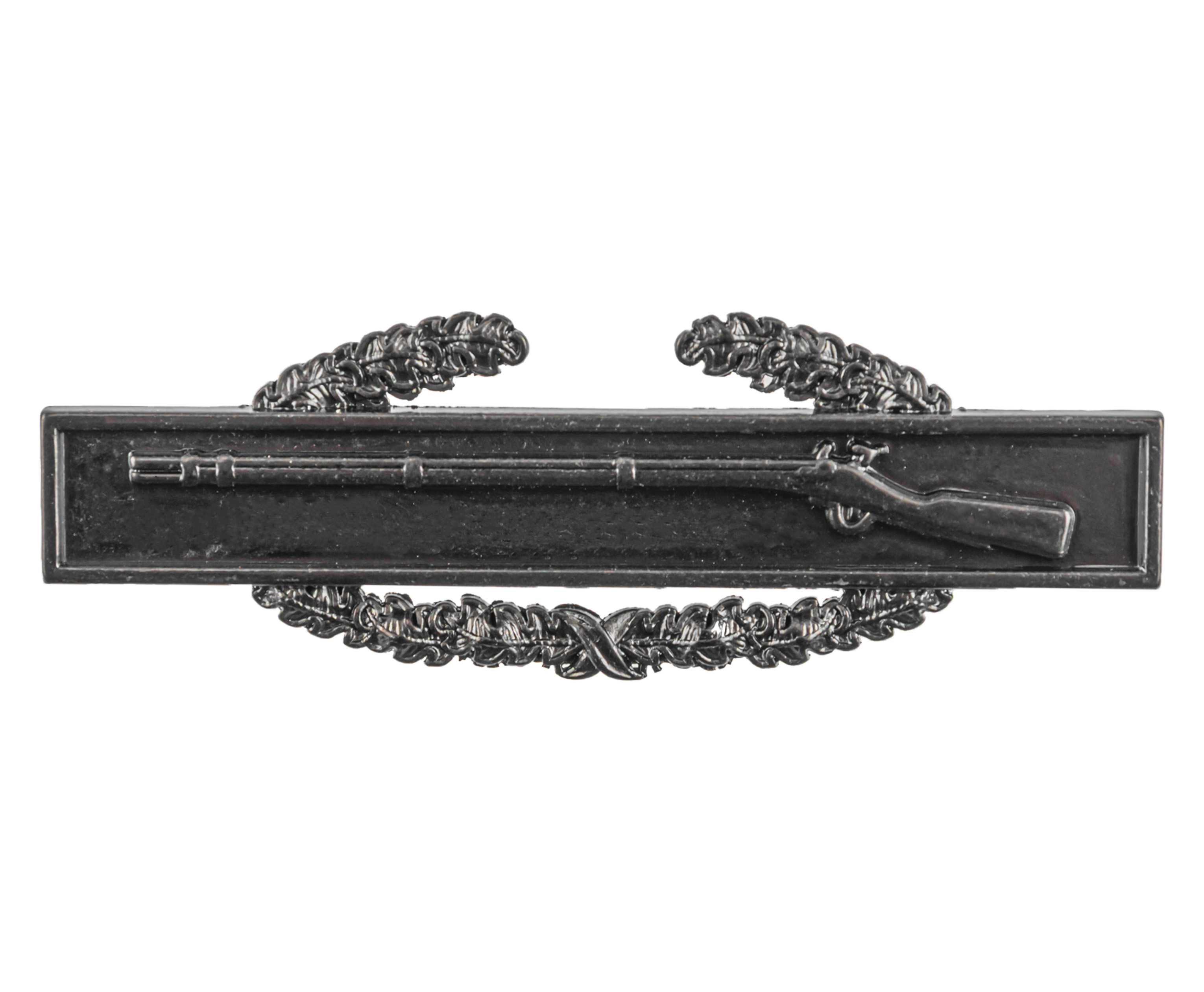 Рассматриваемый значок США Combat Infantry Badge был впервые введен в качестве наградного элемента в годы Второй Мировой войны. Он вручается солдатам пехотных подразделений, которые являются ветеранами боевых действий. Знак отличия высоко ценится в американских войсках и применяется до сих пор, а после операции Just Cause 1989 года в Панаме им также награждаются оперативники сил специального назначения.