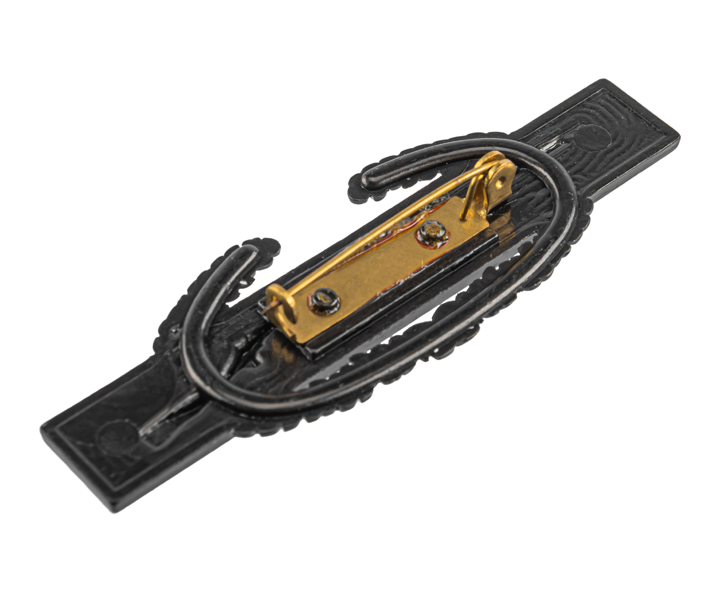 Атрибутика фирмы Деникс изготавливается из качественных материалов и максимально воссоздает внешний вид оригинала. Значок выполнен из металла и окрашен в черный цвет. Существует также парадная версия наградного элемента, которая имеет серебристое напыление.