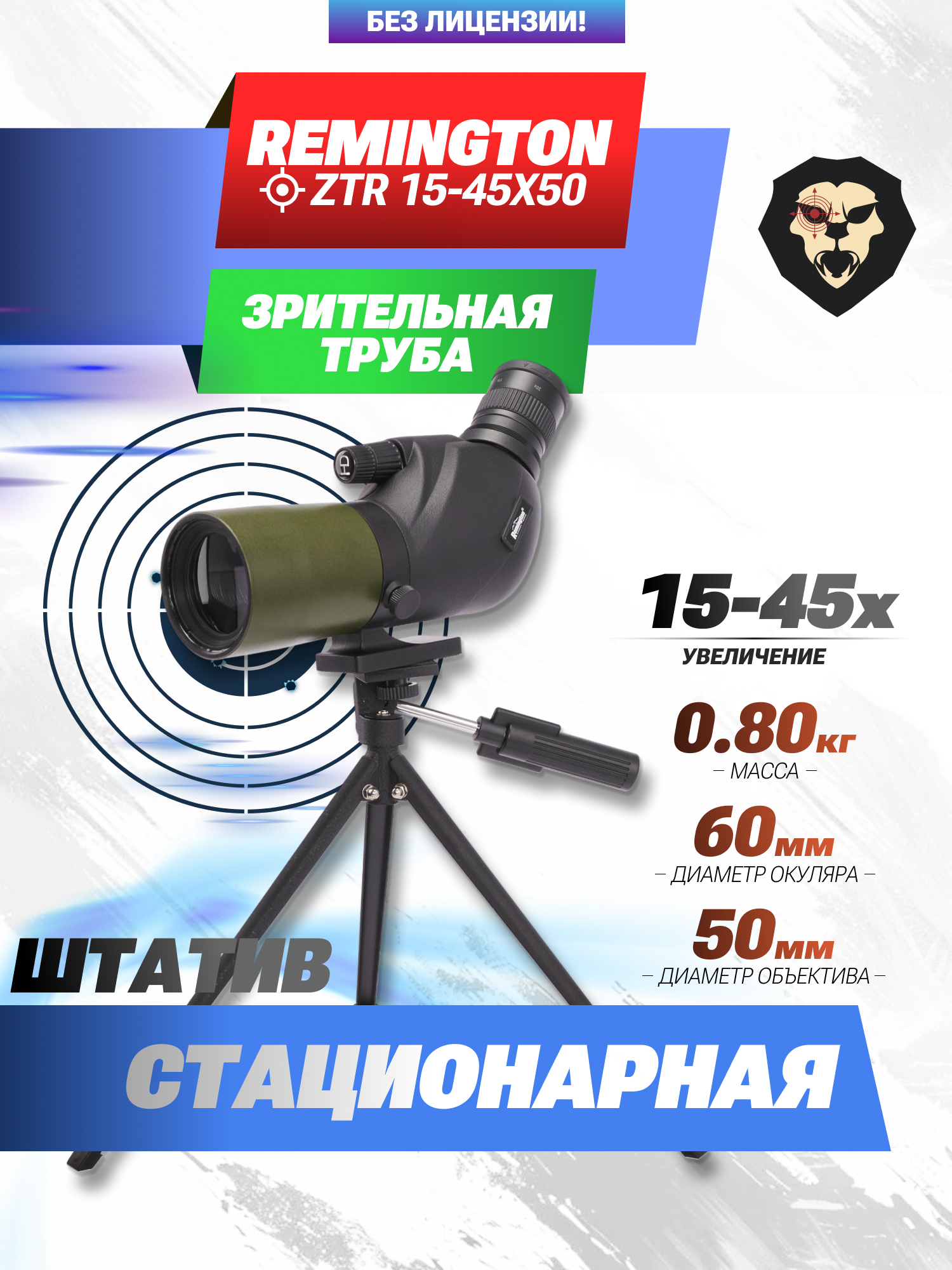 Артикул производителя ZTR 15-45X50 Зрительная труба Remington ZTR 15-45X50 (штатив, чехол) по низкой цене 9990 руб. Модель со штрихкодом производителя Вы можете оплатить наложенным платежем с доставкой или в отделении транспортной компании (ПЭК, СДЭК, Boxberry). Ваш заказ со штрихкодом 2000000166162 забрать на почте с оплатой при получении в любой части Российской Федерации.